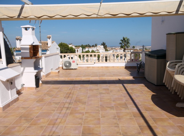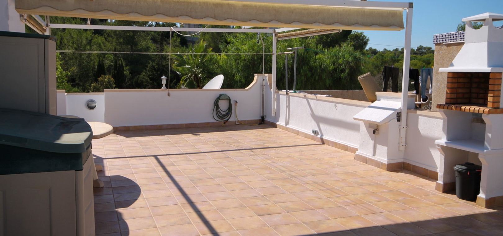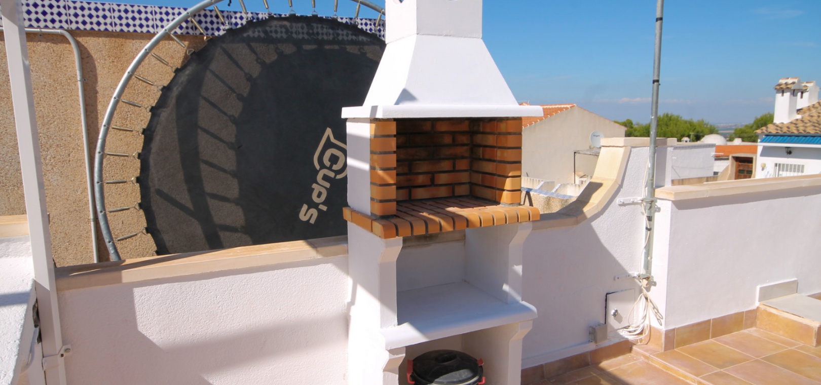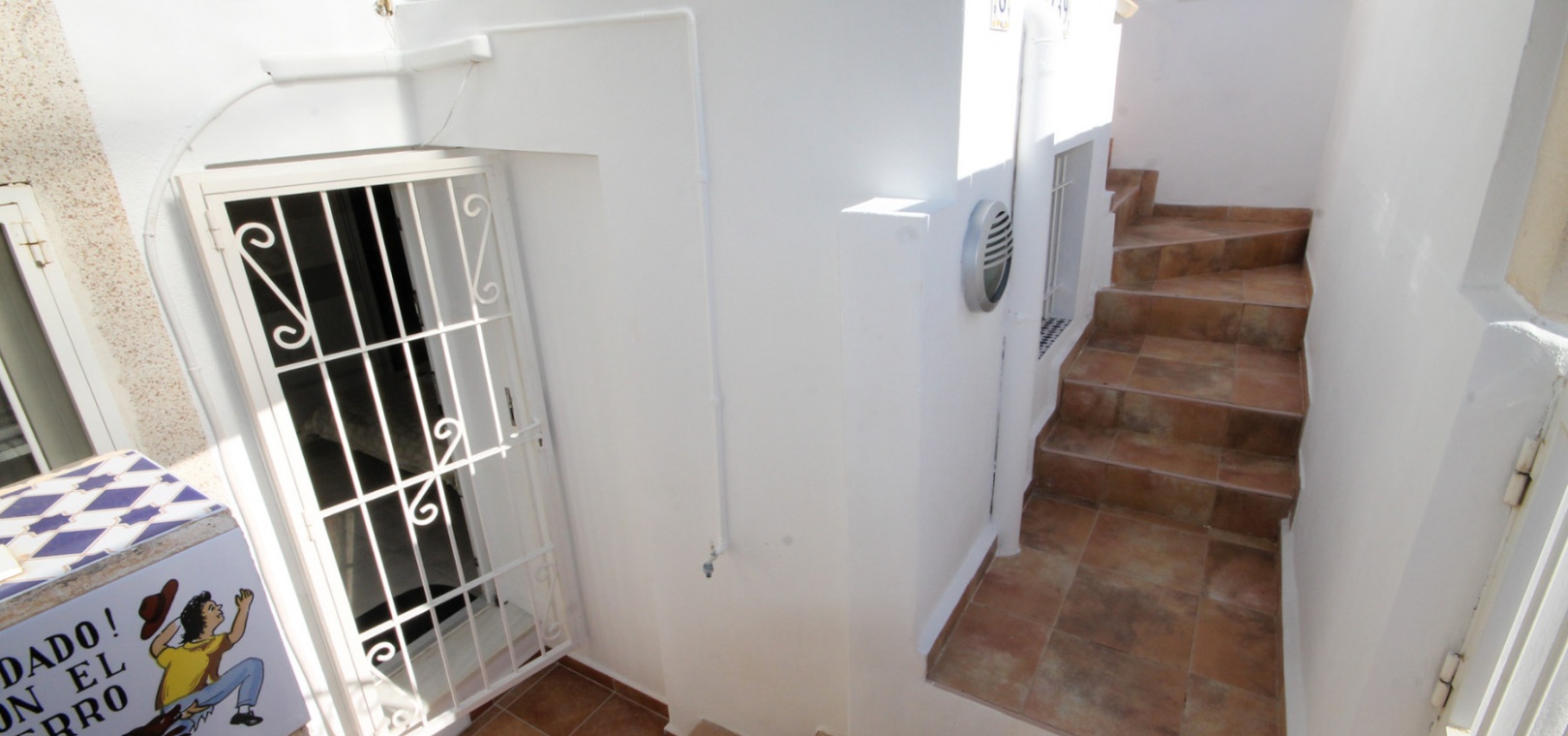 An East facing large 2 bed 1 bath bungalow with a private rooftop solarium located in Blue Lagoon, Villamartin, Costa Blanca South.