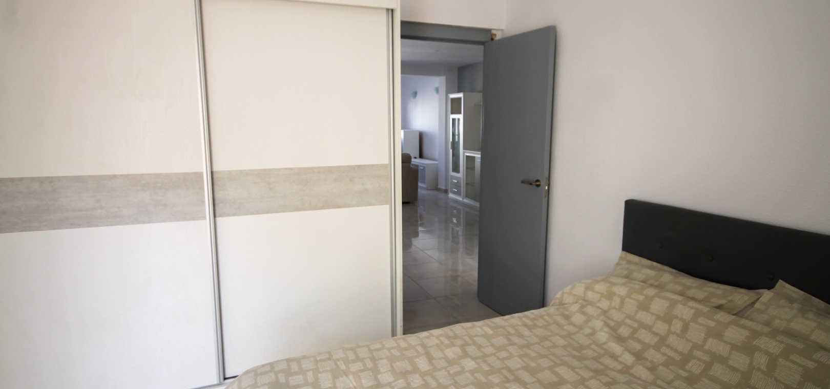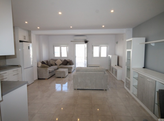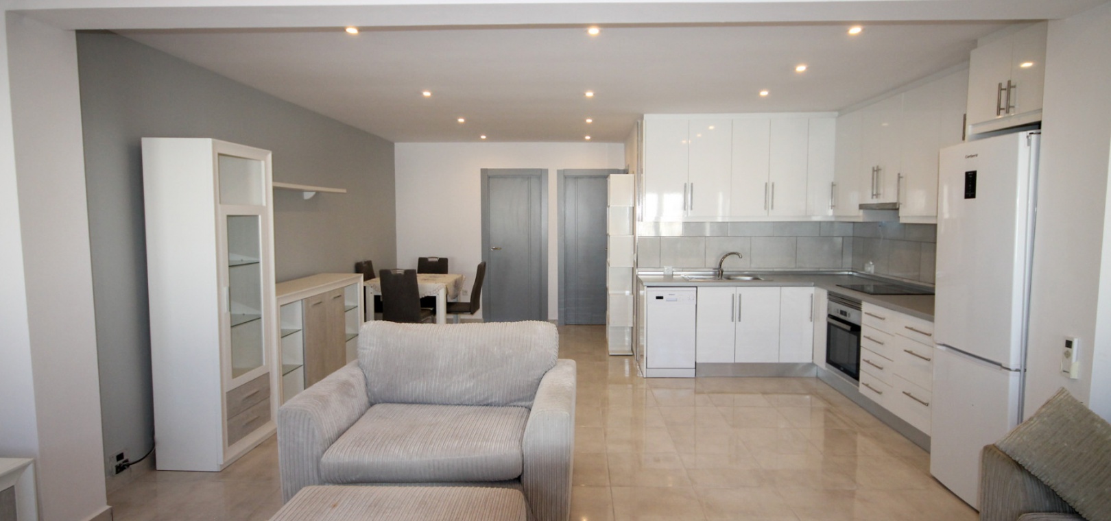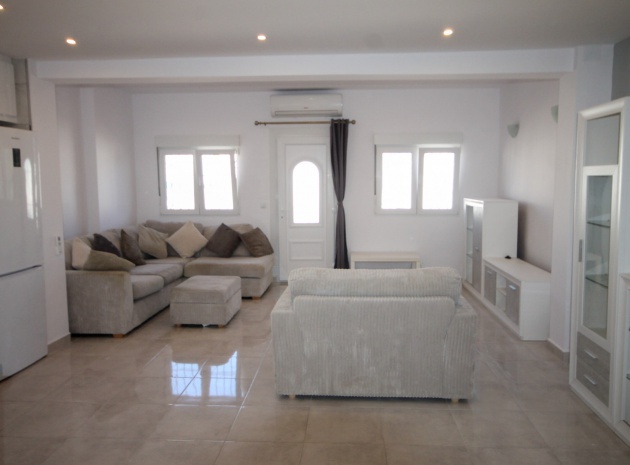 Lounge/diner with & hot and cold A/C, open plan newly fitted kitchen, 1 x main bedroom with new fitted wardrobes,a newly fitted en suite shower room and a door accessing the rear patio with access up to the large pribate rooftop solarium & 1 x single bedroom with access to a private rear patio area.On the solarium there is a sun awning, barbeque and storage and enjoys lovely views across woodland in one direction, and distant views towards the salt lake and sea in the other.Some added extras are new floor tiles, upgraded electrics, new kitchen, new shower room, new internal doors, false ceiling with spotlights, smooth walls, upvc double glazed windows and doors, fly screens, air conditioning and a new drainage system.