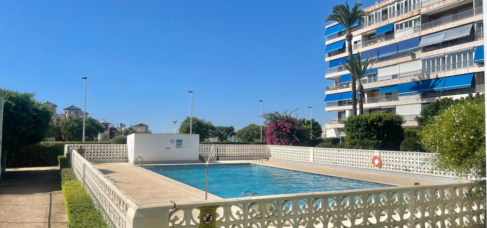 A South facing 3 bed 2 bath 3rd floor apartment just 200m from the Playa Acequion beach located in Torrevieja, Costa Blanca.