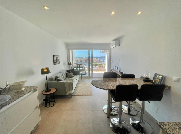 Lounge/diner with hot and cold A/C, open plan kitchen, 2 x double bedrooms, the main bedroom has hot and cold A/C & a ceiling fan, 1 x single bedroom with an en suite shower room , 1 x guest shower room, 10m2 balcony off the lounge with sea views, secure gated community, communal lift, communal swimming pool, tennis courts, childens play park & much more.
