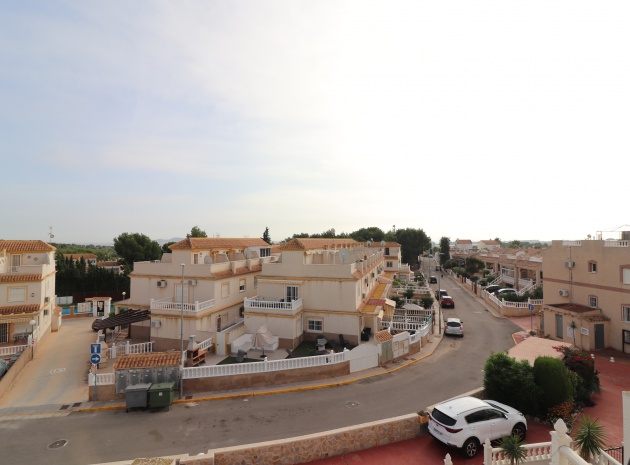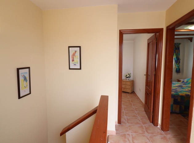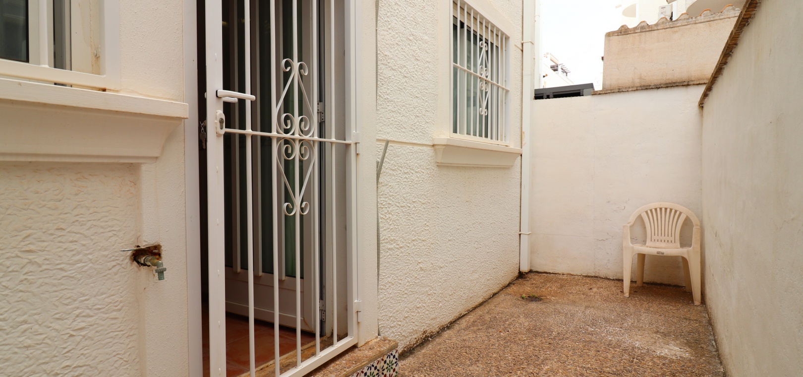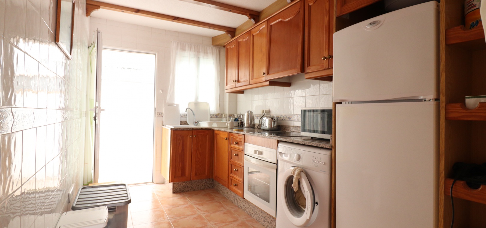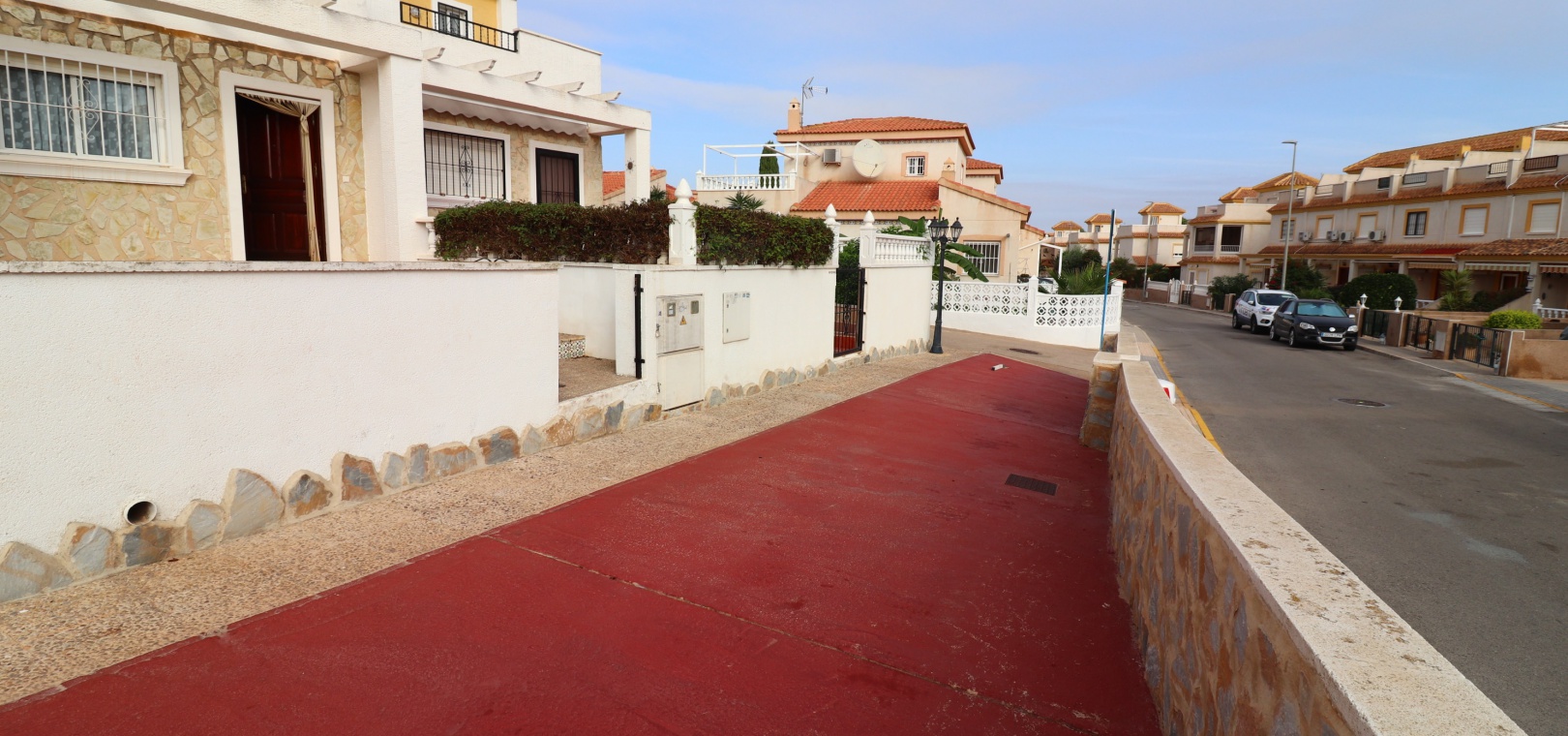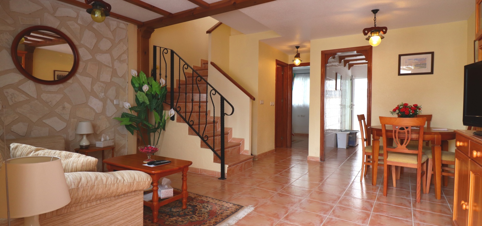 This East Facing, Three Bedroom, Townhouse in Montemar, a popular residential area of Algorfa, which is a couple of minutes drive along with the 5* La Finca Golf, Hotel & Spa Resort that can be accessed 5-10 minutes on foot. The major towns of Almoradi, Quesada and Benijofar are just 5 minutes by car and the nearest beach at Guardamar approx 15 minutes. The property comprises: lounge/dining room with feature beamed ceiling and stairs leading to the first floor; separate fitted kitchen with door leading out to a rear patio; double bedroom; shower room. The first floor comprises of two further double bedrooms, master with built-in wardrobes and air con unit, plus there is a family bathroom. External stairs lead up to the private solarium where you can enjoy a view to the mountain. The front garden is gravelled and tiled and the property benefits from the use of a communal pool. An ideal holiday home.