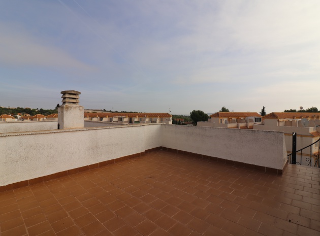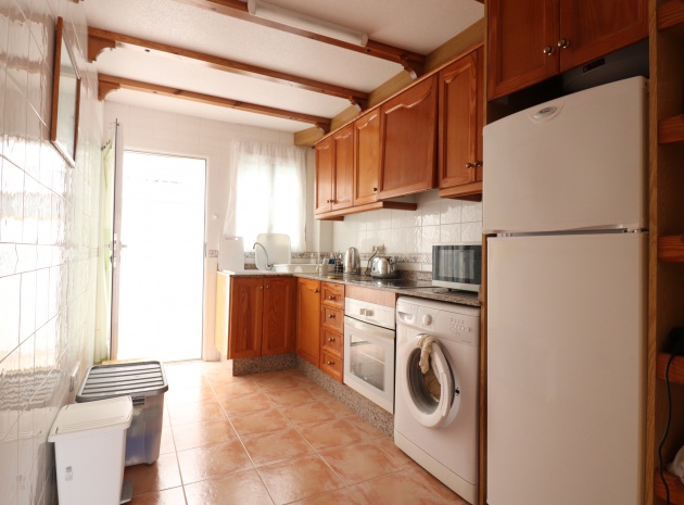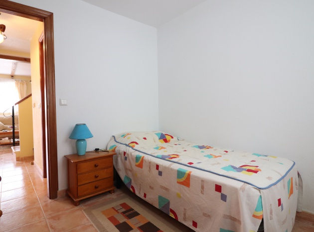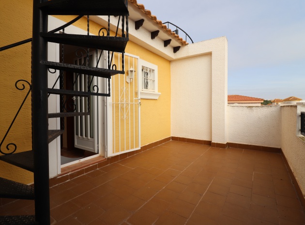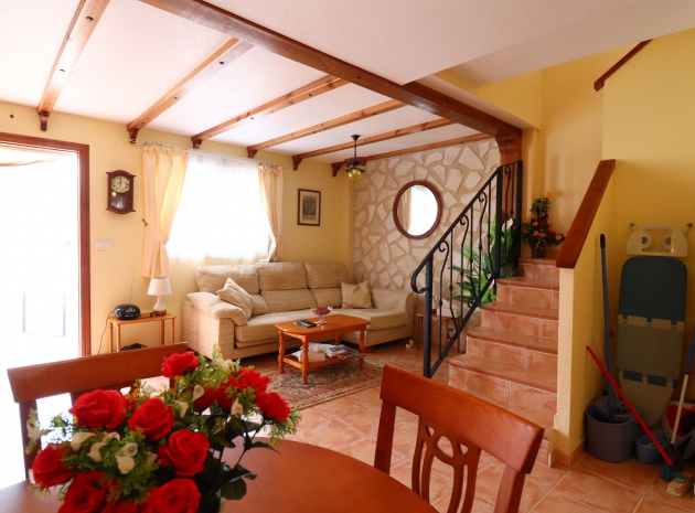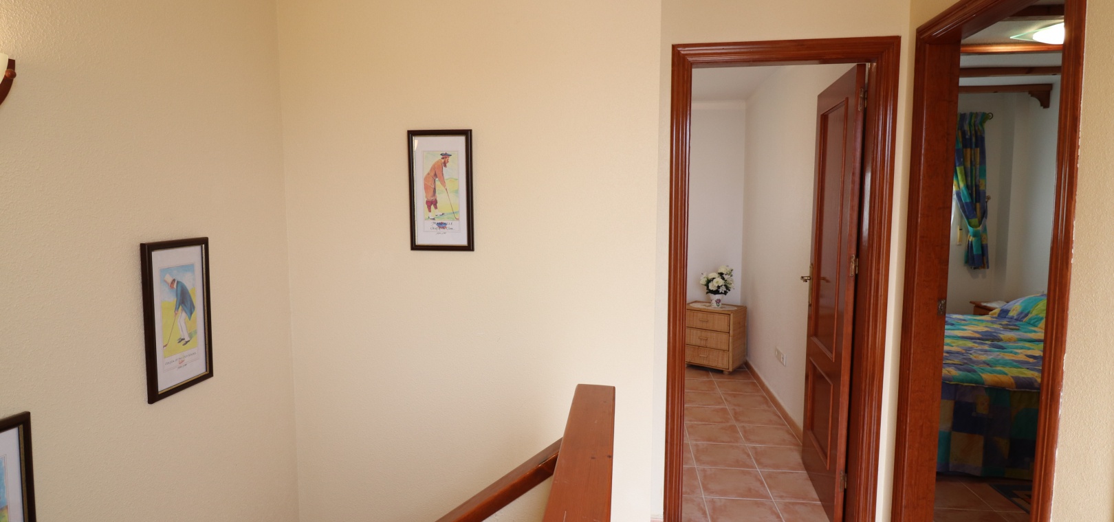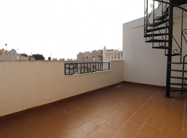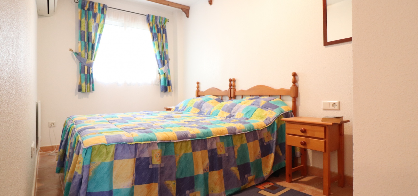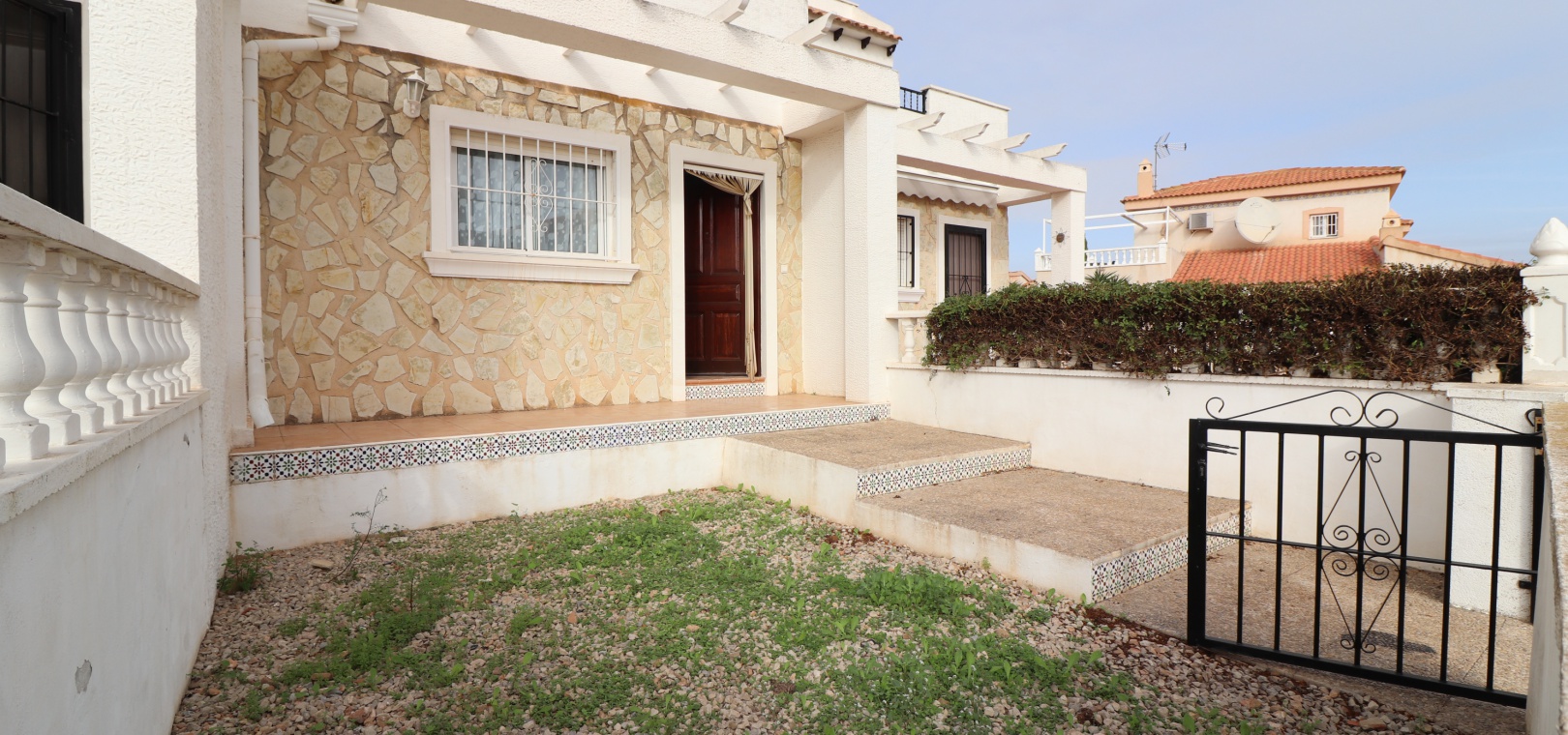 This East Facing, Three Bedroom, Townhouse in Montemar, a popular residential area of Algorfa, which is a couple of minutes drive along with the 5* La Finca Golf, Hotel & Spa Resort that can be accessed 5-10 minutes on foot. The major towns of Almoradi, Quesada and Benijofar are just 5 minutes by car and the nearest beach at Guardamar approx 15 minutes. The property comprises: lounge/dining room with feature beamed ceiling and stairs leading to the first floor; separate fitted kitchen with door leading out to a rear patio; double bedroom; shower room. The first floor comprises of two further double bedrooms, master with built-in wardrobes and air con unit, plus there is a family bathroom. External stairs lead up to the private solarium where you can enjoy a view to the mountain. The front garden is gravelled and tiled and the property benefits from the use of a communal pool. An ideal holiday home.