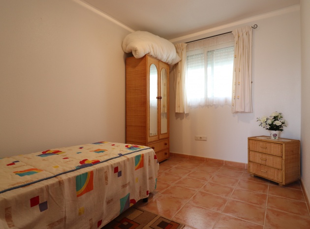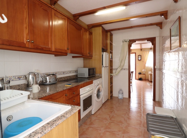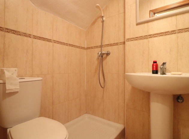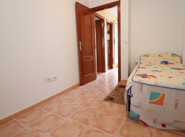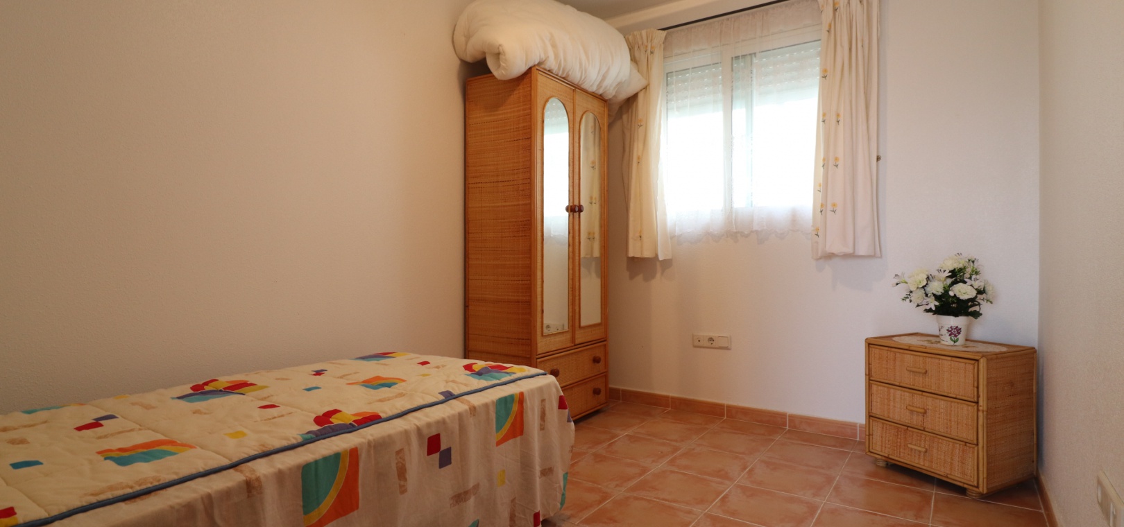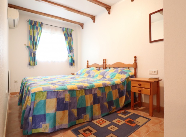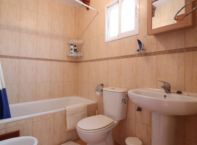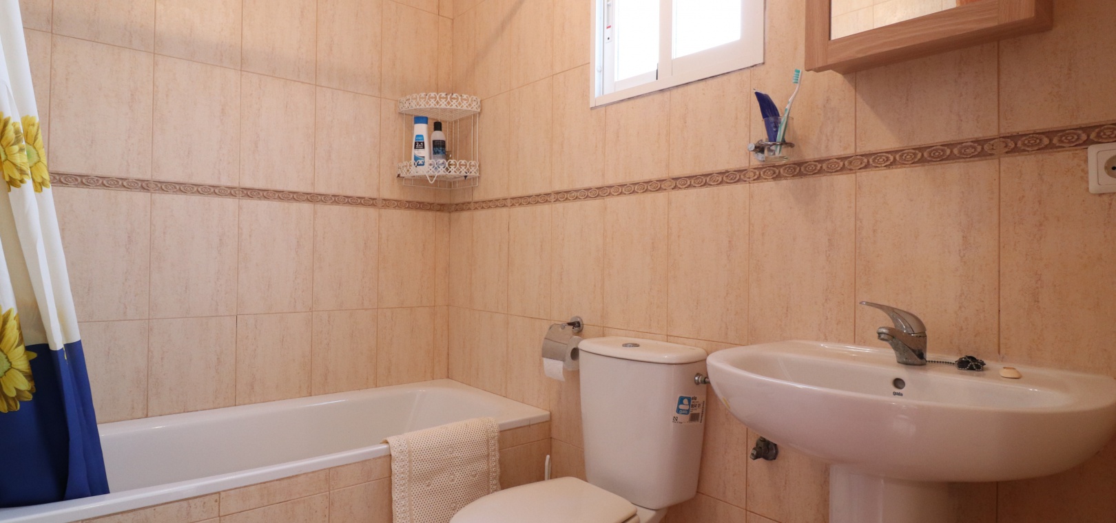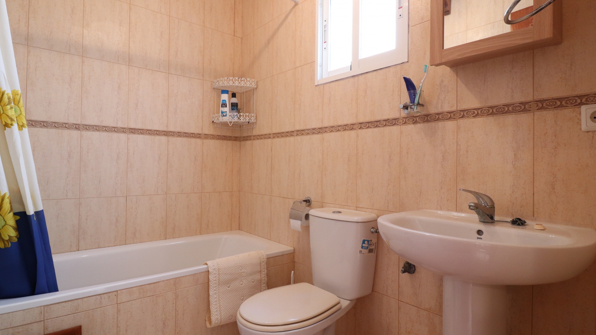 This East Facing, Three Bedroom, Townhouse in Montemar, a popular residential area of Algorfa, which is a couple of minutes drive along with the 5* La Finca Golf, Hotel & Spa Resort that can be accessed 5-10 minutes on foot. The major towns of Almoradi, Quesada and Benijofar are just 5 minutes by car and the nearest beach at Guardamar approx 15 minutes. The property comprises: lounge/dining room with feature beamed ceiling and stairs leading to the first floor; separate fitted kitchen with door leading out to a rear patio; double bedroom; shower room. The first floor comprises of two further double bedrooms, master with built-in wardrobes and air con unit, plus there is a family bathroom. External stairs lead up to the private solarium where you can enjoy a view to the mountain. The front garden is gravelled and tiled and the property benefits from the use of a communal pool. An ideal holiday home.