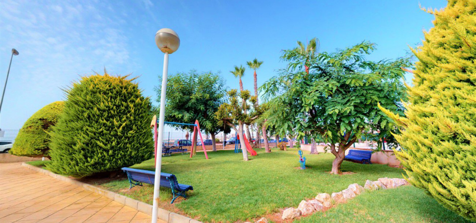 The property is situated on a secure, gated community with lift access & it is located on the Cabo Roig strip where you will find numerous bars, shops & restaurants & just a few minutes walk from the beach.