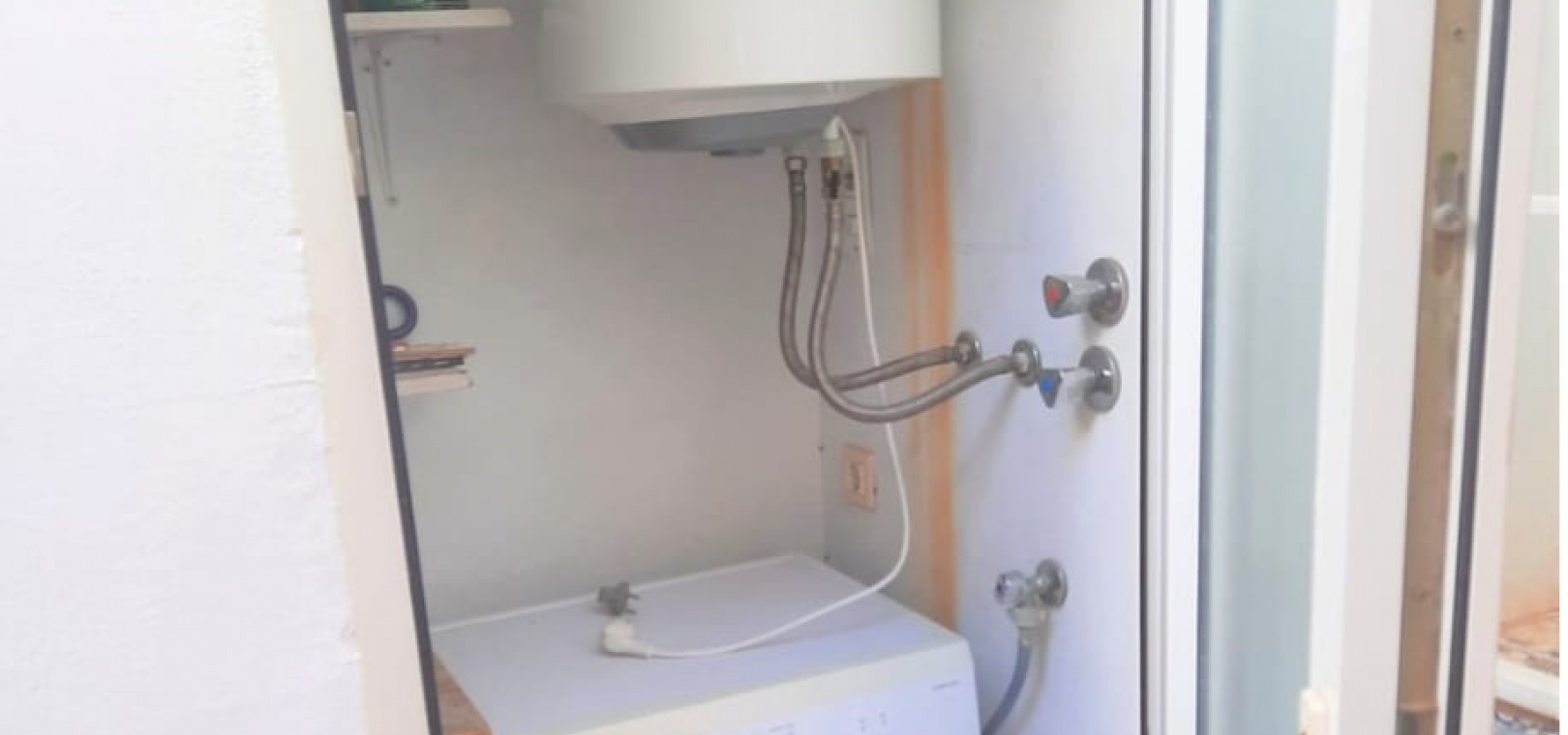 Also in the courtyard is a storage cupboard currently housing the washing machine and boiler located below the staircase leading to the solarium, which could easily be utilised further by adding an additional toilet and sink.