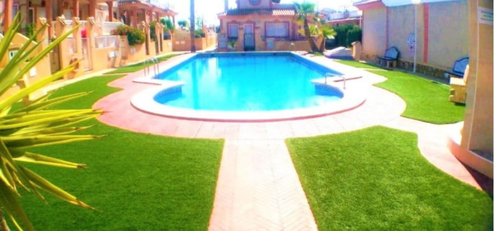 This Mediterranean style quad bungalow is located in the popular area of Playa Flamenca being a 15-20 minute walk to the nearest beach and less than a 10 minute drive to several other blue flag beaches. It is also less than 5 minutes walk to the nearest bars, restaurant and entertainment complex, with several more close by, a 10 minute walk to the Saturday Market and 15 minute walk to one of Europe's largest outdoor shopping malls, Zenia Boulevard. There are 4 world class golf courses up to a 10 minute drive away too.