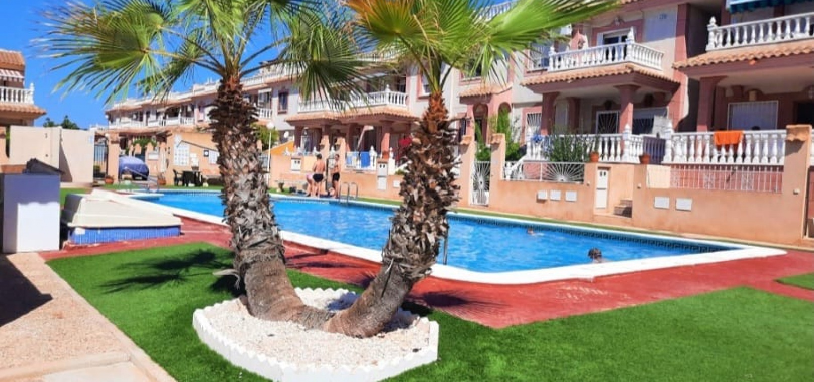 A 3 South East facing 3 bed 1 bath quad house located in Res. Flamingo Hills II, Playa Flamenca, Costa Blanca South.