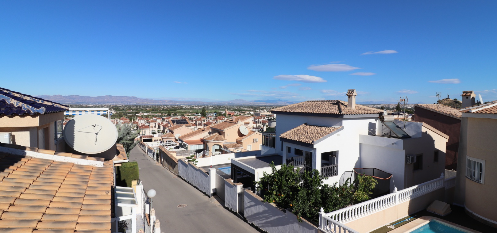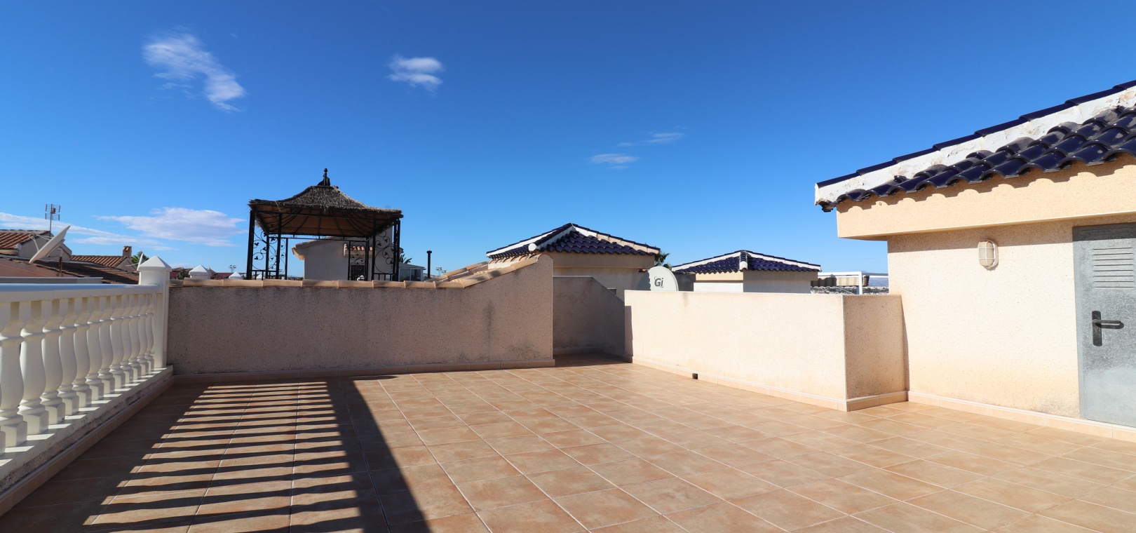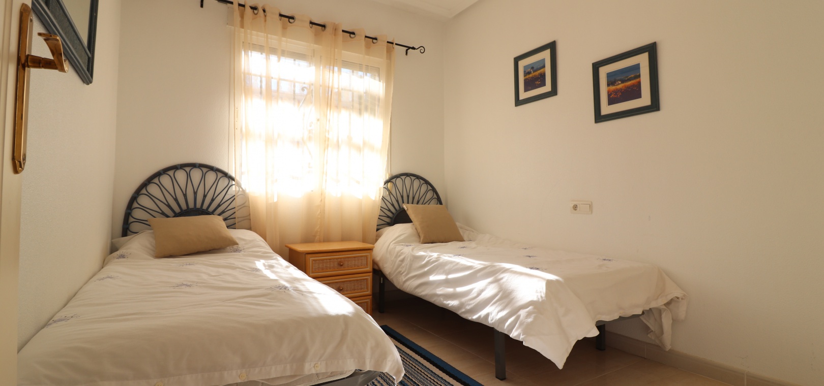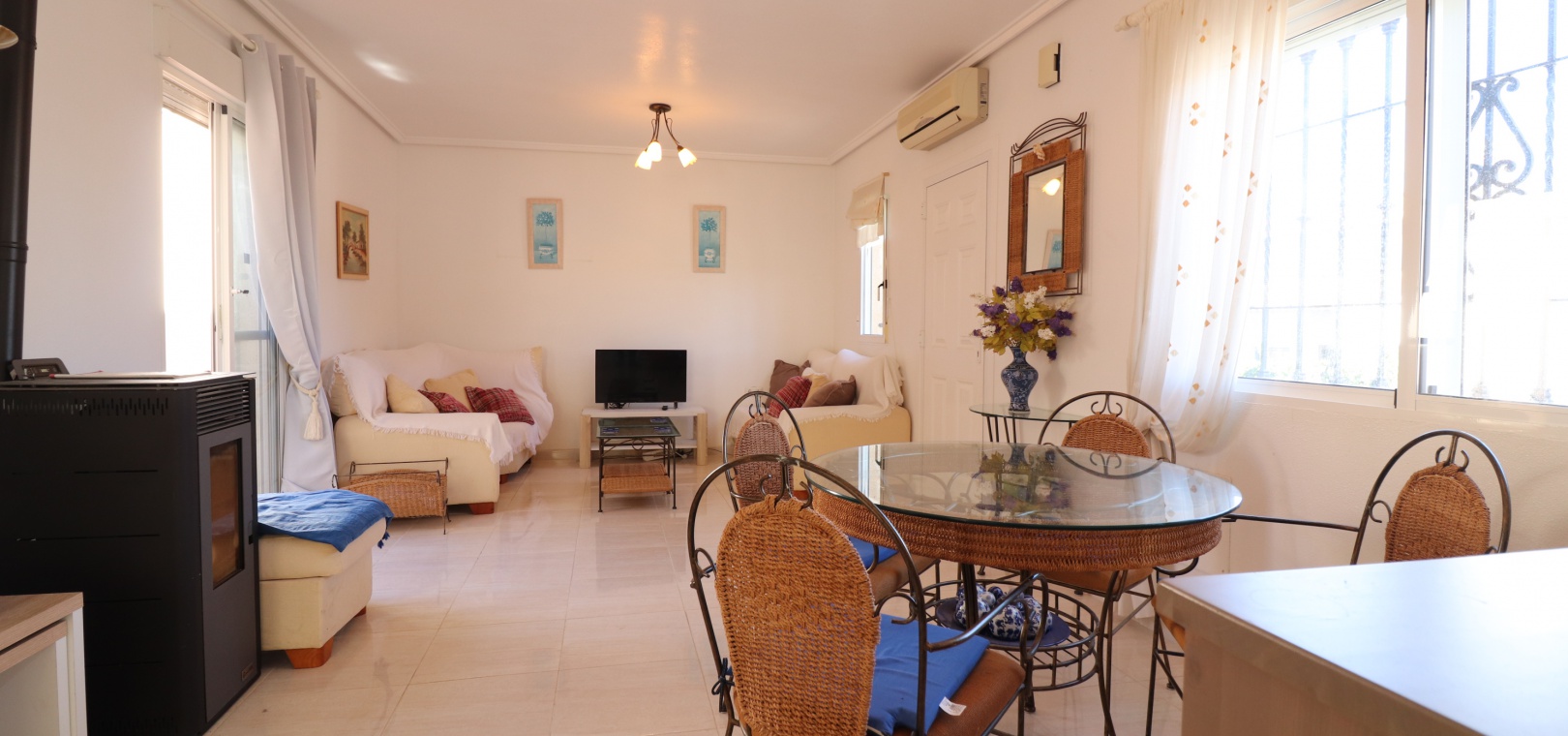This Lovely, South-East Facing, Two Bedroom Quad Villa in Benimar II is in a popular location, with open views, between Rojales and Benijofar. Situated within a couple minutes walk to the amenities and facilities of Benimar and only a 12 minute drive to the nearest blue flag beaches of Guardamar del Segura. This superb property in one of the best locations, comprises of a separate fully fitted kitchen; lounge/dining room with access out to front garden with off road parking or the internal private courtyard, perfect for dining outdoors; two double bedrooms; and a family bathroom.. External stairs from the courtyard lead to the sun drenched roof top solarium with open area and distant mountain views, ideal for entertaining, BBQ’s, sunbathing and more... The outside garden is tiled for low maintenance. Extras are to include fitted wardrobes, grills, air conditioning throughout, a storeroom, fly nets, pellet burner and more... Well positioned, what a price!!! This one won’t hang around for long!!!