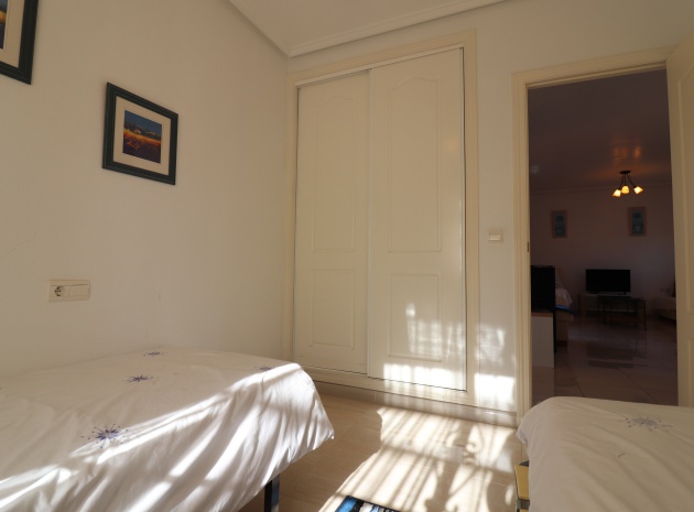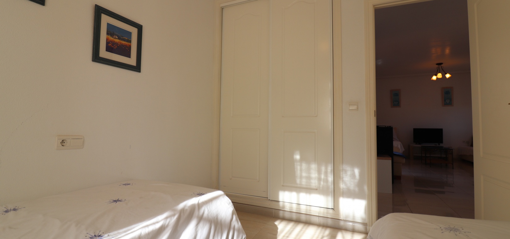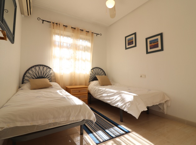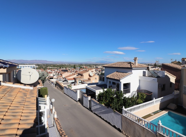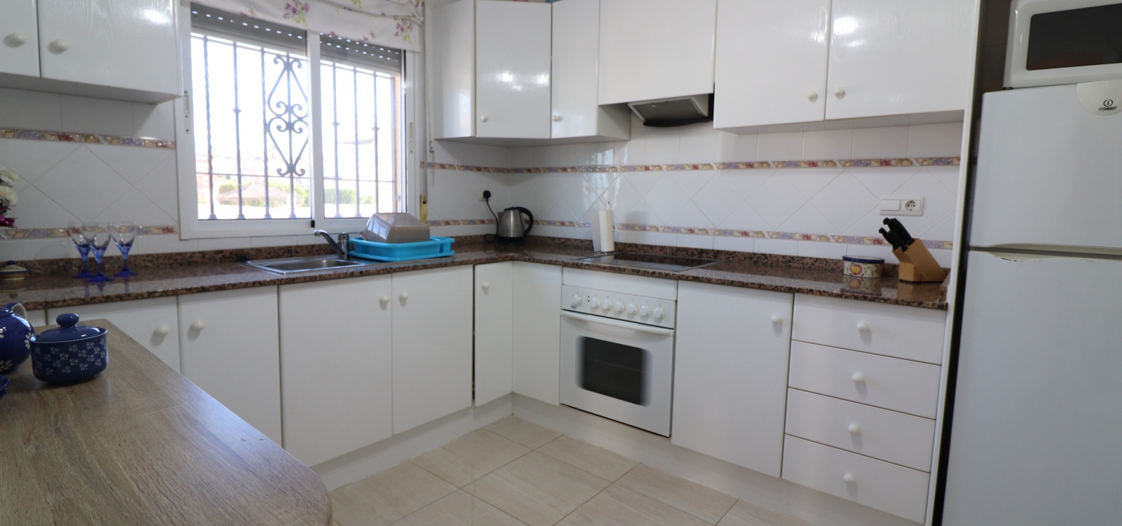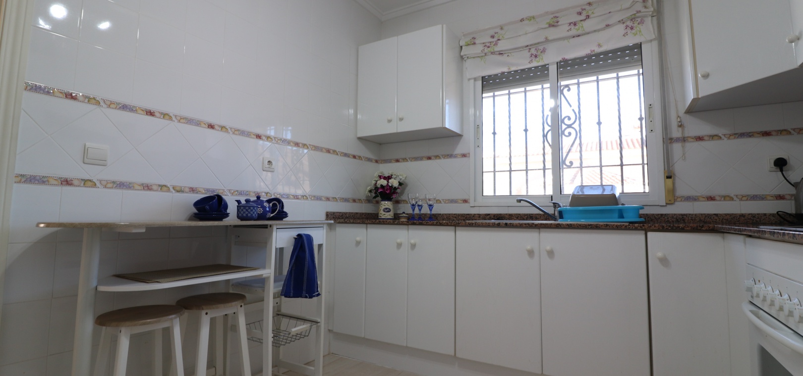 This Lovely, South-East Facing, Two Bedroom Quad Villa in Benimar II is in a popular location, with open views, between Rojales and Benijofar. Situated within a couple minutes walk to the amenities and facilities of Benimar and only a 12 minute drive to the nearest blue flag beaches of Guardamar del Segura. This superb property in one of the best locations, comprises of a separate fully fitted kitchen; lounge/dining room with access out to front garden with off road parking or the internal private courtyard, perfect for dining outdoors; two double bedrooms; and a family bathroom.. External stairs from the courtyard lead to the sun drenched roof top solarium with open area and distant mountain views, ideal for entertaining, BBQ’s, sunbathing and more... The outside garden is tiled for low maintenance. Extras are to include fitted wardrobes, grills, air conditioning throughout, a storeroom, fly nets, pellet burner and more... Well positioned, what a price!!! This one won’t hang around for long!!!
