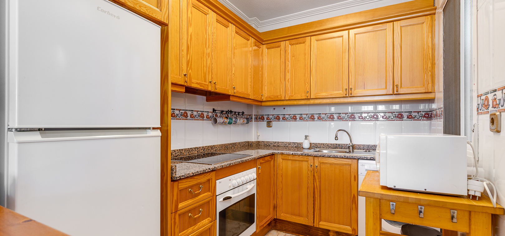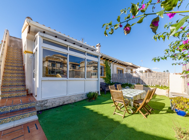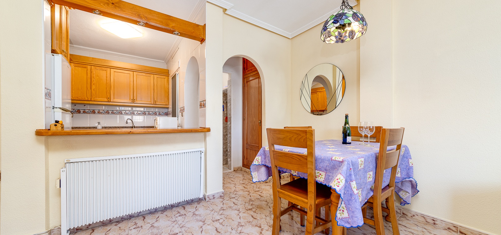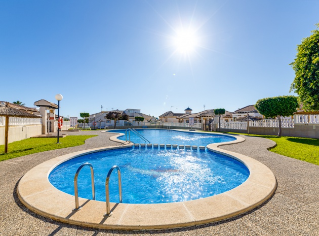 A 2 bed 1 bath Marbella style bungalow with a private swimming rooftop solarium located in Res. San Jose, Cabo Roig, Costa Blanca.