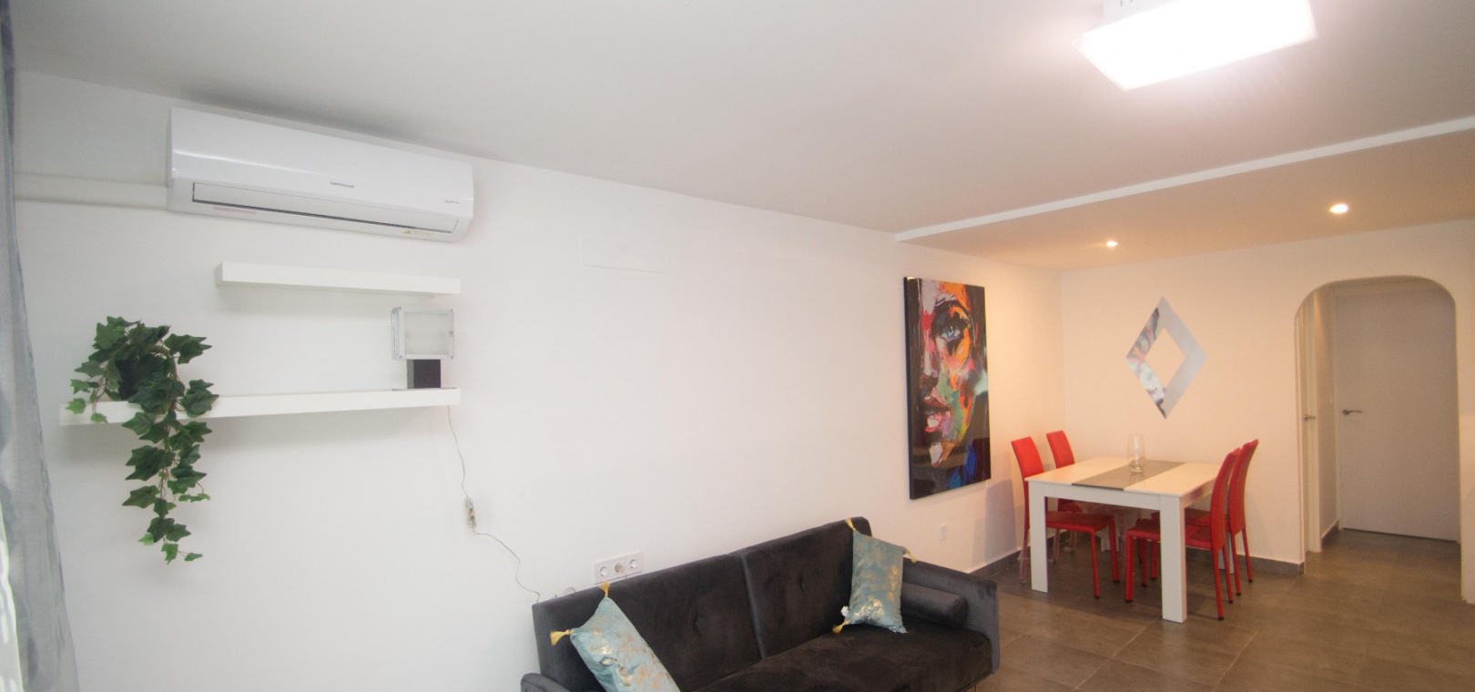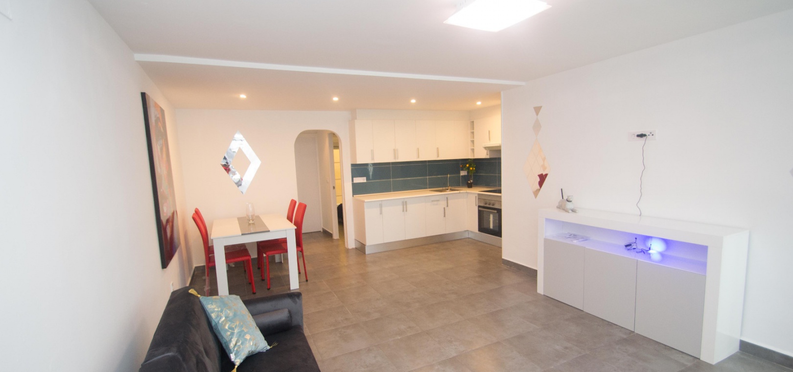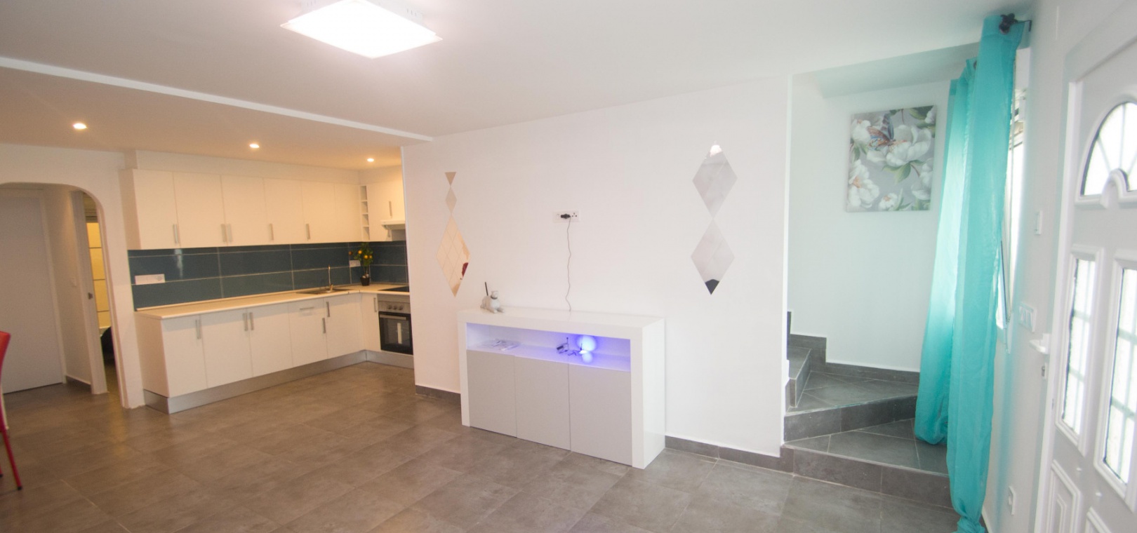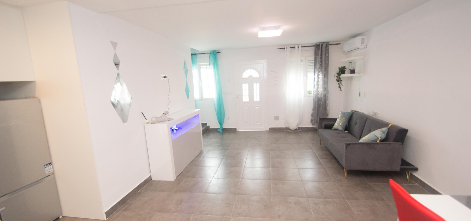 On the ground floor there is a lounge/diner with hot and cold A/C, open plan modern kitchen, utility area, 2 x double bedrooms & 1 x modern family bathroom,