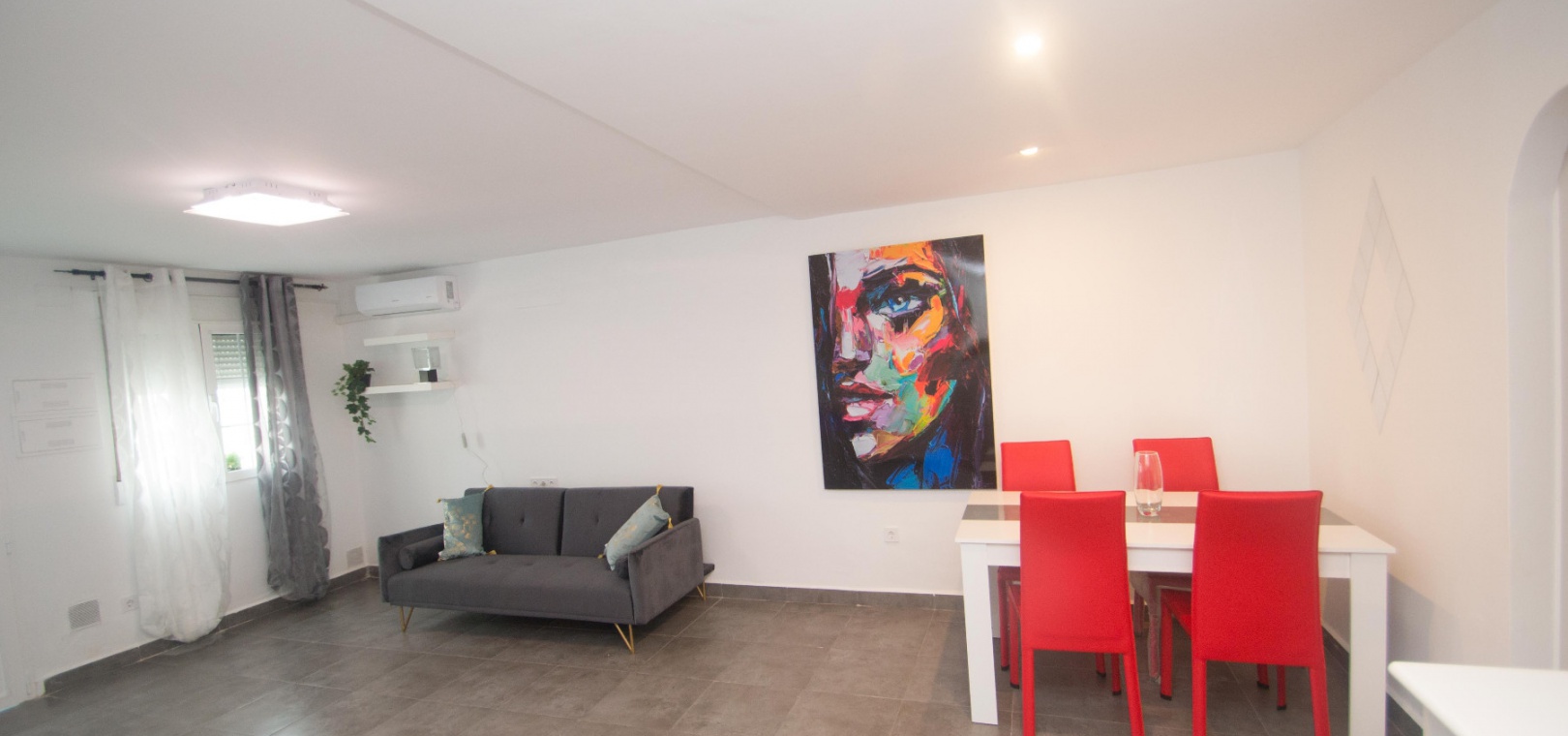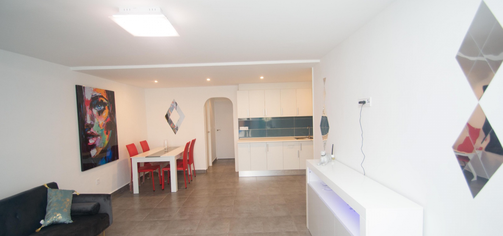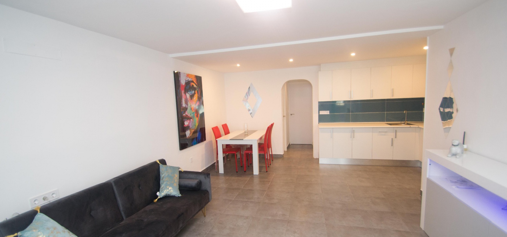 On the ground floor there is a lounge/diner with hot and cold A/C, open plan modern kitchen, utility area, 2 x double bedrooms & 1 x modern family bathroom,