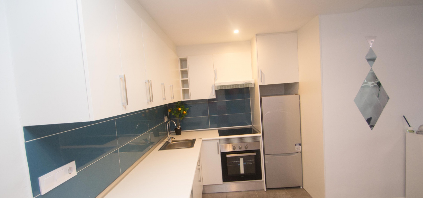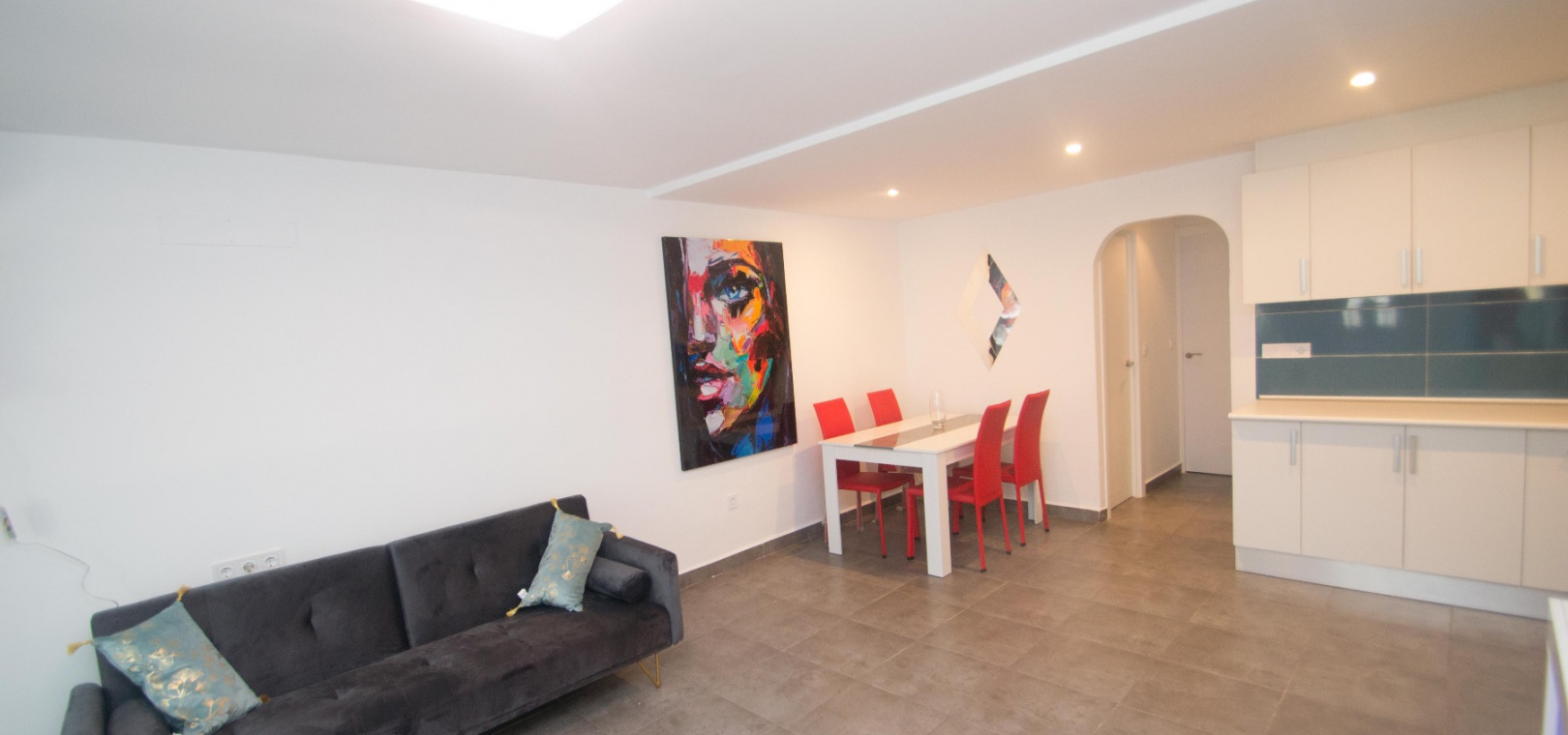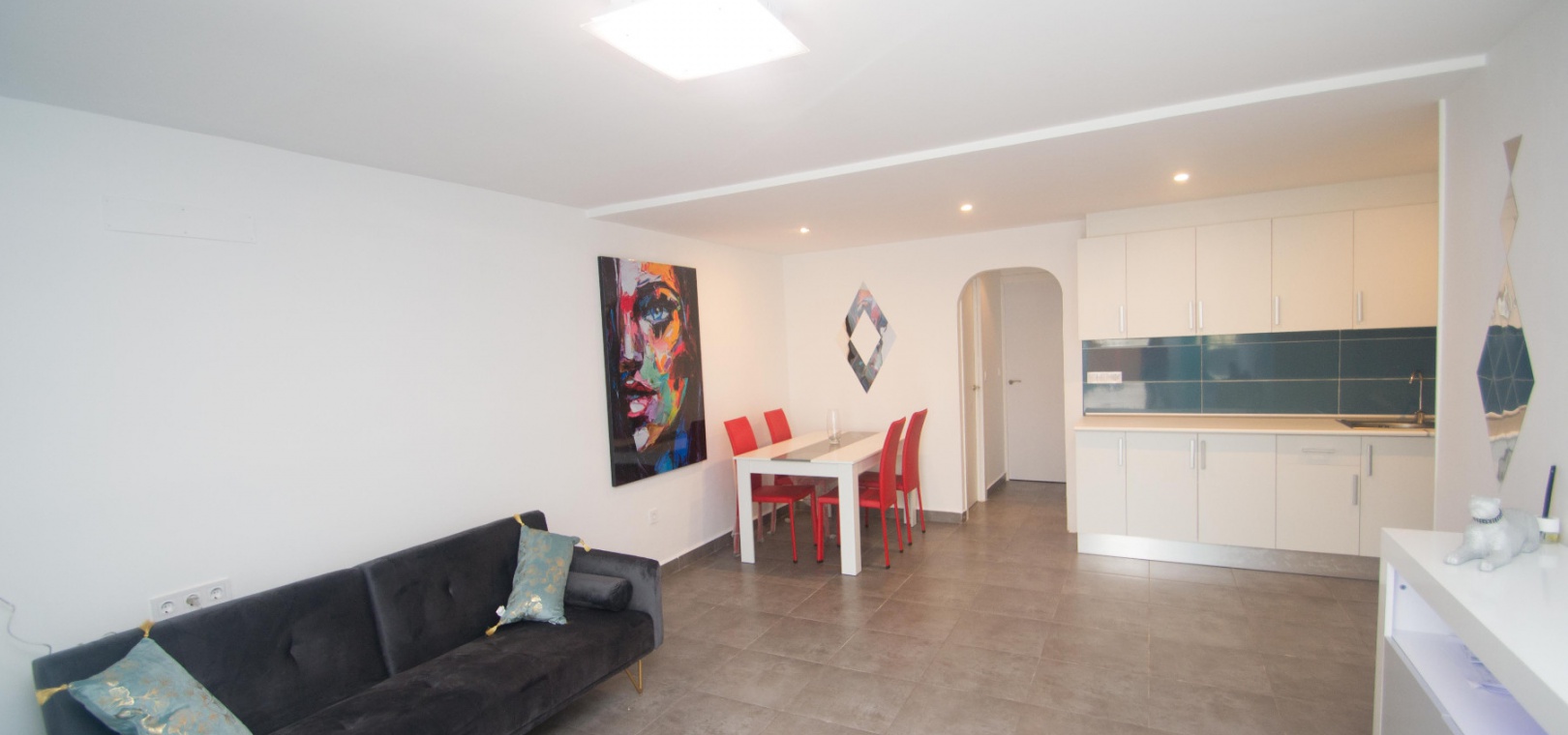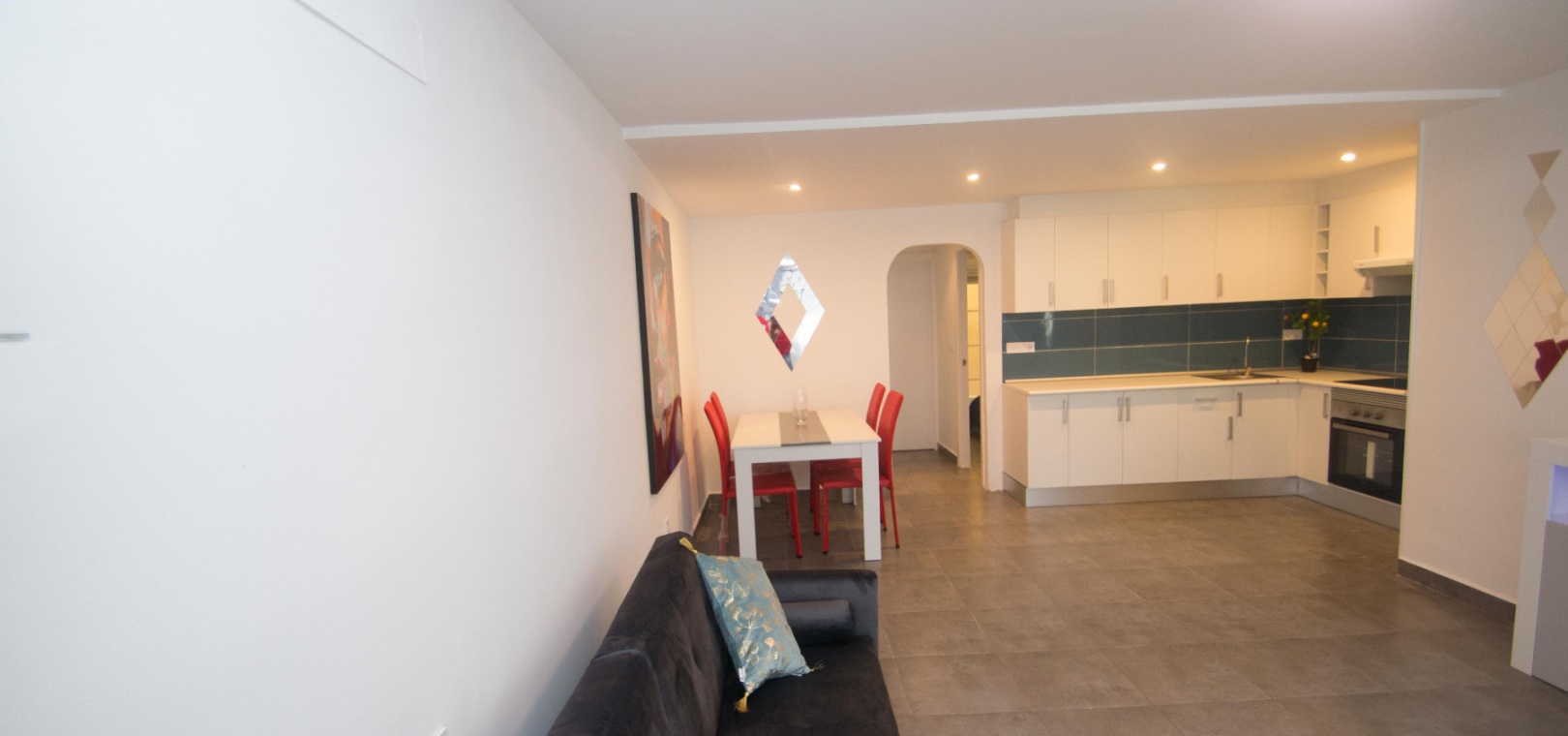 On the ground floor there is a lounge/diner with hot and cold A/C, open plan modern kitchen, utility area, 2 x double bedrooms & 1 x modern family bathroom,