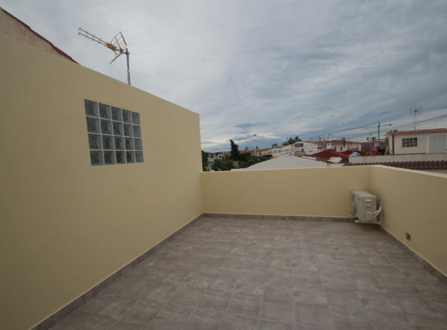 A South East facing 3 bed 2 bath townhouse with a private solarium located in Torreta on the outskirts of Torrevieja, Costa Blanca South.