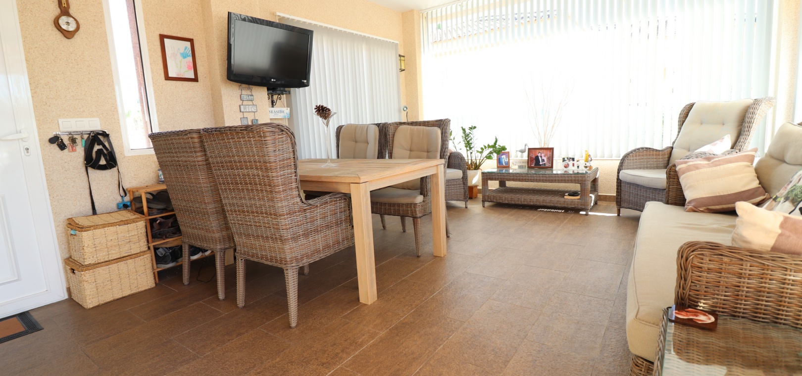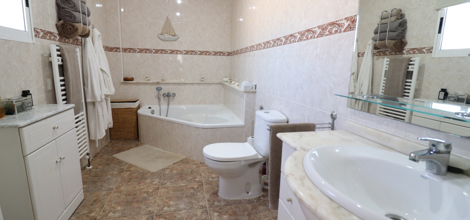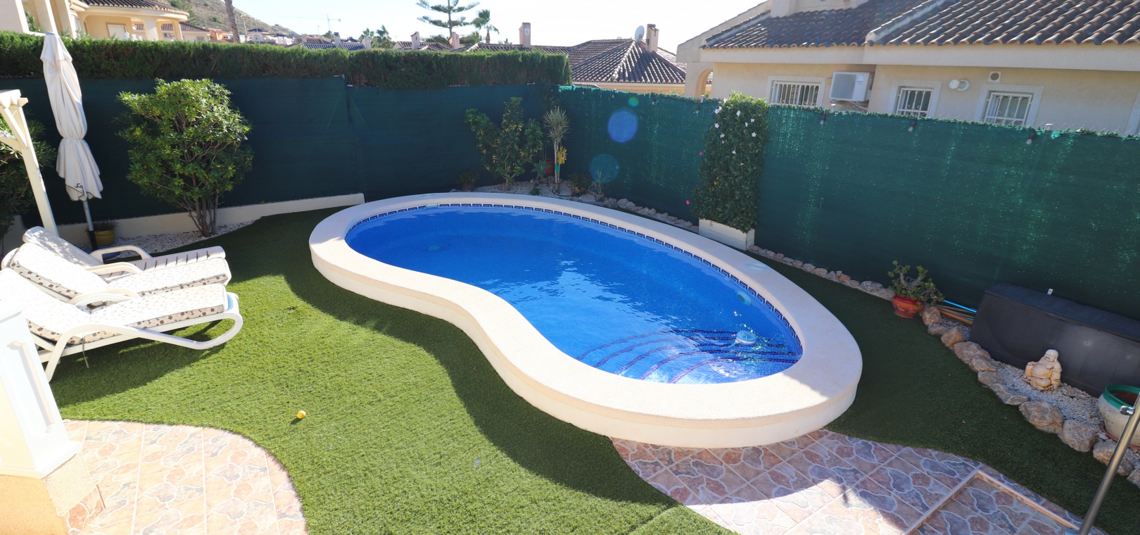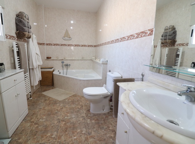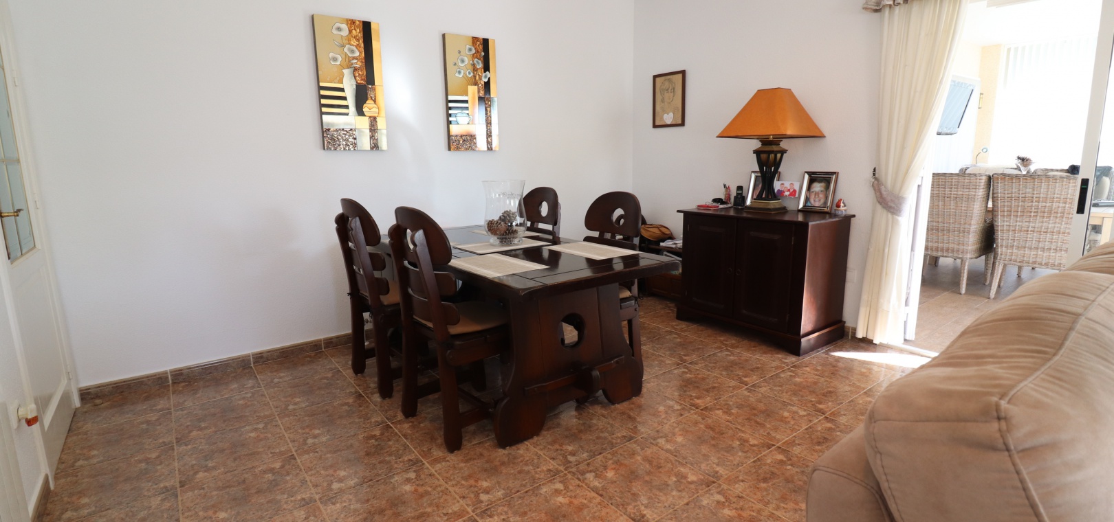 This Five Bedroom Detached Villa in Benimar II is located within the centre of this pretty and popular urbanization, between Benijofar and Rojales. Siuated within 5 minutes of local amenities and facilities, which are at an abundance in this area. Whilst the nearest beaches are at Guardamar del Segura in approx a 10 minute drive! This superb property of some 170m2, comprises on the main floor of an open plan fully fitted kitchen; spacious lounge/dining room with access out to either the glazed and covered terrace, an ideal winter room or the open surrounding terrace, overlooking the private swimming pool, gardens and beyond to the mountains; three double bedrooms, the master with en suite bathroom, and feature bathtub; and a family shower room. The separate annex in the Under Build is accessed externally, comprising of an open plan kitchenette; living/dining room; two bedrooms; and a shower room. Outside is a desirable garden, fully landscaped with tiled, graveled and artificial grassed areas, beautiful plants & trees, a private swimming pool, off road parking, outside kitchen/BBQ area and of course room to sunbathe, relax, entertain and more... Extras are to include under floor heating in the main living area + bathrooms, gas fireplace, natural gas central heating, fitted wardrobes, air conditioning, grills, etc... Great property, great price and with many many extras included, this is one seriously not to be missed!