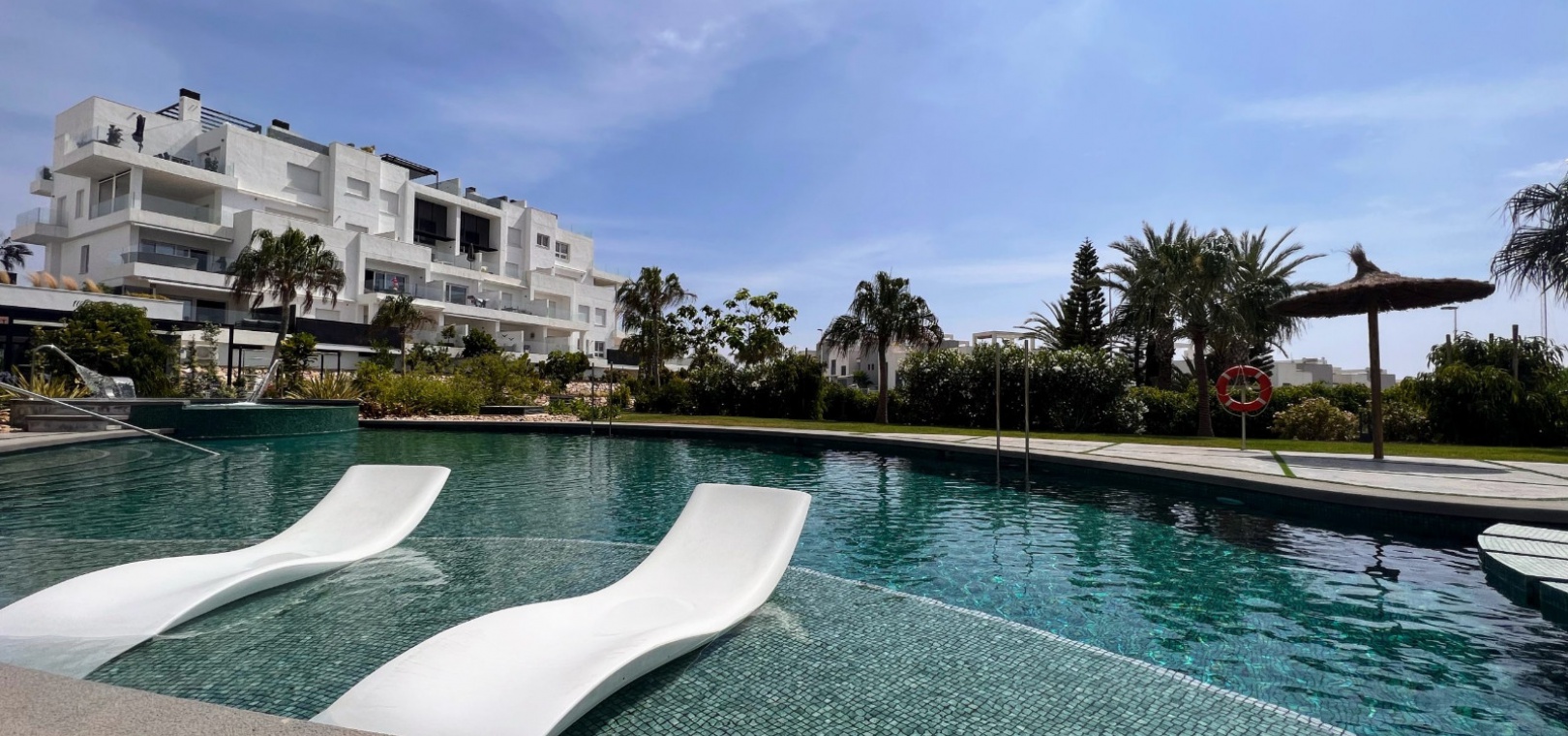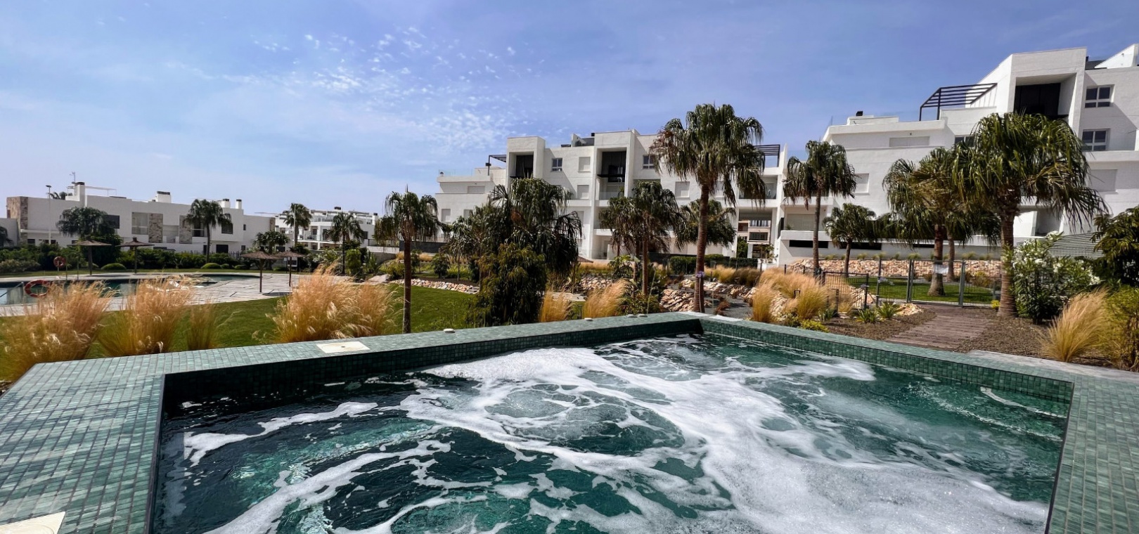 Lounge / diner, open plan fully fitted kitchen, 2 x double bedrooms, 2 x bathrooms with under floor heating, large terrace, communal swimming pool, secure gated community & much more.