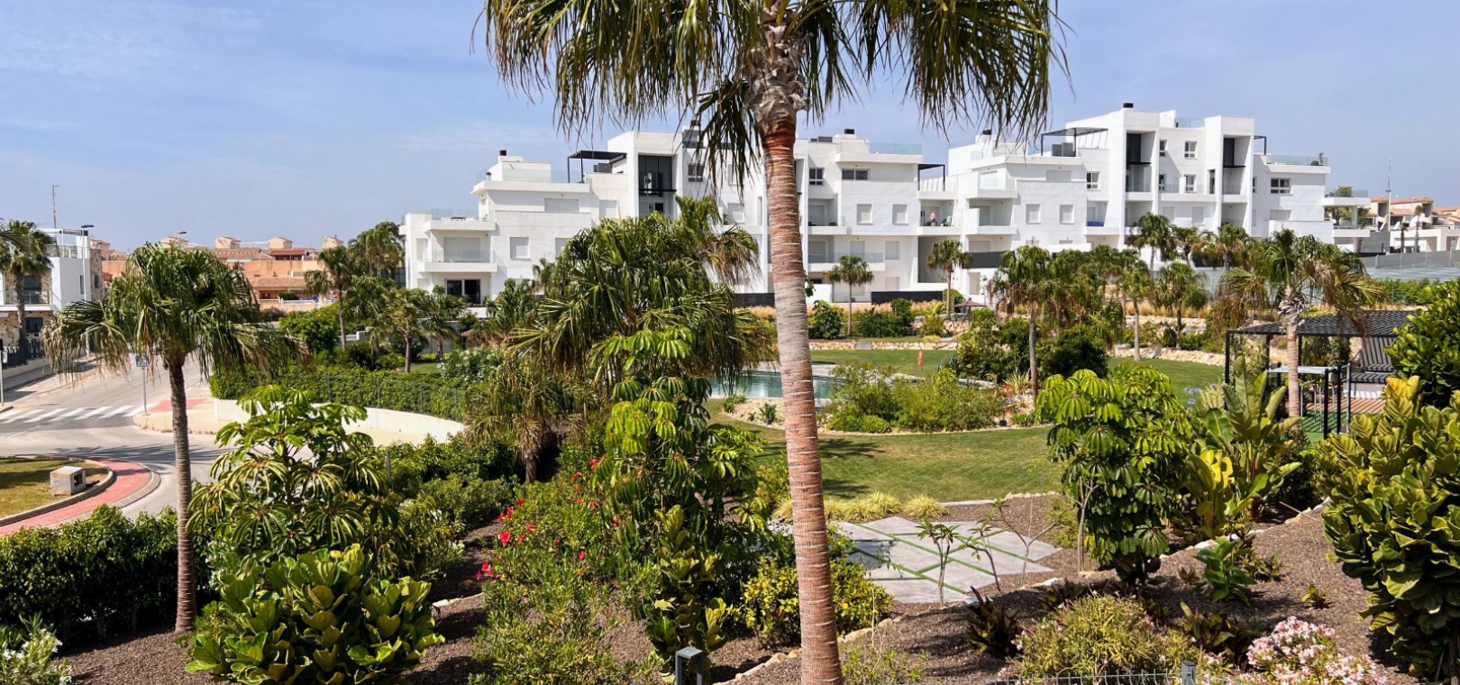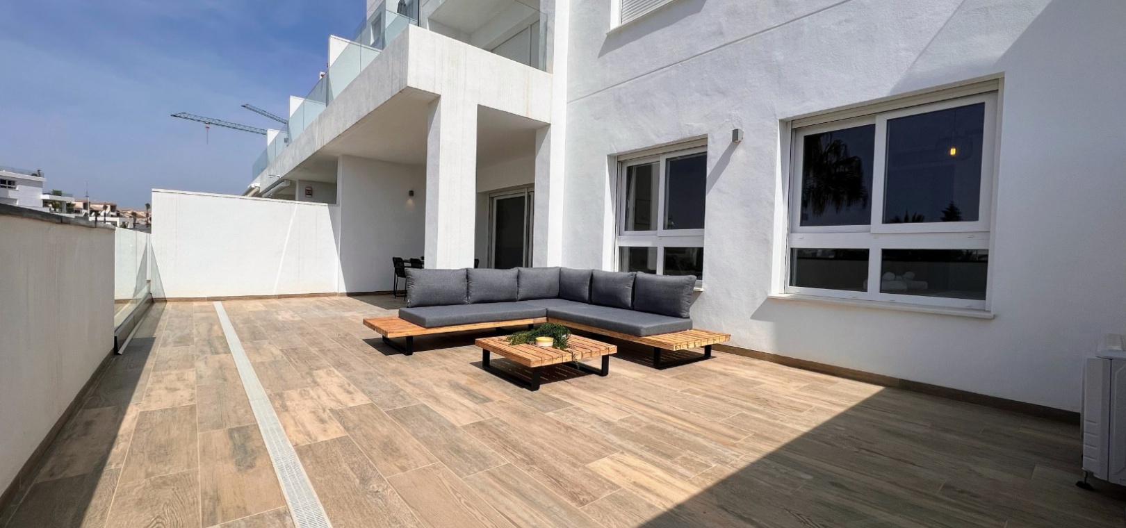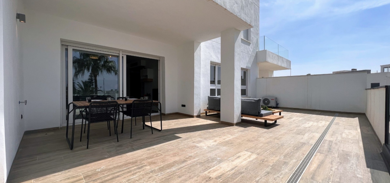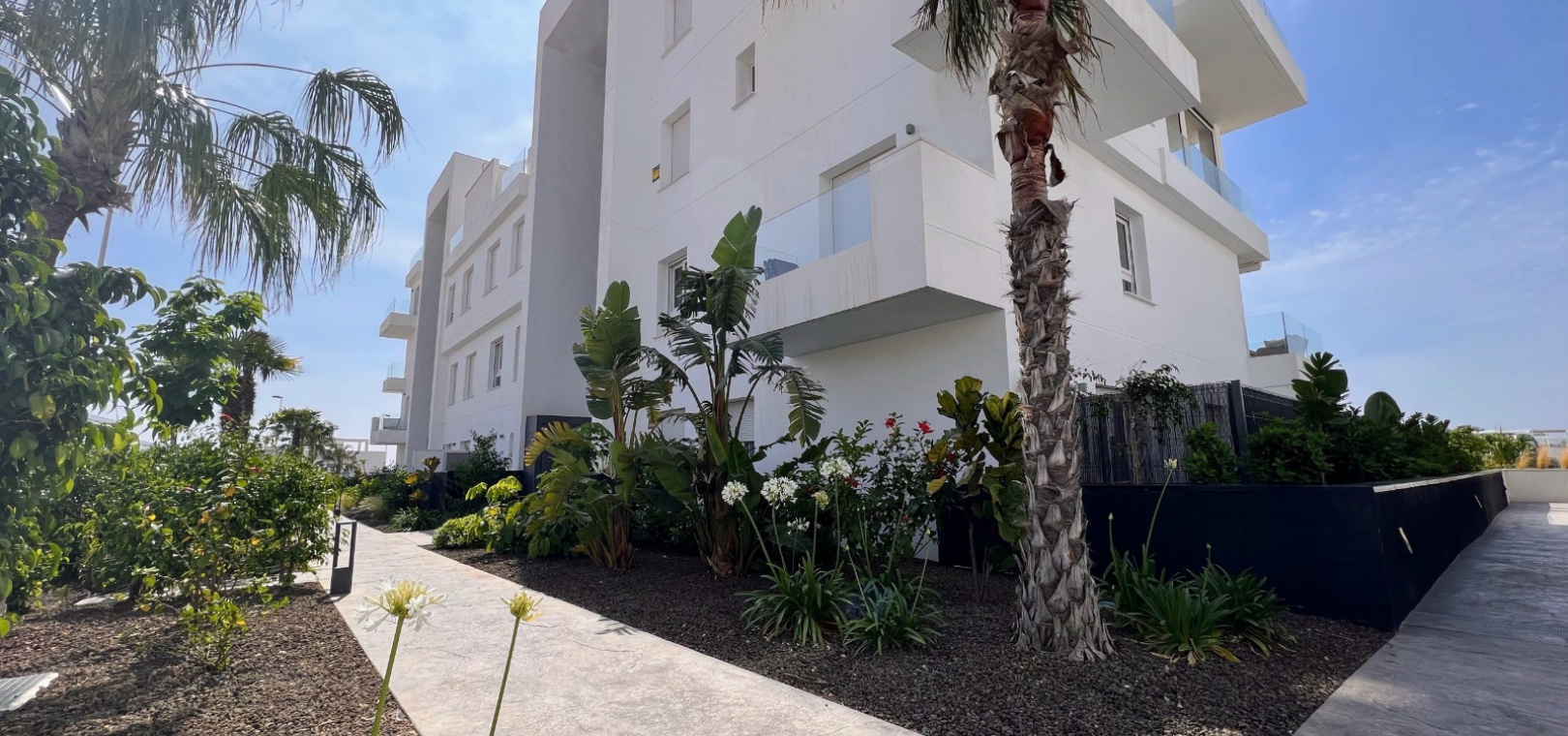 A South facing modern style luxury 2 bed 2 bath ground floor apartment located in Res. Bali, Punta Prima, Costa Blanca.