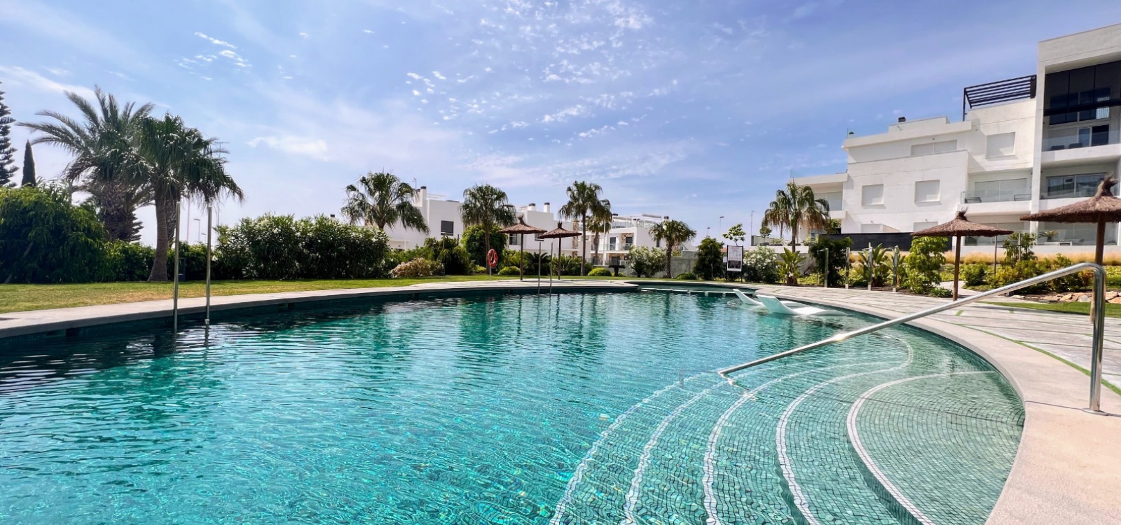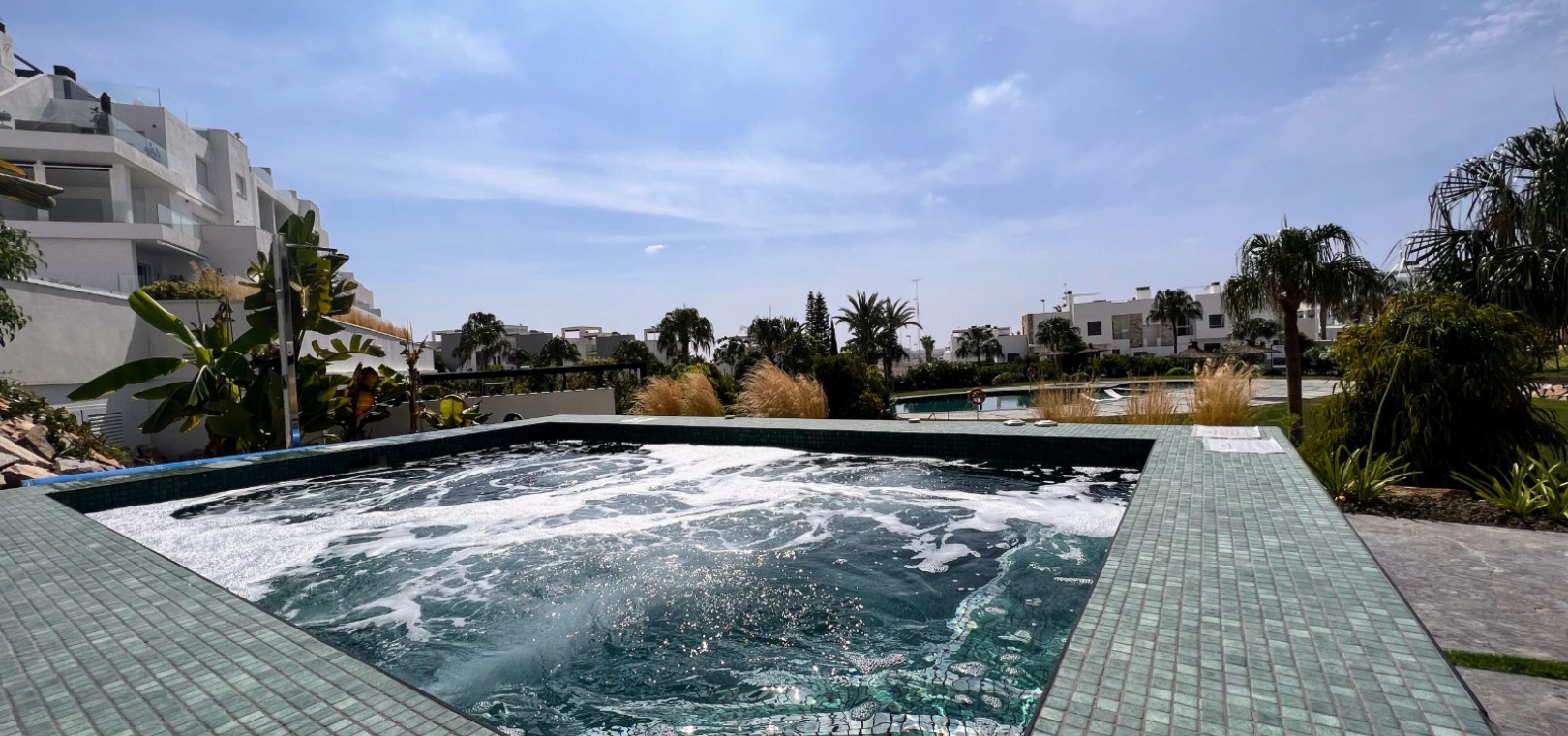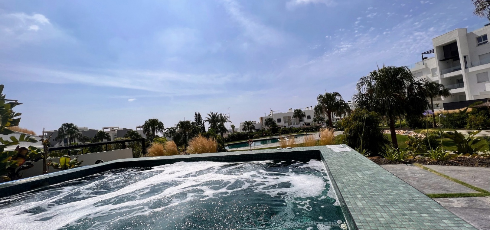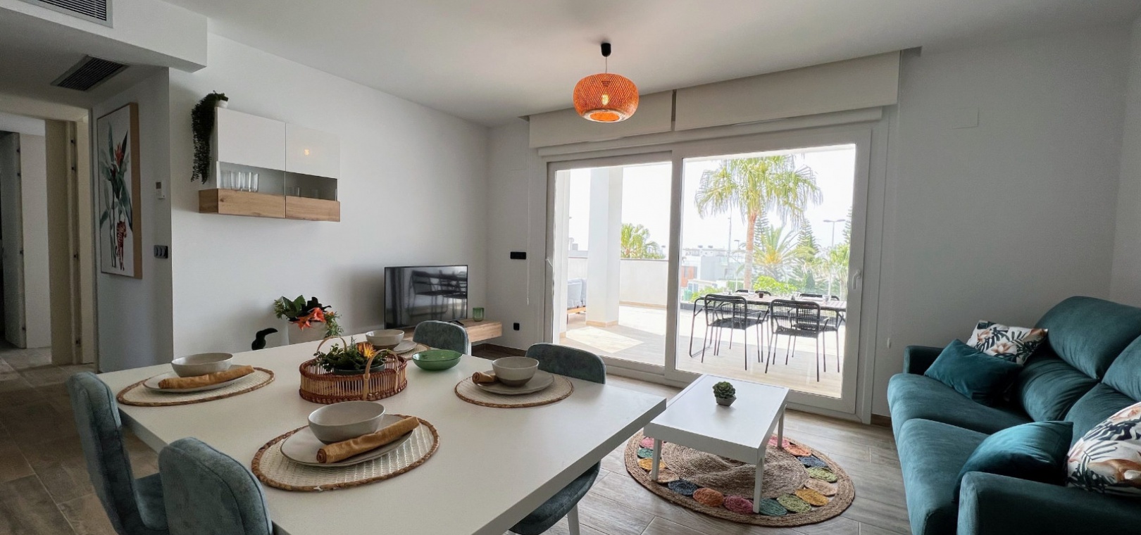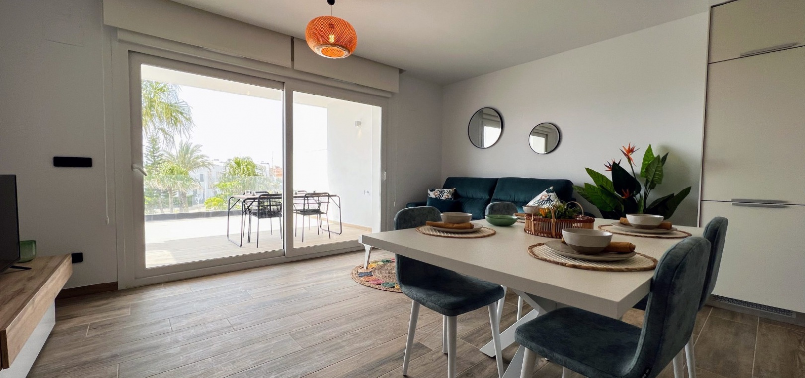 A South facing modern style luxury 2 bed 2 bath ground floor apartment located in Res. Bali, Punta Prima, Costa Blanca.