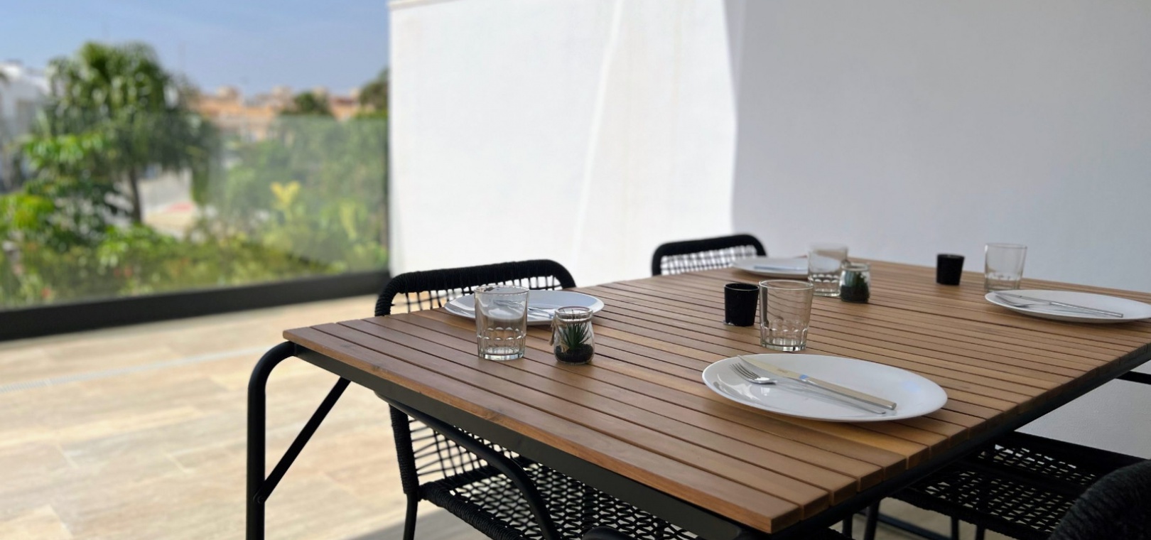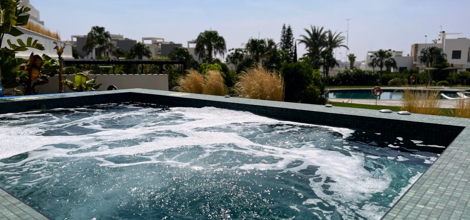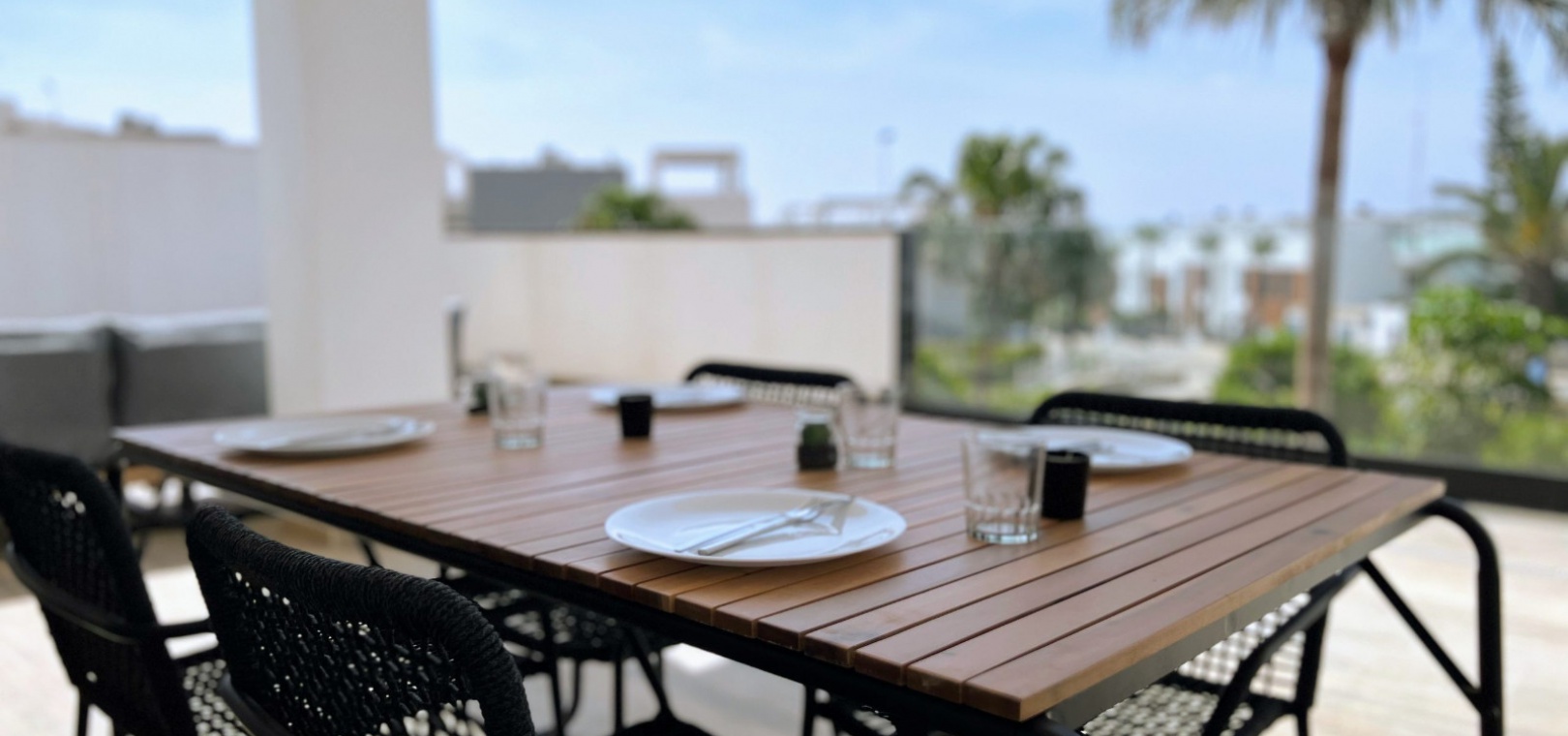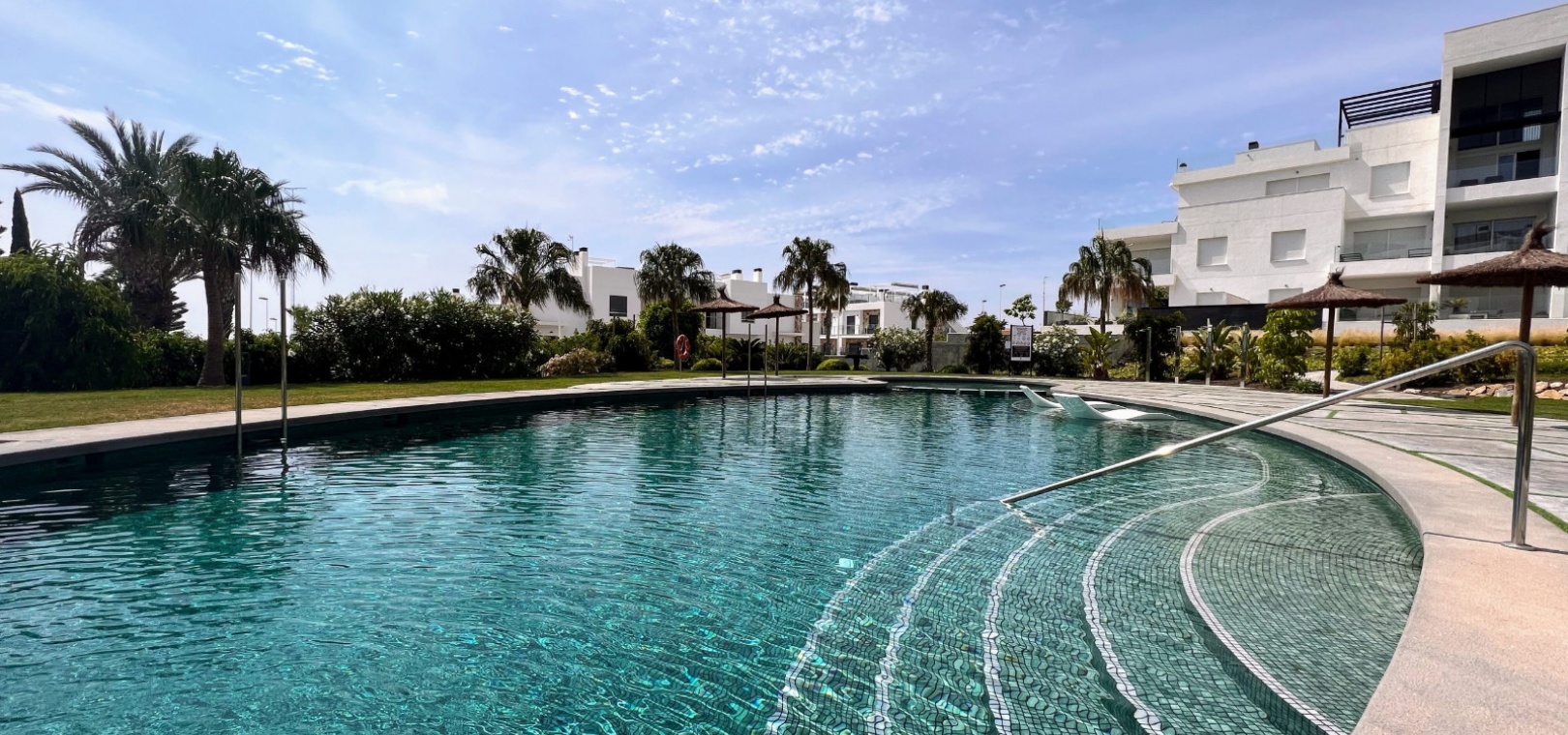 A South facing modern style luxury 2 bed 2 bath ground floor apartment located in Res. Bali, Punta Prima, Costa Blanca.