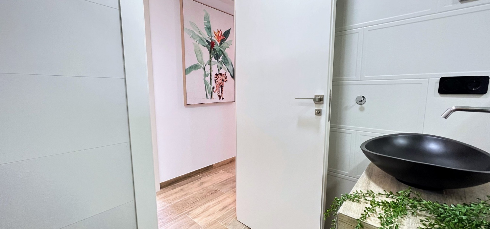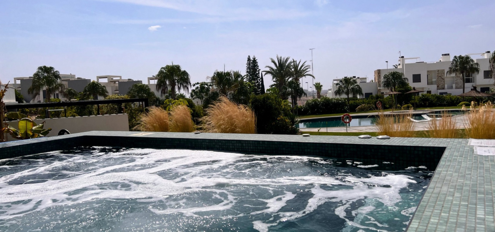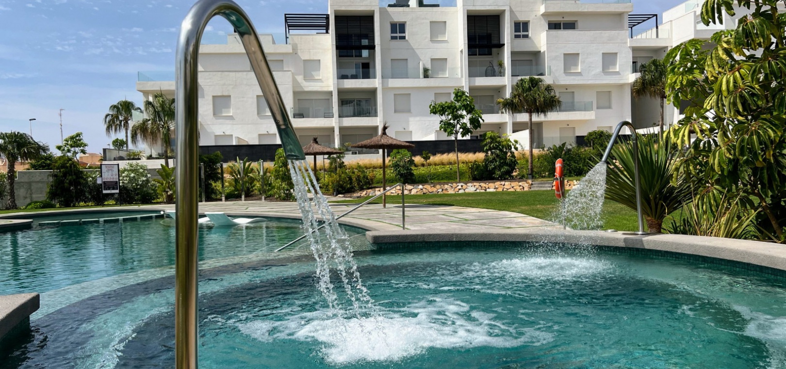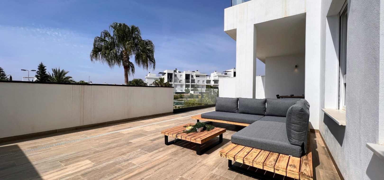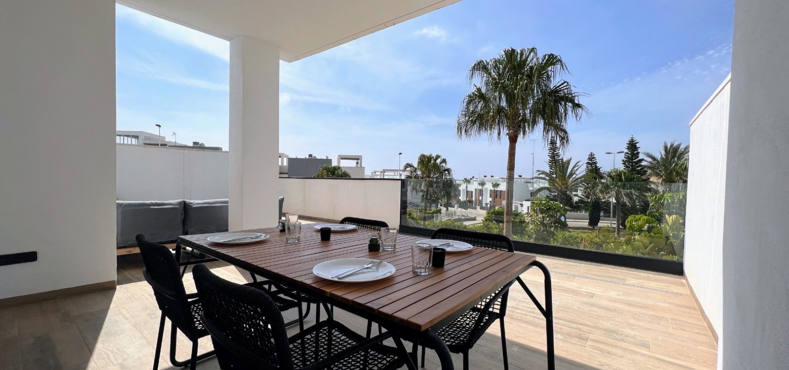 A South facing modern style luxury 2 bed 2 bath ground floor apartment located in Res. Bali, Punta Prima, Costa Blanca.