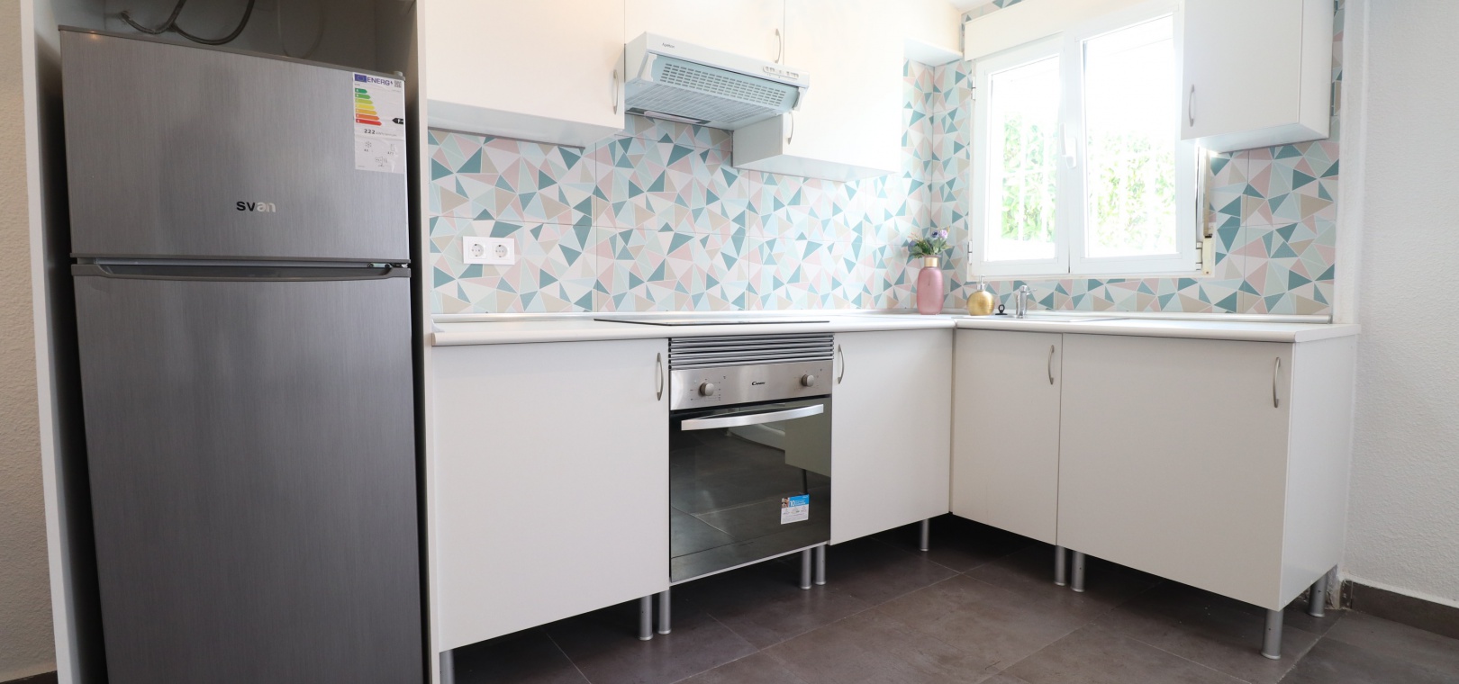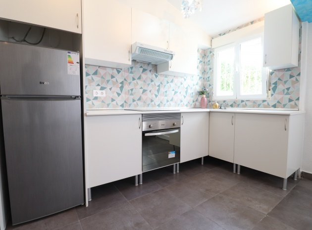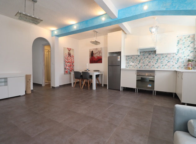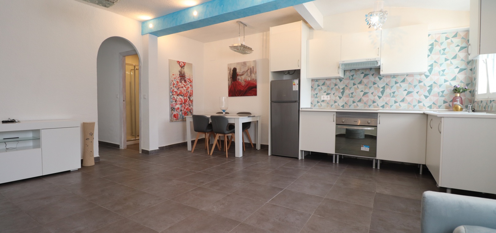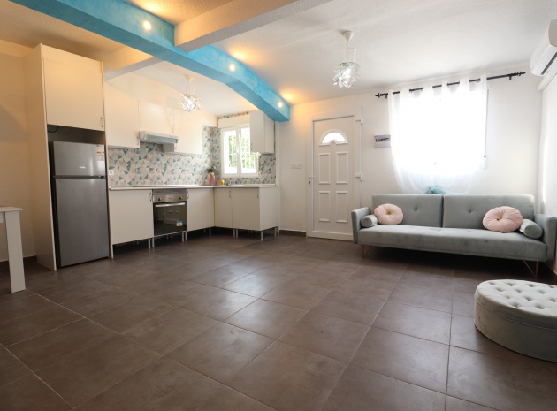 This Fully Reformed, West Facing, Two Bedroom Bungalow in Torreta II is located in the Torrevieja area, just a couple of minutes drive from McDonalds, Carrefour & Habaneras Commercial Centre, also nearer amenities and facilities within a 5 minute walk or so. Torrevieja town centre is a five minute drive away and less than 10 minutes to an array of beaches available. This property comprises of a new, open plan fully fitted kitchen; extremely spacious lounge/dining room with access out to the front, tiled low maintenance garden with off road parking; two double bedrooms, the master with access to a small inner courtyard and utility area; and a modern shower room... Extras are to include all new white goods, furniture, air conditioning in the living room and grills! Bargain opportunity!