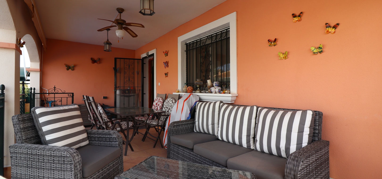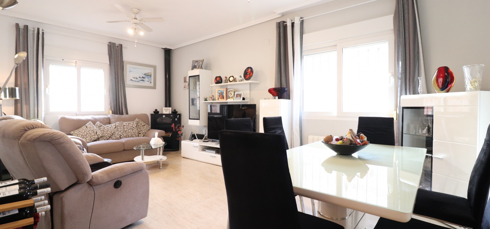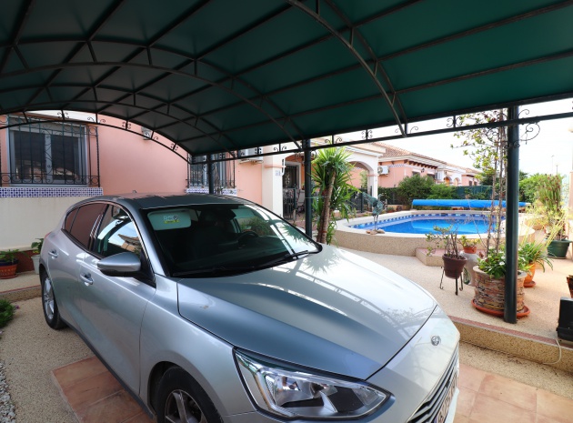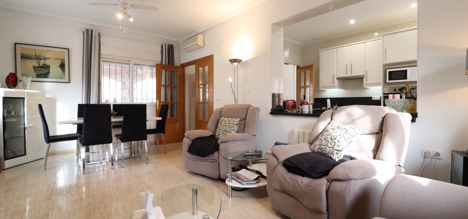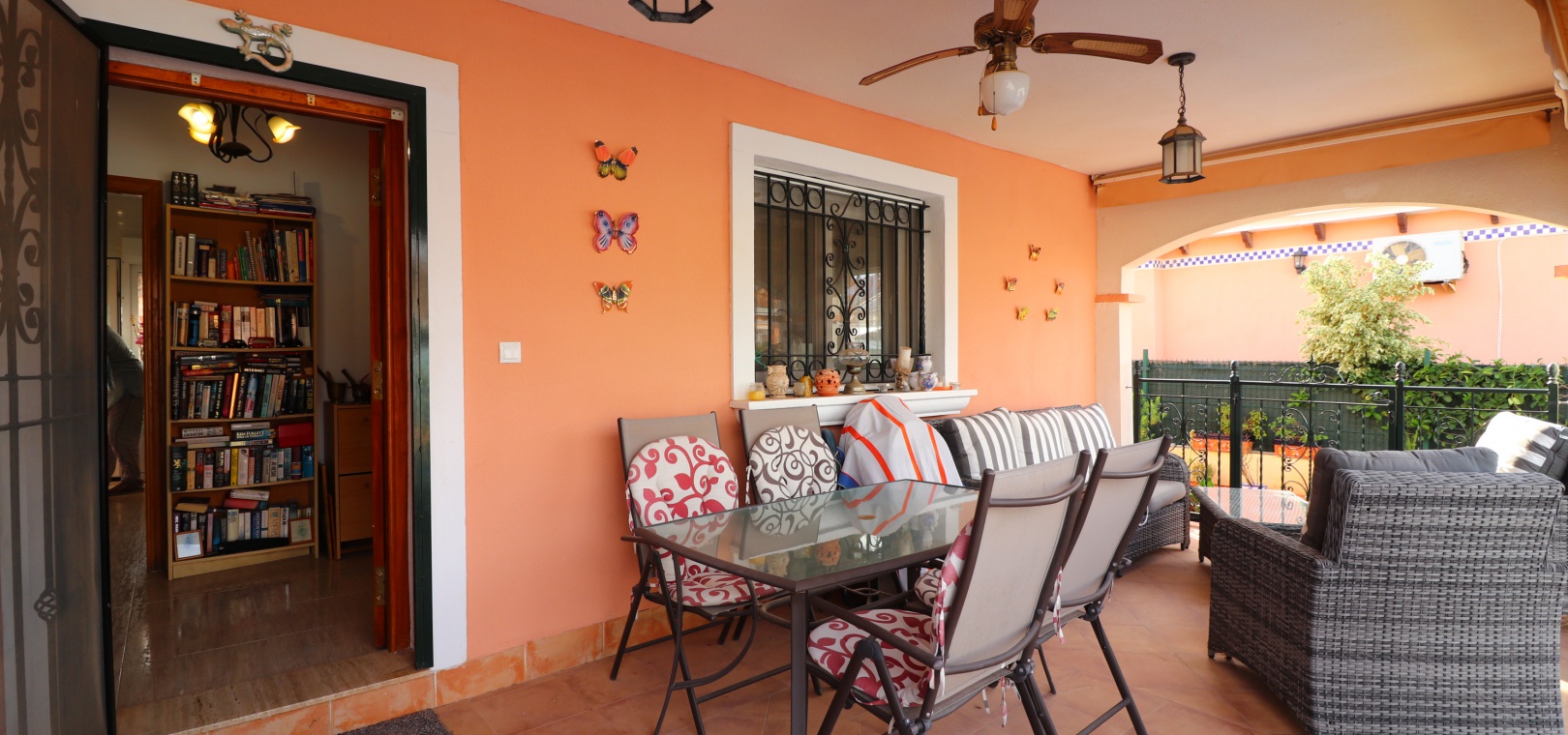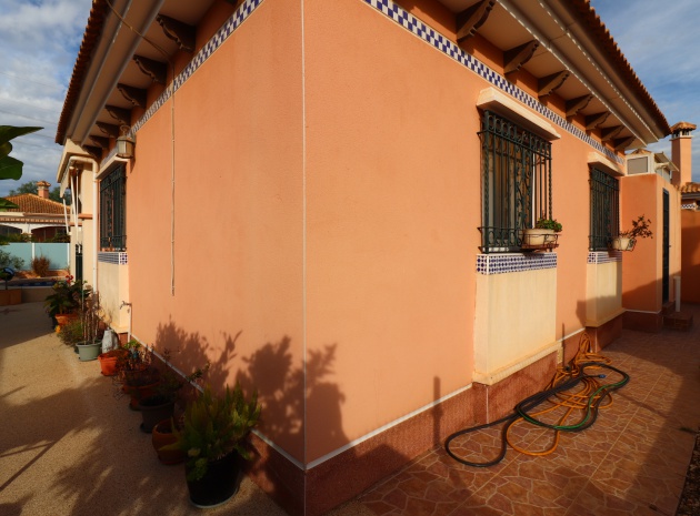 This Exclusive West Facing, Three Bedroom Detached Villa in La Herrada is located on a lovely, quiet Urbanization just outside the town centre of Los Montesinos. Situated on the urb itself is a local bar and restaurant, and main brand supermarket, within many more amenities and facilities in the town centre. This fabulous property has been updated in areas comprising of a large separate fully fitted kitchen, with has been modernized + a breakfast hatch + access to the internal courtyard & utility area; family sized lounge/dining room; three double bedrooms, the master with en suite shower room; and a family bathroom. Outside is fully landscaped with stone carpet, graveled and tiled areas, a swimming pool, off road parking under the car port and of course ample room to dine and entertain al fresco. There is a desirable covered terrace of a superb size, which benefits from overlooking the private pool and gardens, a perfect extended living space! From the rear separate utility, are external stairs to the private roof top solarium, with countryside & distant salt lake views. Many extras are included with this wonderful opportunity, such as fitted wardrobes, air conditioning in some rooms, grills, log burner, fly nets and more... Simply wow!