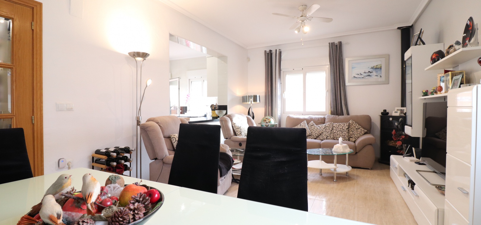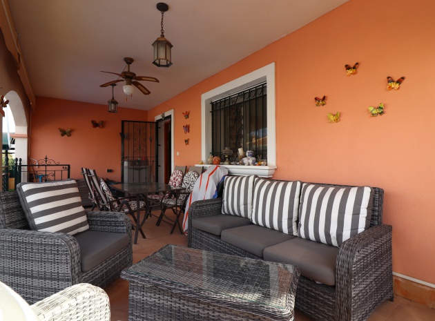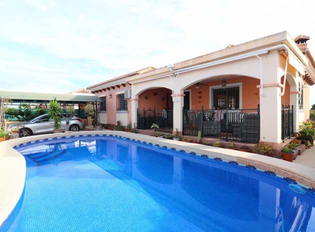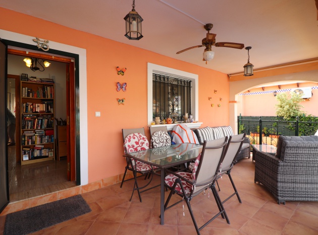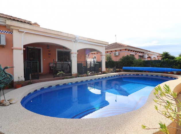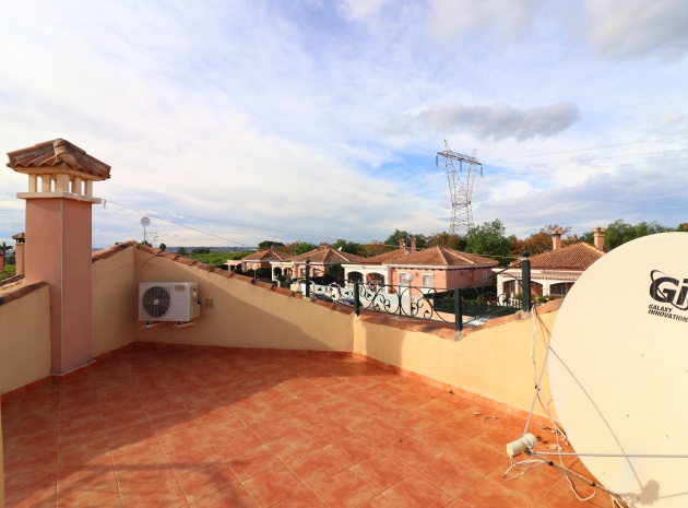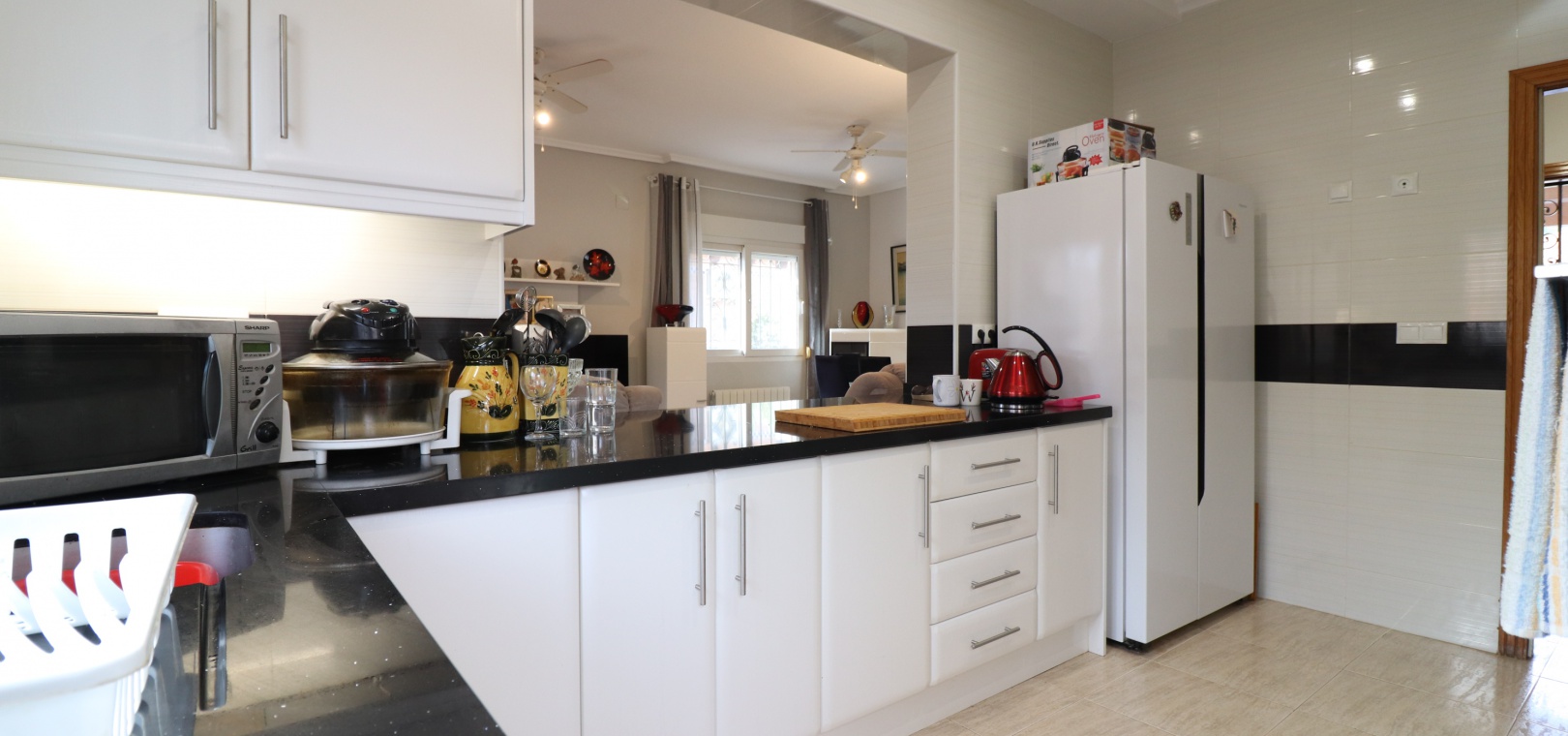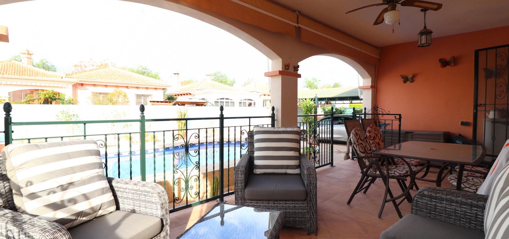 This Exclusive West Facing, Three Bedroom Detached Villa in La Herrada is located on a lovely, quiet Urbanization just outside the town centre of Los Montesinos. Situated on the urb itself is a local bar and restaurant, and main brand supermarket, within many more amenities and facilities in the town centre. This fabulous property has been updated in areas comprising of a large separate fully fitted kitchen, with has been modernized + a breakfast hatch + access to the internal courtyard & utility area; family sized lounge/dining room; three double bedrooms, the master with en suite shower room; and a family bathroom. Outside is fully landscaped with stone carpet, graveled and tiled areas, a swimming pool, off road parking under the car port and of course ample room to dine and entertain al fresco. There is a desirable covered terrace of a superb size, which benefits from overlooking the private pool and gardens, a perfect extended living space! From the rear separate utility, are external stairs to the private roof top solarium, with countryside & distant salt lake views. Many extras are included with this wonderful opportunity, such as fitted wardrobes, air conditioning in some rooms, grills, log burner, fly nets and more... Simply wow!