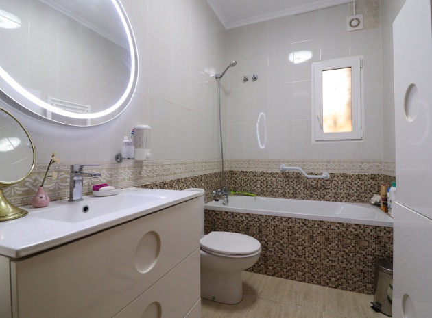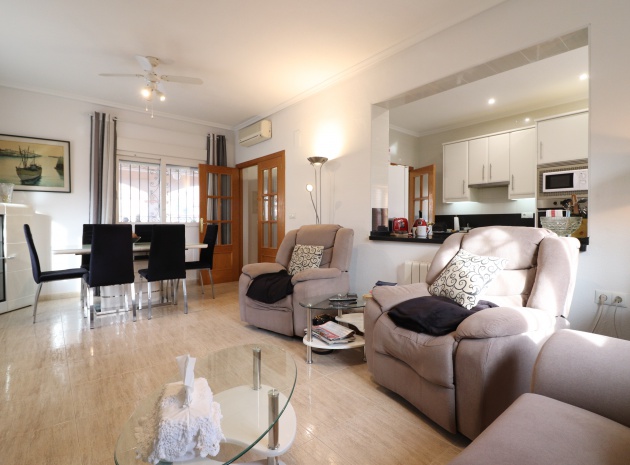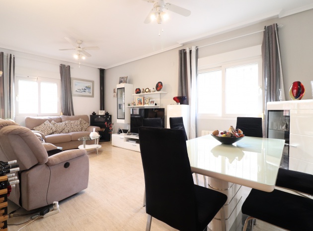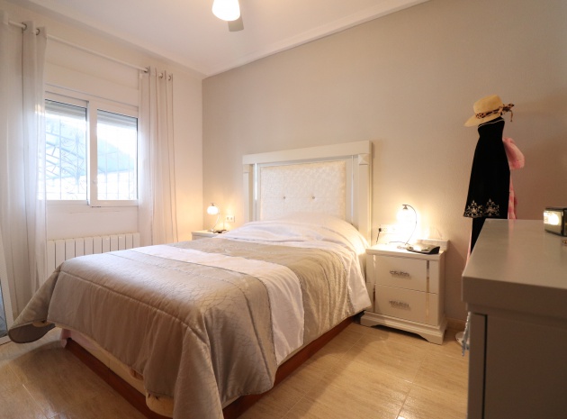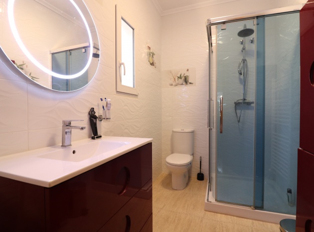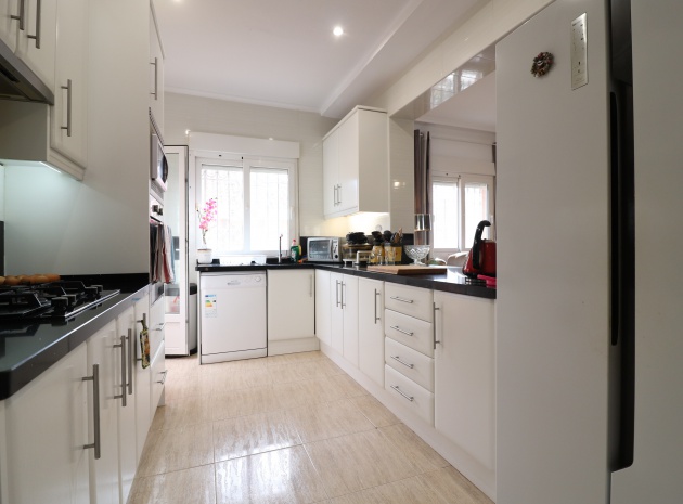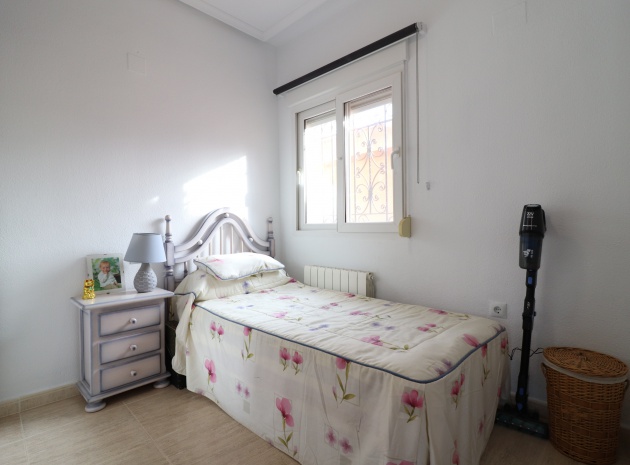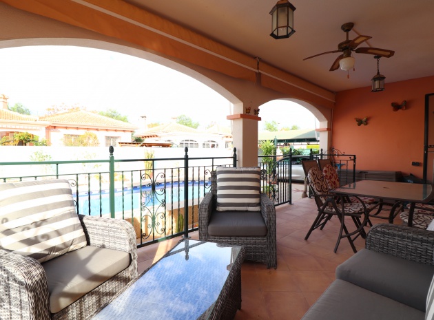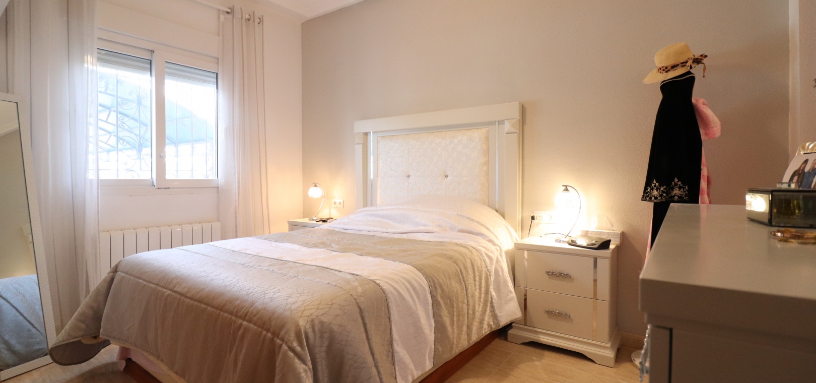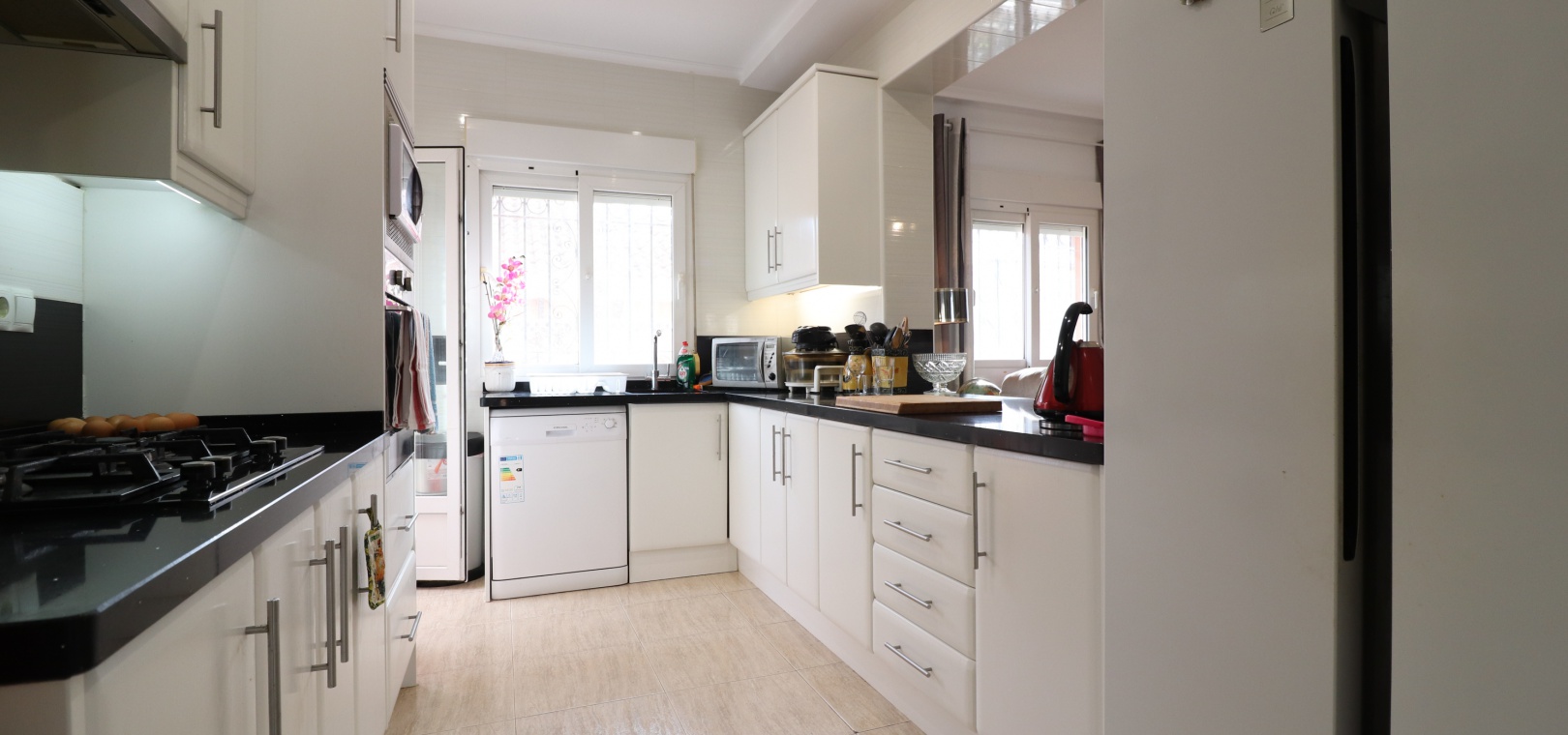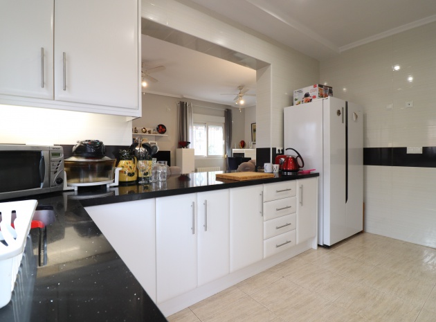 This Exclusive West Facing, Three Bedroom Detached Villa in La Herrada is located on a lovely, quiet Urbanization just outside the town centre of Los Montesinos. Situated on the urb itself is a local bar and restaurant, and main brand supermarket, within many more amenities and facilities in the town centre. This fabulous property has been updated in areas comprising of a large separate fully fitted kitchen, with has been modernized + a breakfast hatch + access to the internal courtyard & utility area; family sized lounge/dining room; three double bedrooms, the master with en suite shower room; and a family bathroom. Outside is fully landscaped with stone carpet, graveled and tiled areas, a swimming pool, off road parking under the car port and of course ample room to dine and entertain al fresco. There is a desirable covered terrace of a superb size, which benefits from overlooking the private pool and gardens, a perfect extended living space! From the rear separate utility, are external stairs to the private roof top solarium, with countryside & distant salt lake views. Many extras are included with this wonderful opportunity, such as fitted wardrobes, air conditioning in some rooms, grills, log burner, fly nets and more... Simply wow!