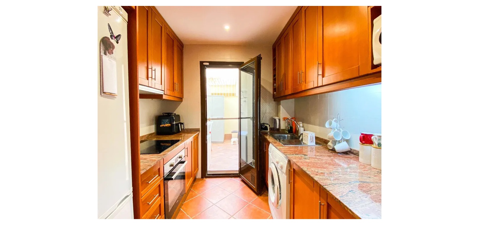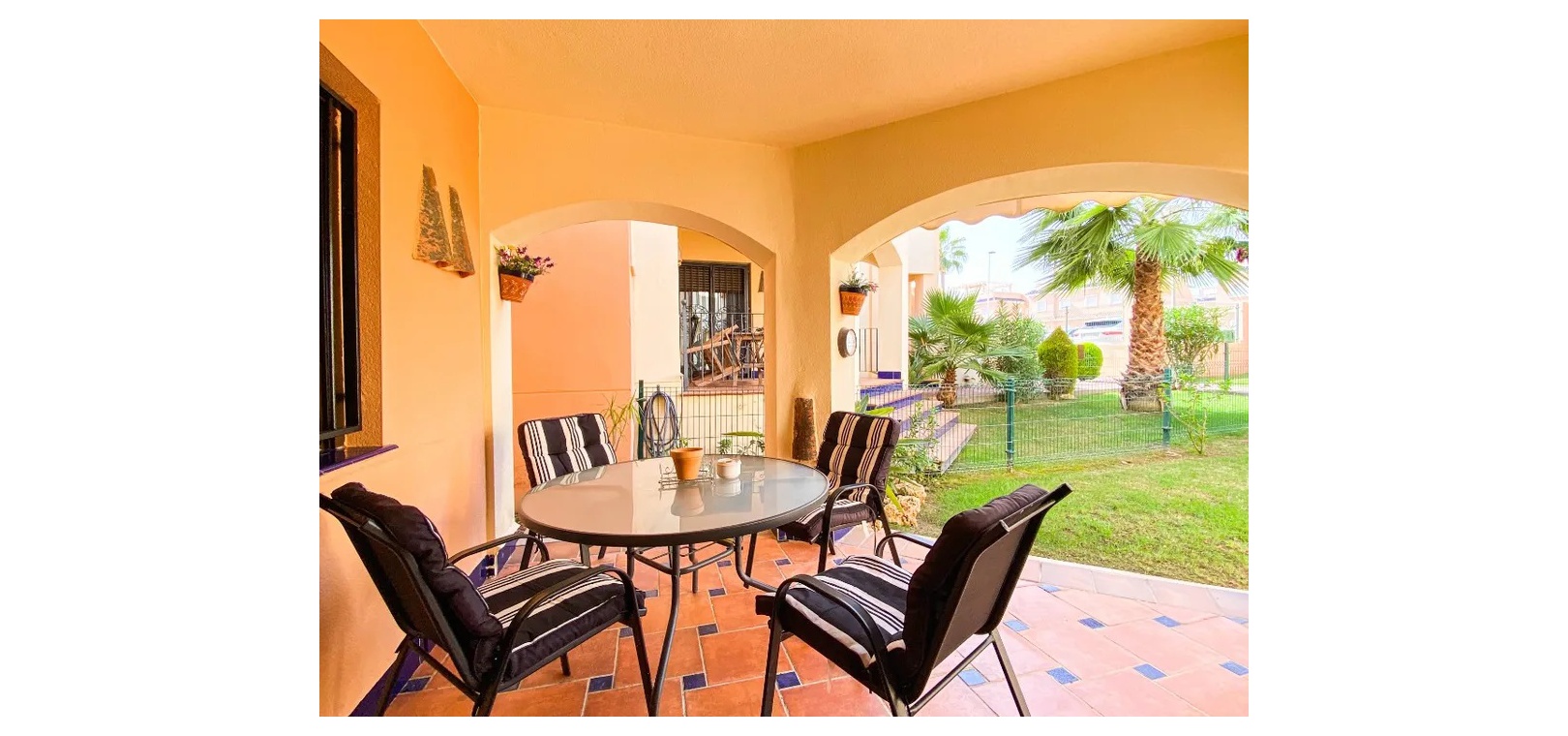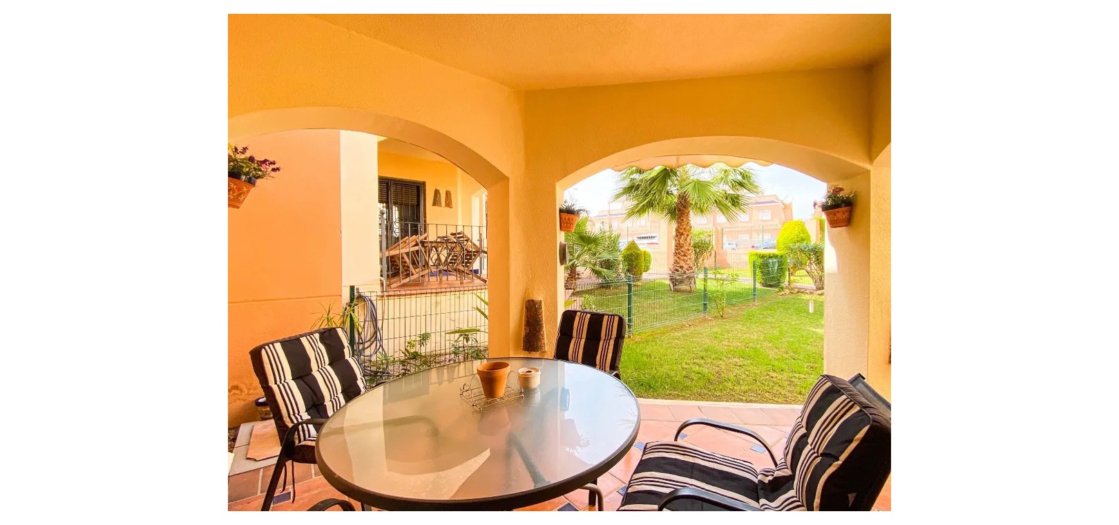Lounge/diner with hot and cold A/C, separate fully fitted kitchen with utility room, 1 x double bedroom with a newly fitted en-suite shower room & fitted wardrobes, 1 x twin bedroom with fitted wardrobes, 1 x newly fitted bathroom, covered front terrace off the lounge, private garden, lovely communal swimming pool, communal parking, secure gated community & much more.