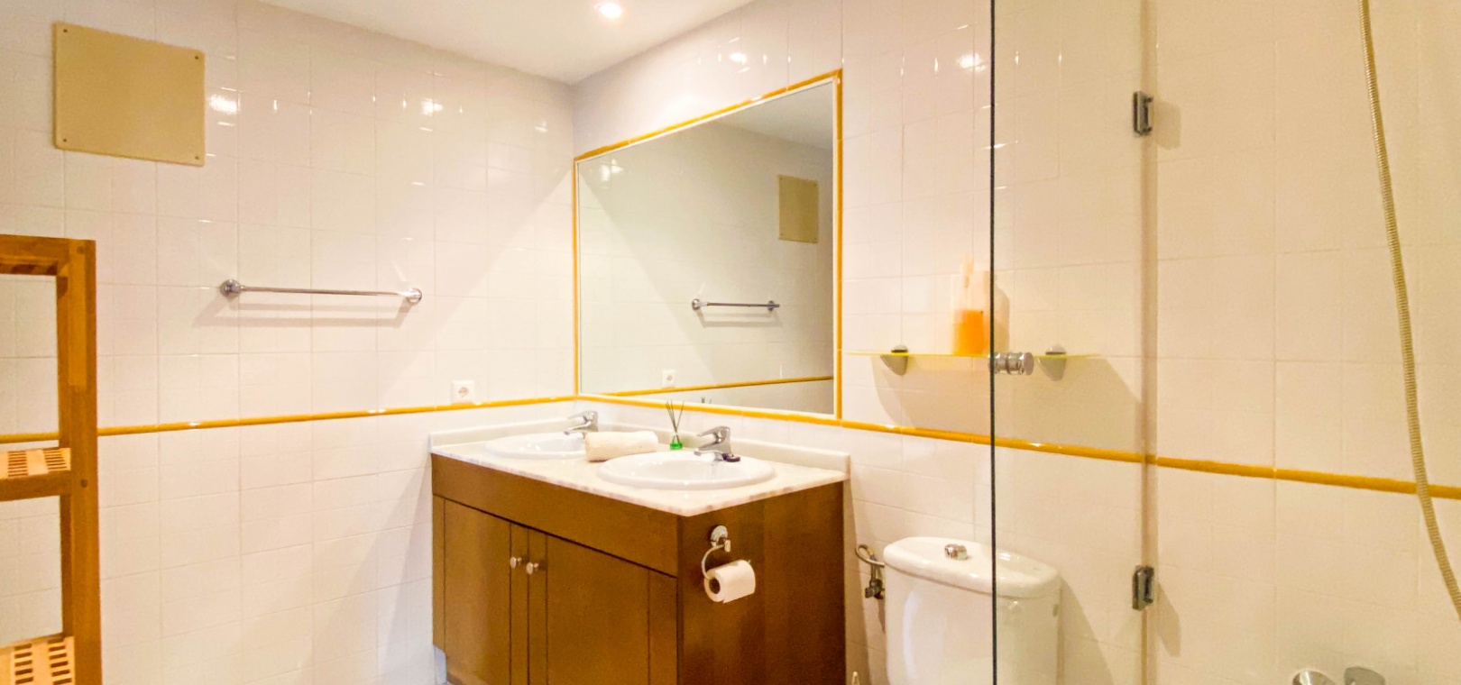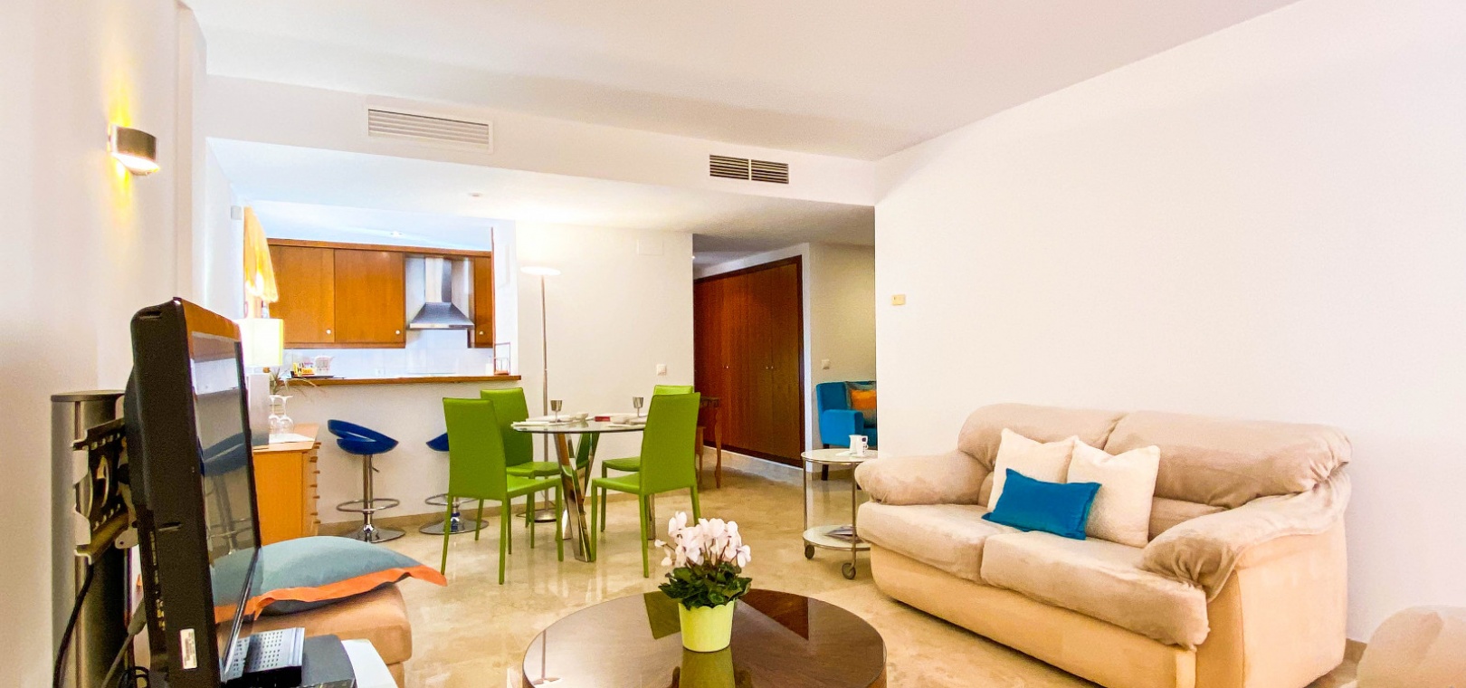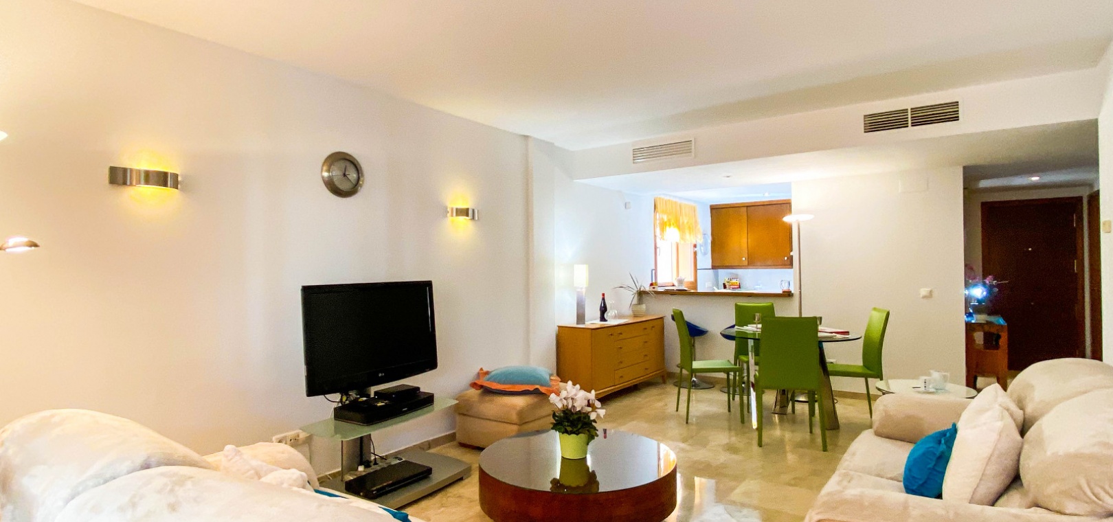 Lounge / diner, open plan fully fitted kitchen with a separate utility room, 2 x double bedrooms with fitted wardrobes, 1 of the bedrooms has an en suite shower room, 1 x guest shower room, large balcony off of the lounge, 2 x lovely communal swimming pools & tropical gardens. This property also has an under ground parking space.