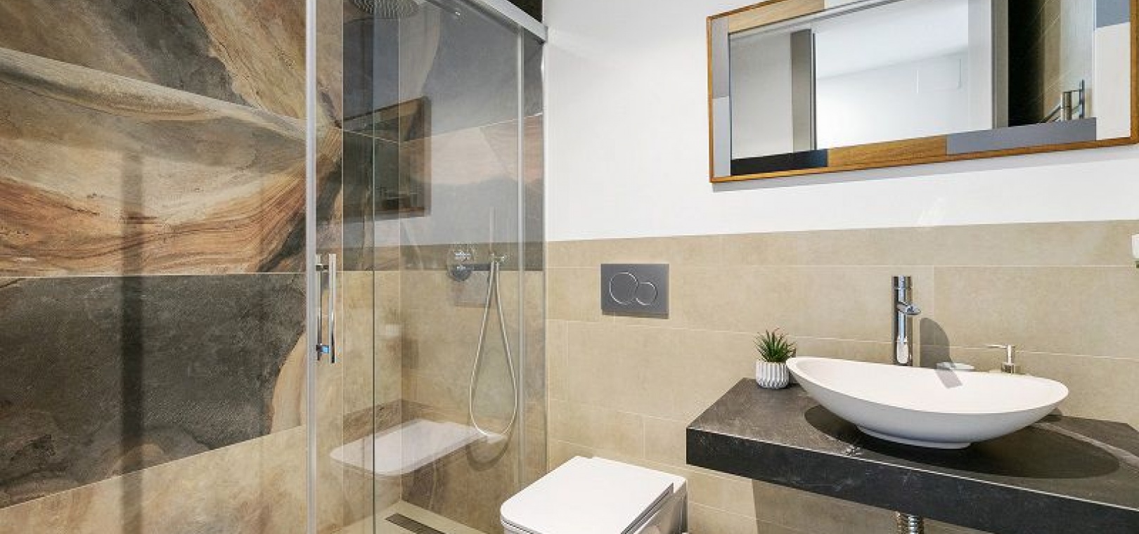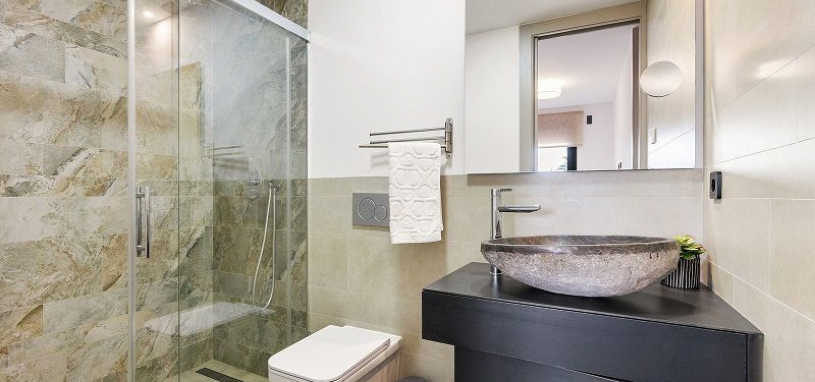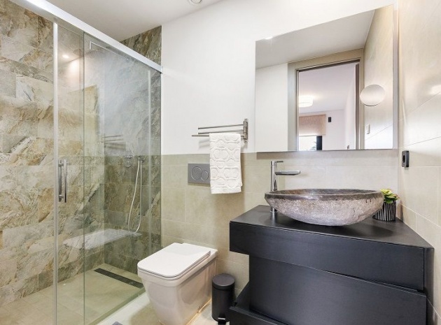 2 x large double bedrooms all with fitted wardrobes, ceiling fans & all with patio doors out on to the sun terrace. The main bedroom has an en-suite shower room.