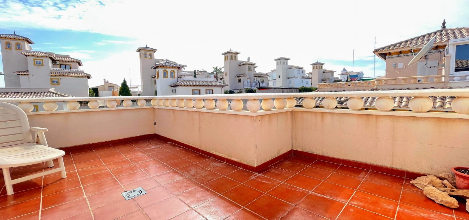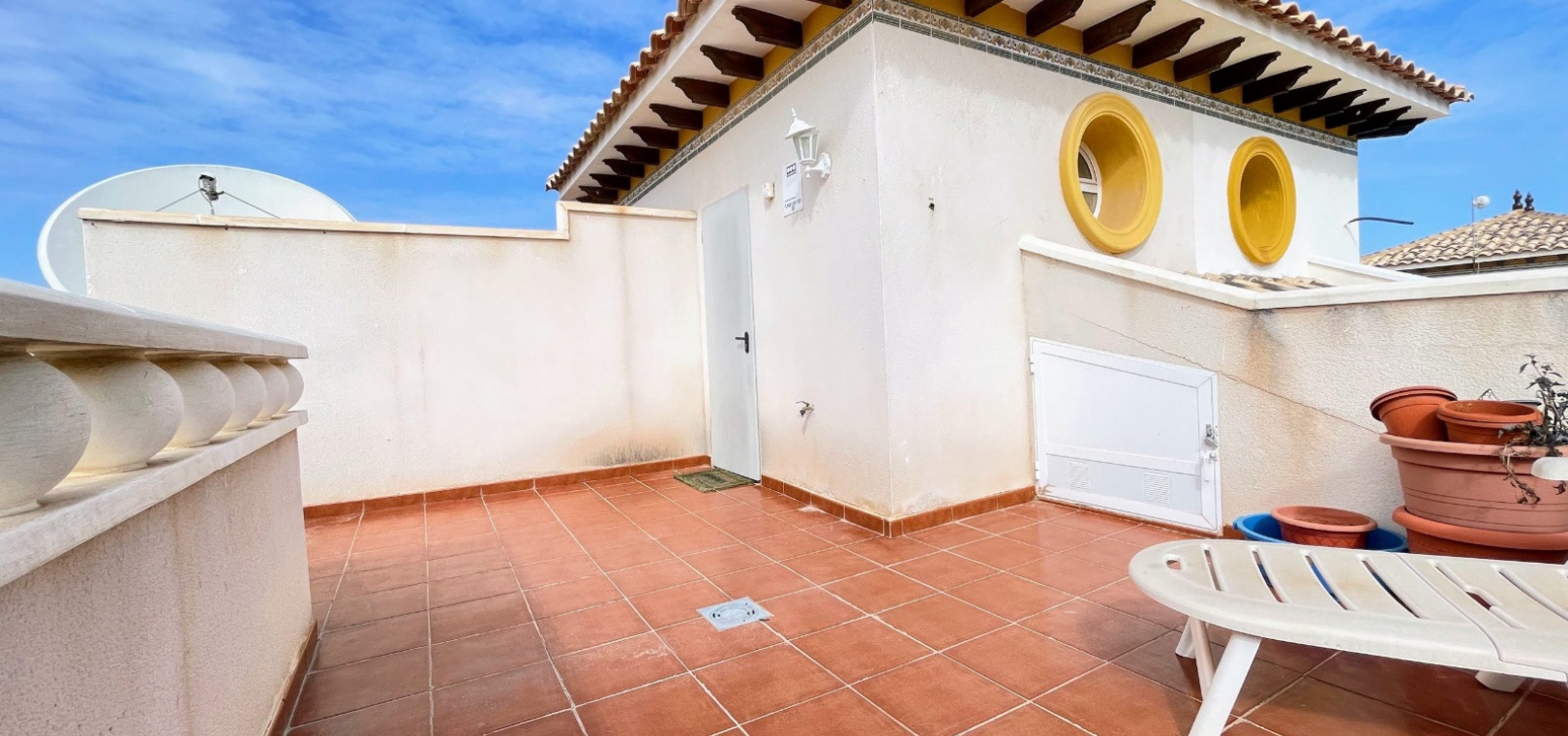 A South facing 3 bed 2 bath quad house with a private rooftop solarium located in Playa Golf, Lomas de Cabo Roig, Cabo Roig, Costa Blanca.