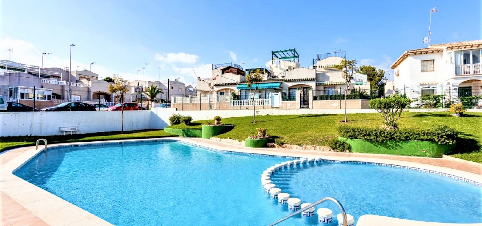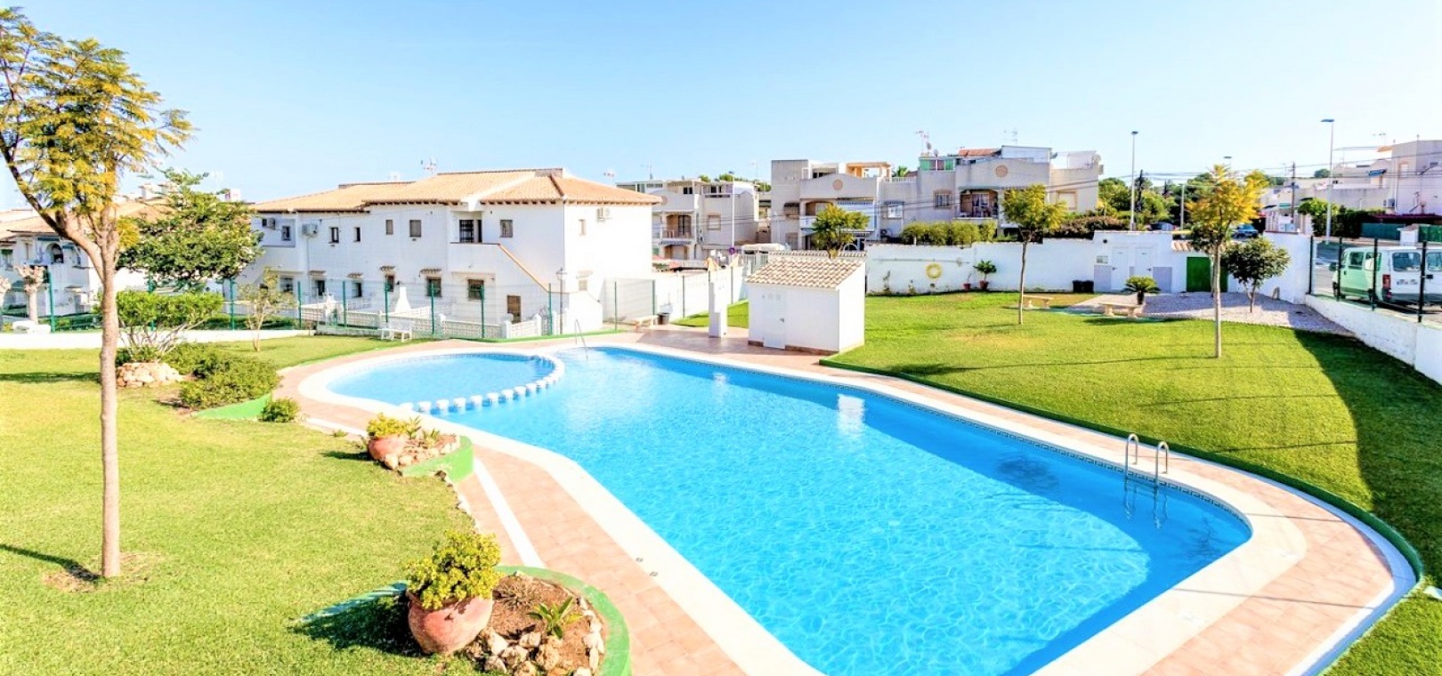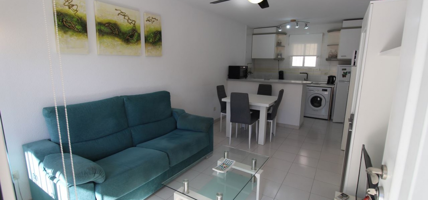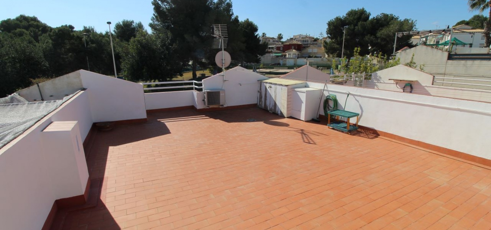 A South facing 2 bed 1 bath bungalow with a private rooftop solarium located in Lago Jardin II, Los Balcones, Costa Blanca.