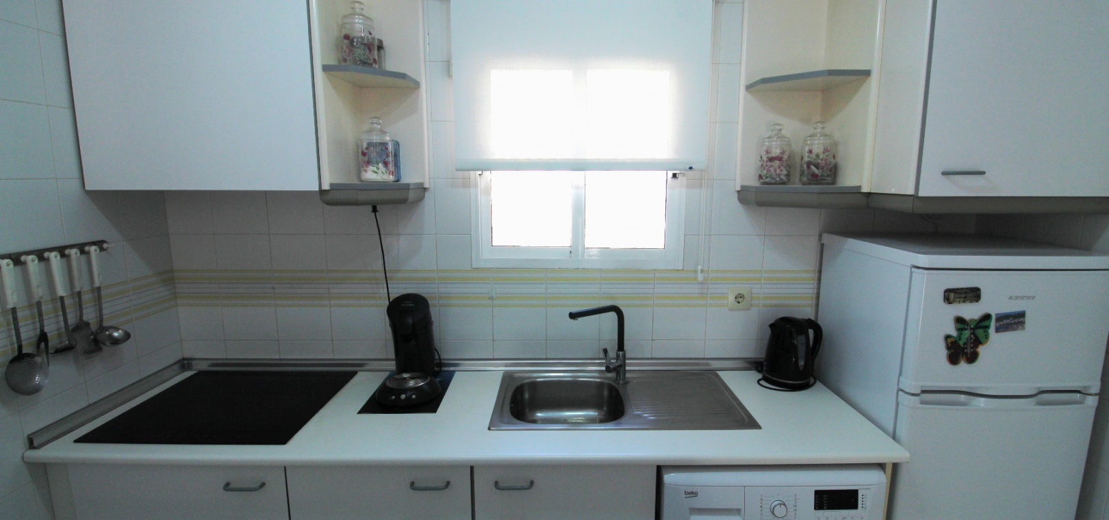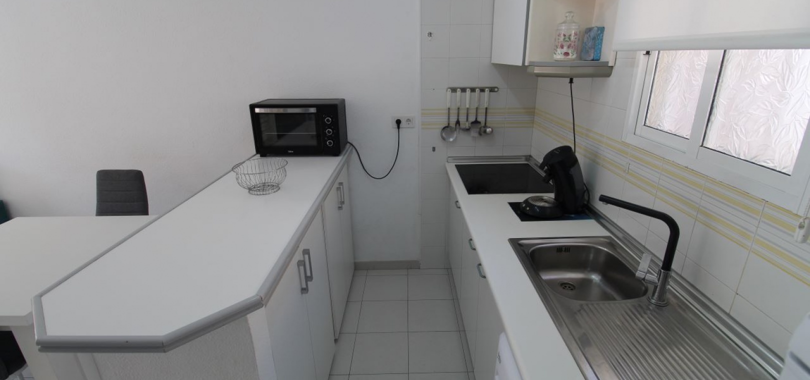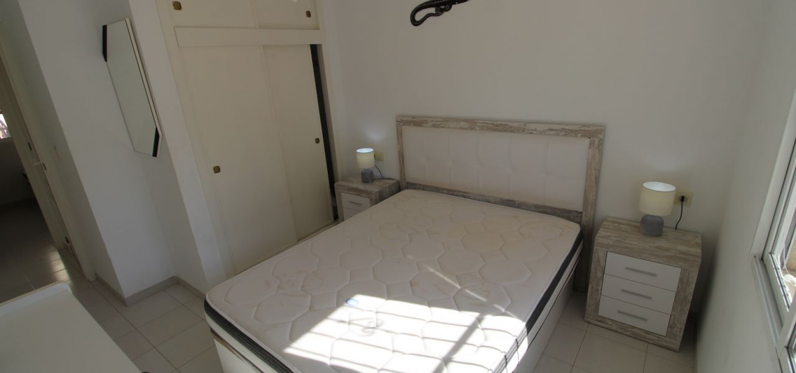 Lounge/diner with hot and cold A/C & a ceiling fan, open plan kitchen, 2 x double bedrooms with ceiling fans, the main bedroom has fitted wardrobes, 1 x newly fitted shower room, front terrace/garden, there is shared spiral staircase taking you to the large private rooftop solarium & much much more.