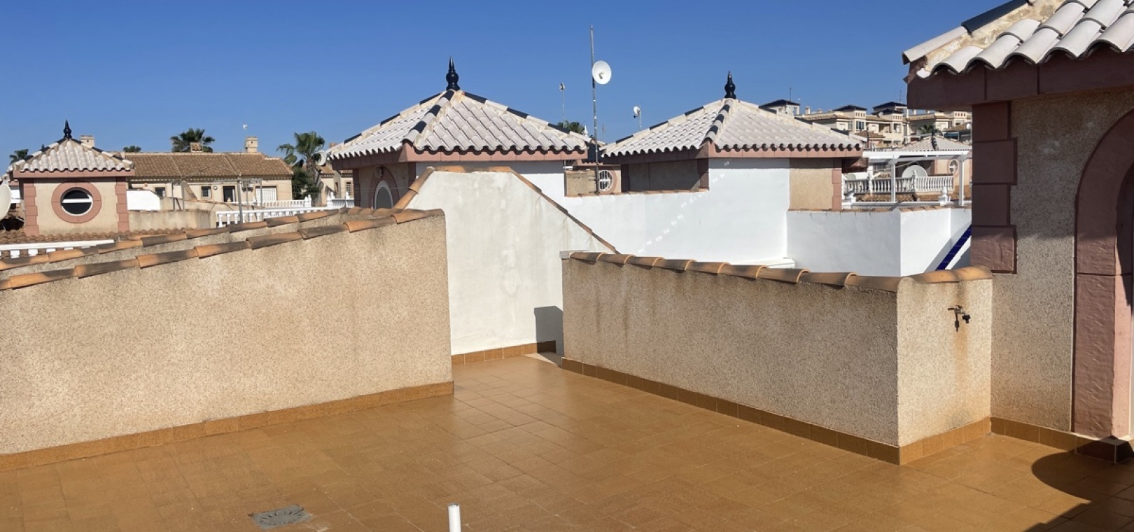 This property has ample outdoor spaces to choose from, encouraging you to embrace outdoor living. There is a good size low maintenance front garden with off road parking, a private internal courtyard located off the living and dining area with a set of external stairs leading to a very spacious roof top solarium. On the solarium there is a turret style room which can be used as a kitchen or a bar area, both being ideal to have easy access to cool drinks and snacks while sunbathing on those many warm sunny days. Alternatively this room could also be used as an additional storage room.