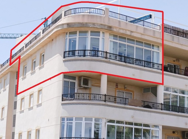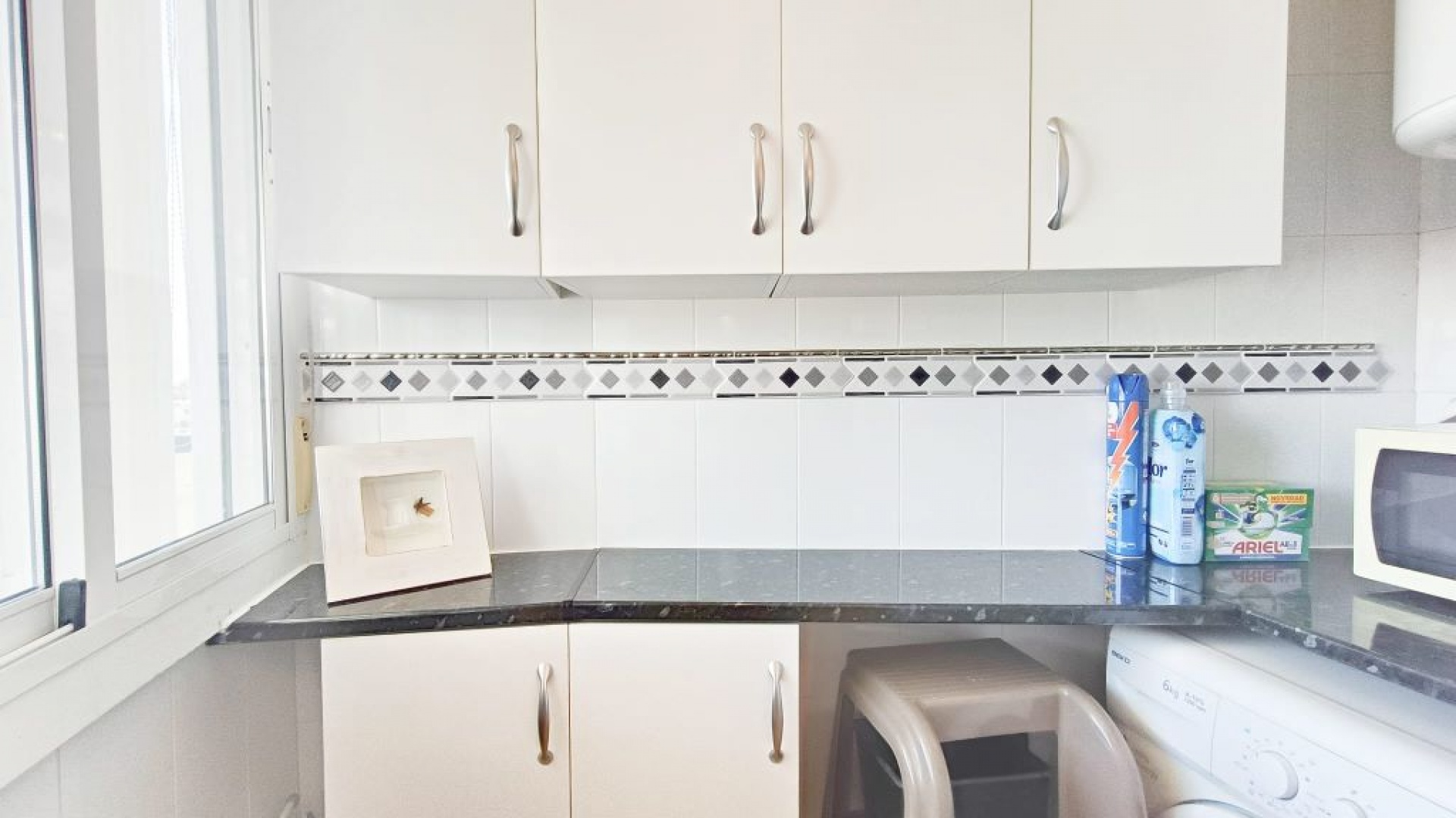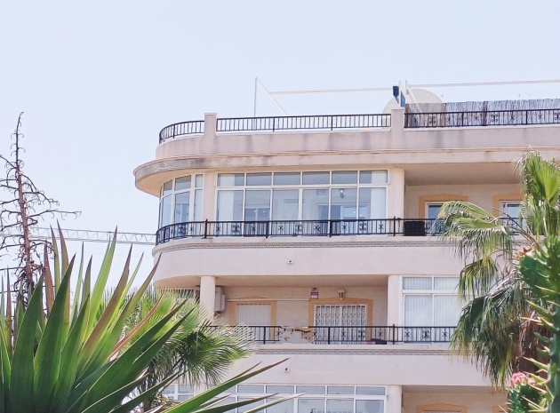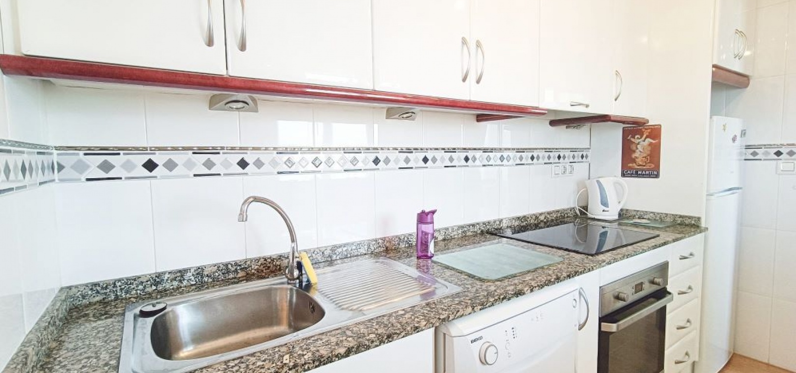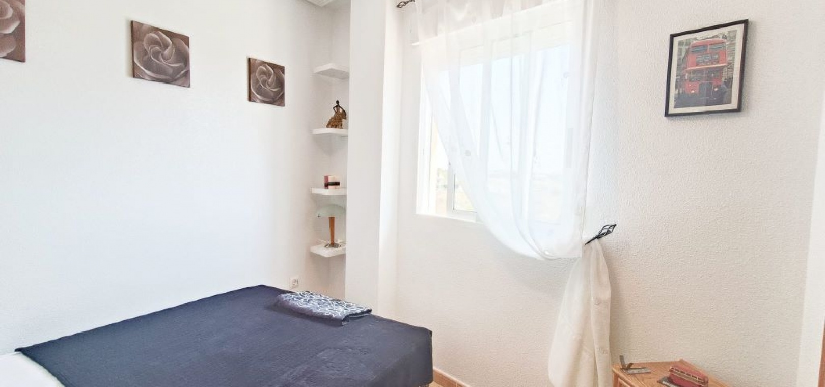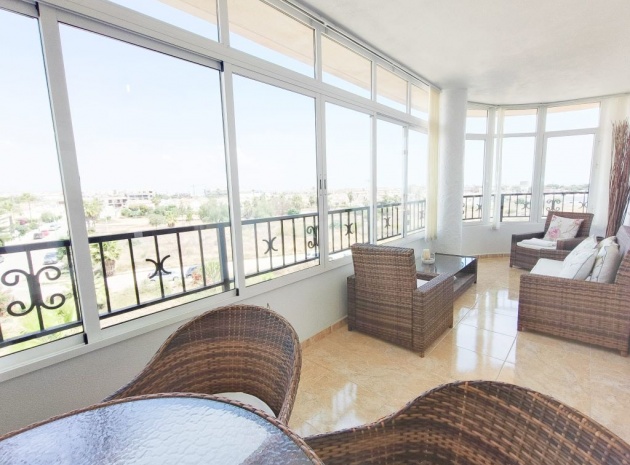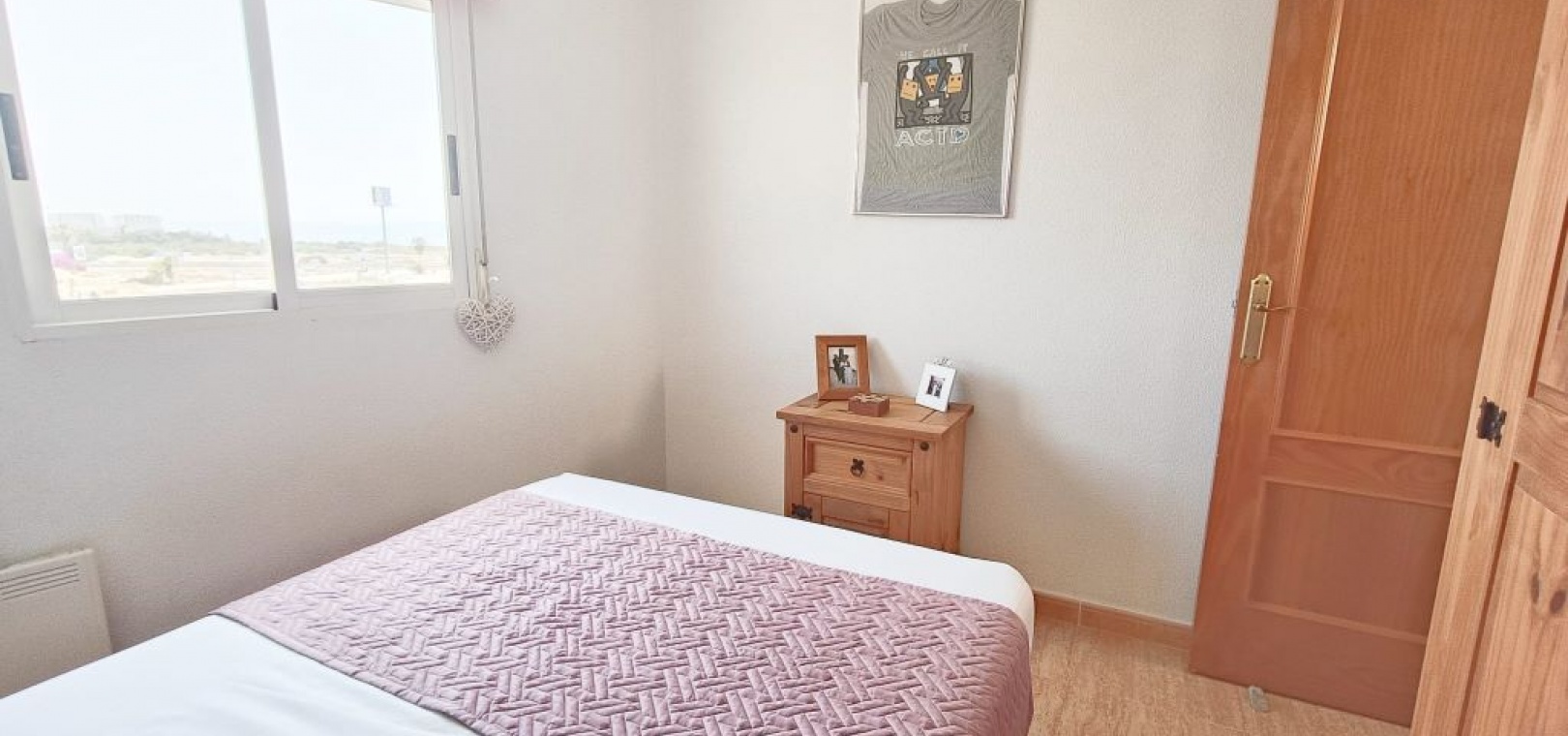 A 3 bed 1 bath top floor corner apartment with a large private rooftop solarium located in Res. La Mirada, Playa Flamenca, Costa Blanca.