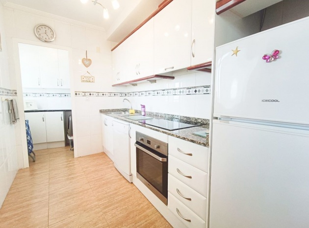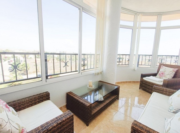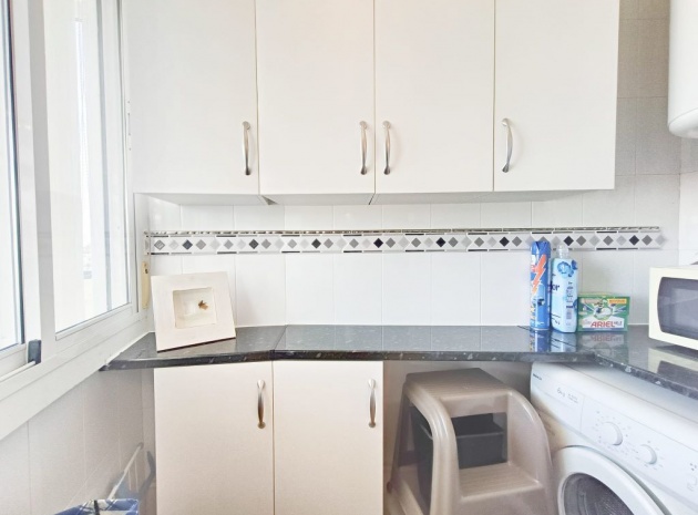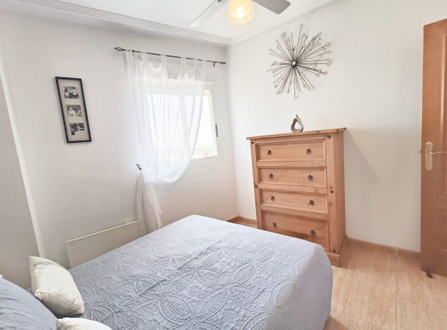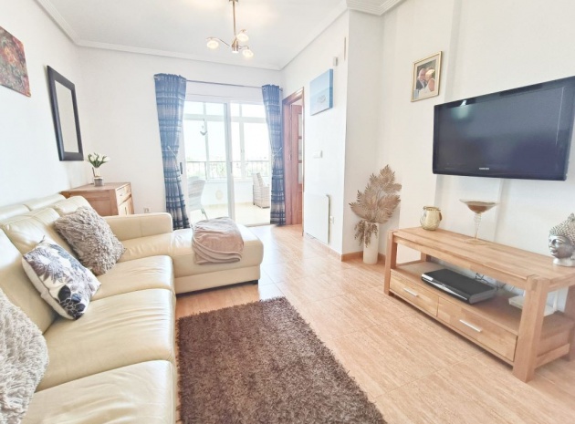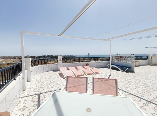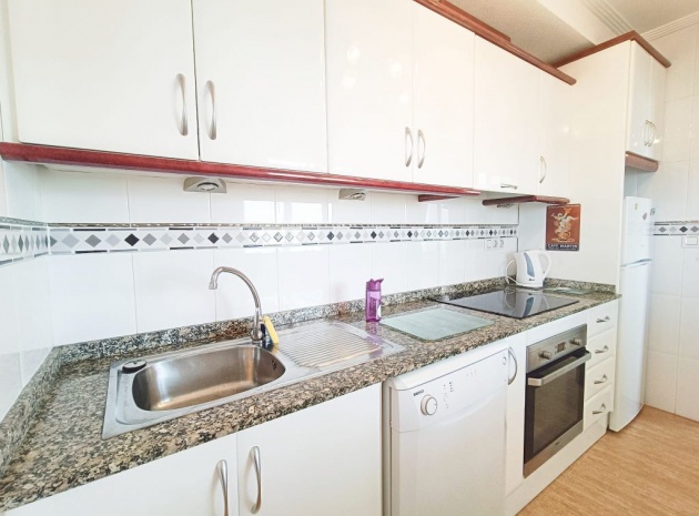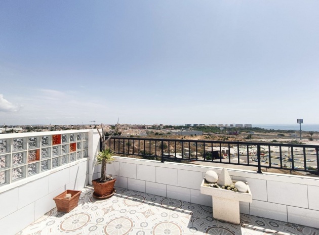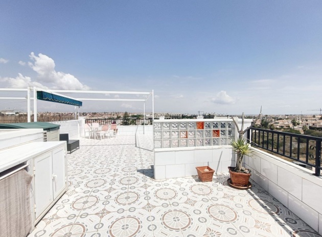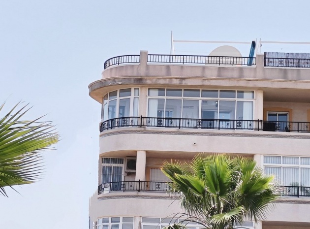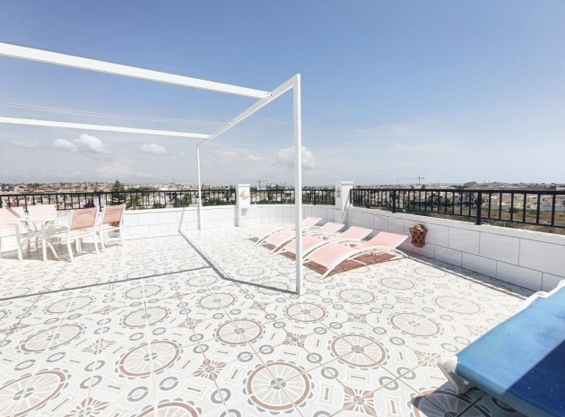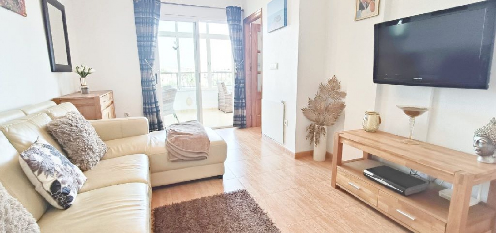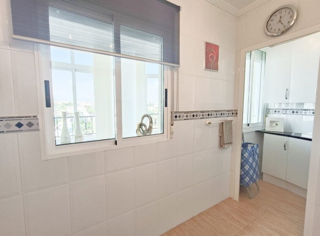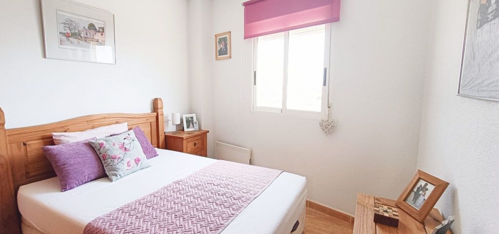 A 3 bed 1 bath top floor corner apartment with a large private rooftop solarium located in Res. La Mirada, Playa Flamenca, Costa Blanca.