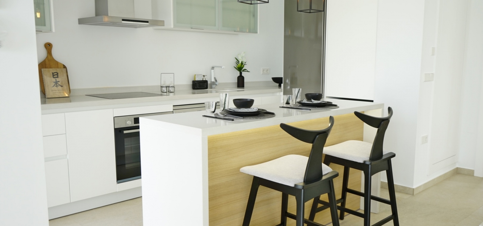Lounge / diner, open plan kitchen, 3 double bedrooms, 3 x bathrooms, opitional private roof solarium & a large garden with plenty of room for an optional private swimming pool.