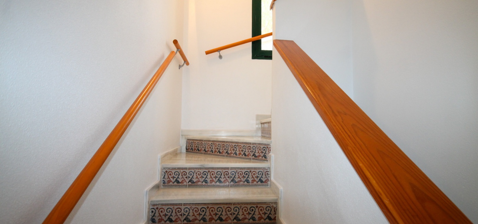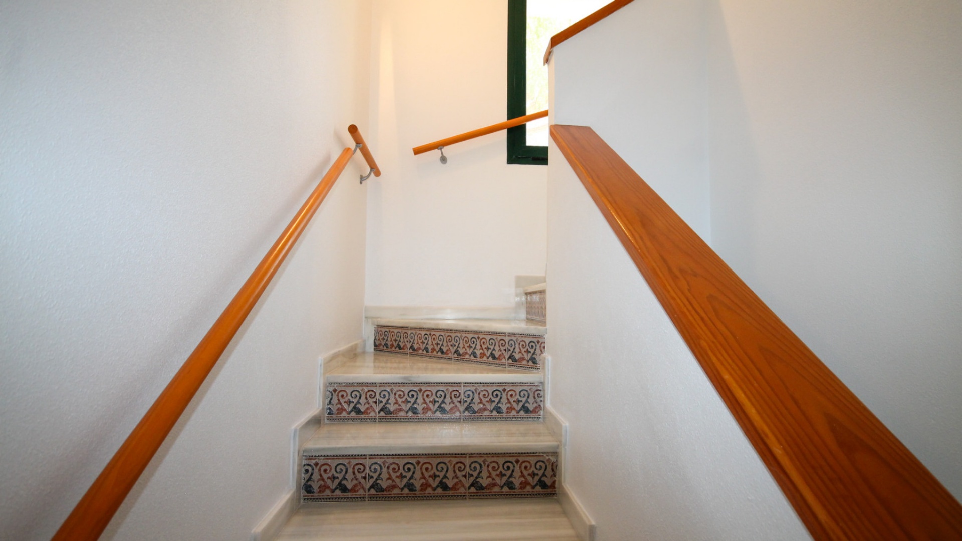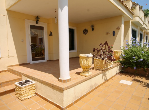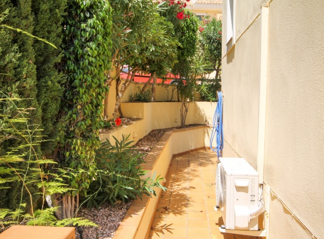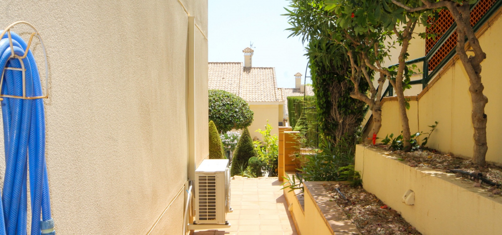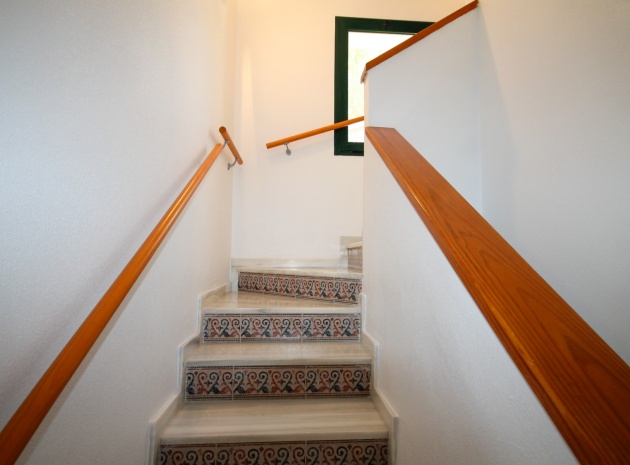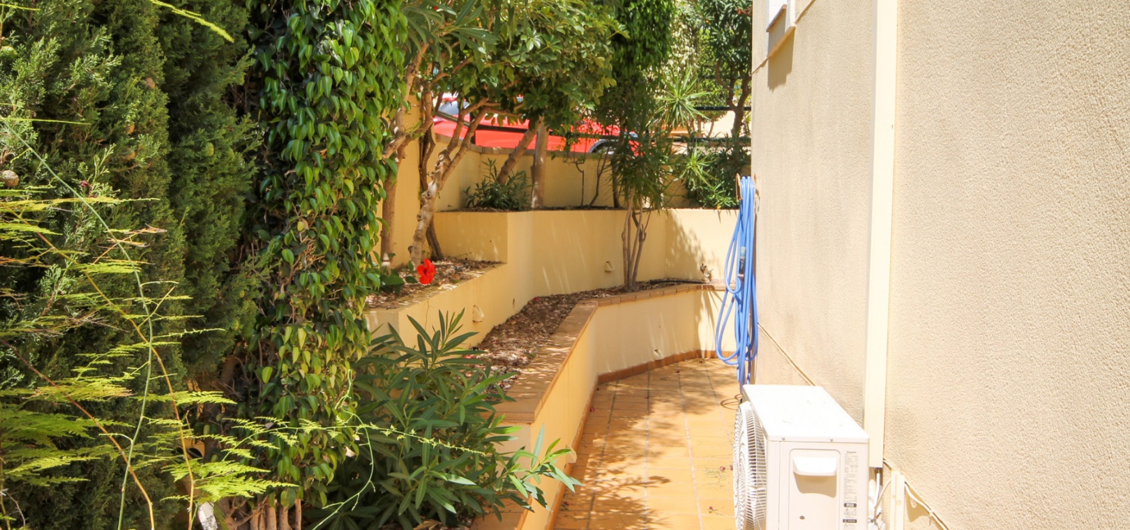 A 3 bed 3 bath semi detached house with views towards the communal gardens located in Lomas de Campoamor, Campoamor Golf Course, Costa Blanca.