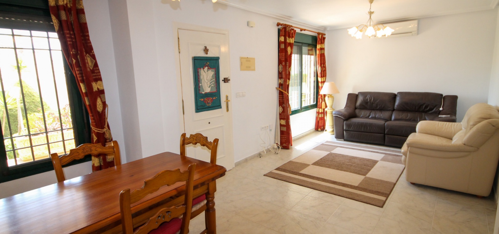 This property is located just a short walk from the La Fuente commercial centre where you will find numerous bars, shops, restaurant, supermarket & the local bus stop. The golden beaches of Campoamor & Cabo Roig are just a few minutes drive away as are 3 further golf courses. Alicante airport is 55 minutes drive away.