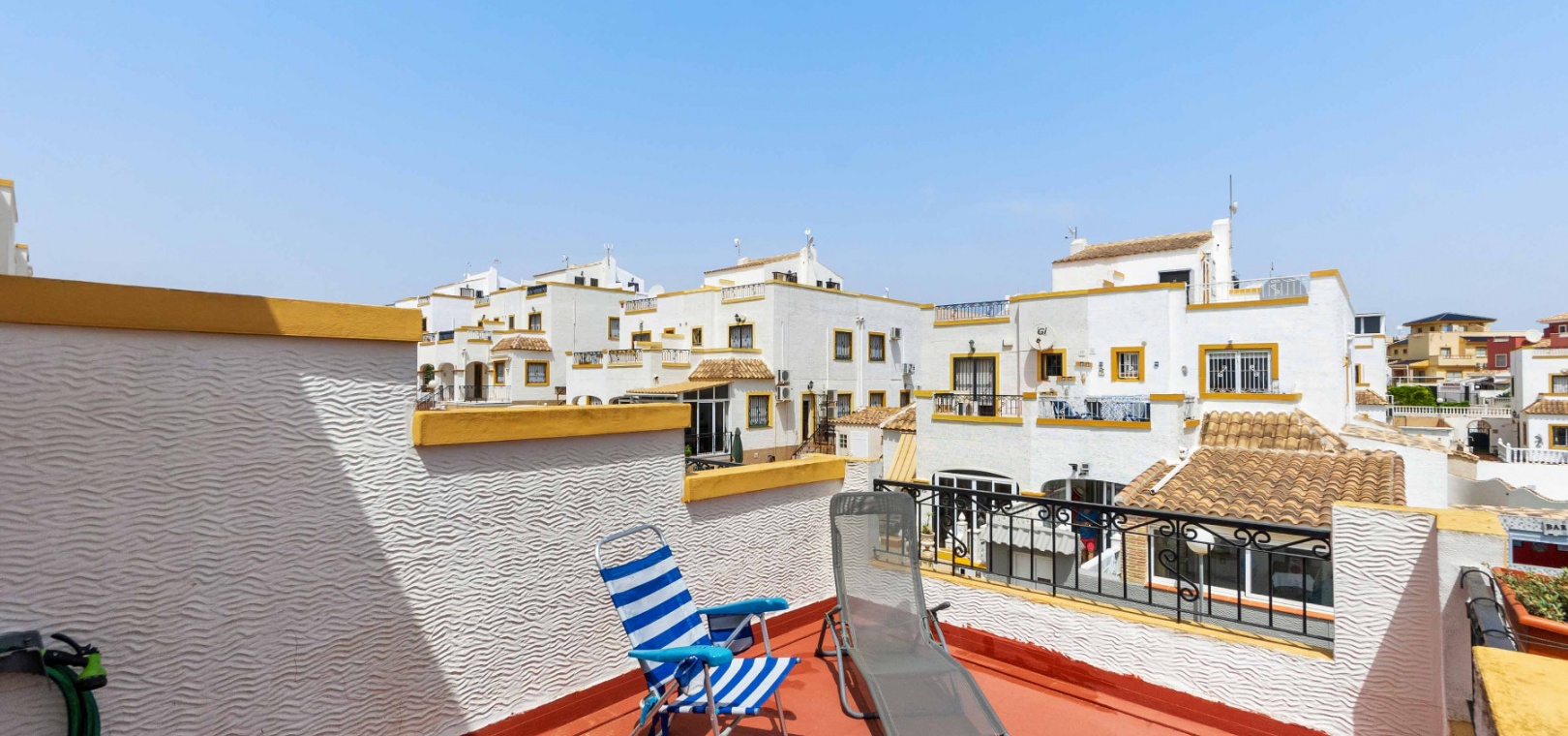 A 3 bed 2 bath quad house with a private rooftop solarium located in Dream Hills, Los Altos, Costa Blanca.