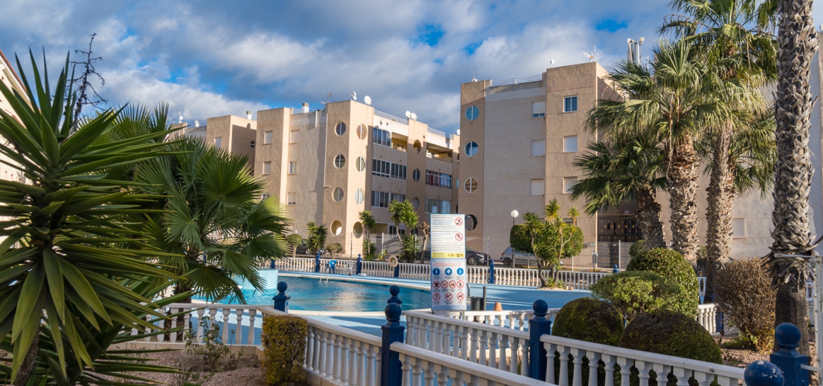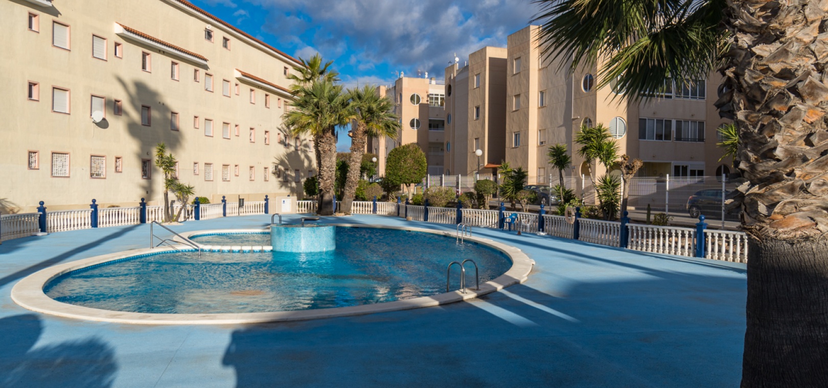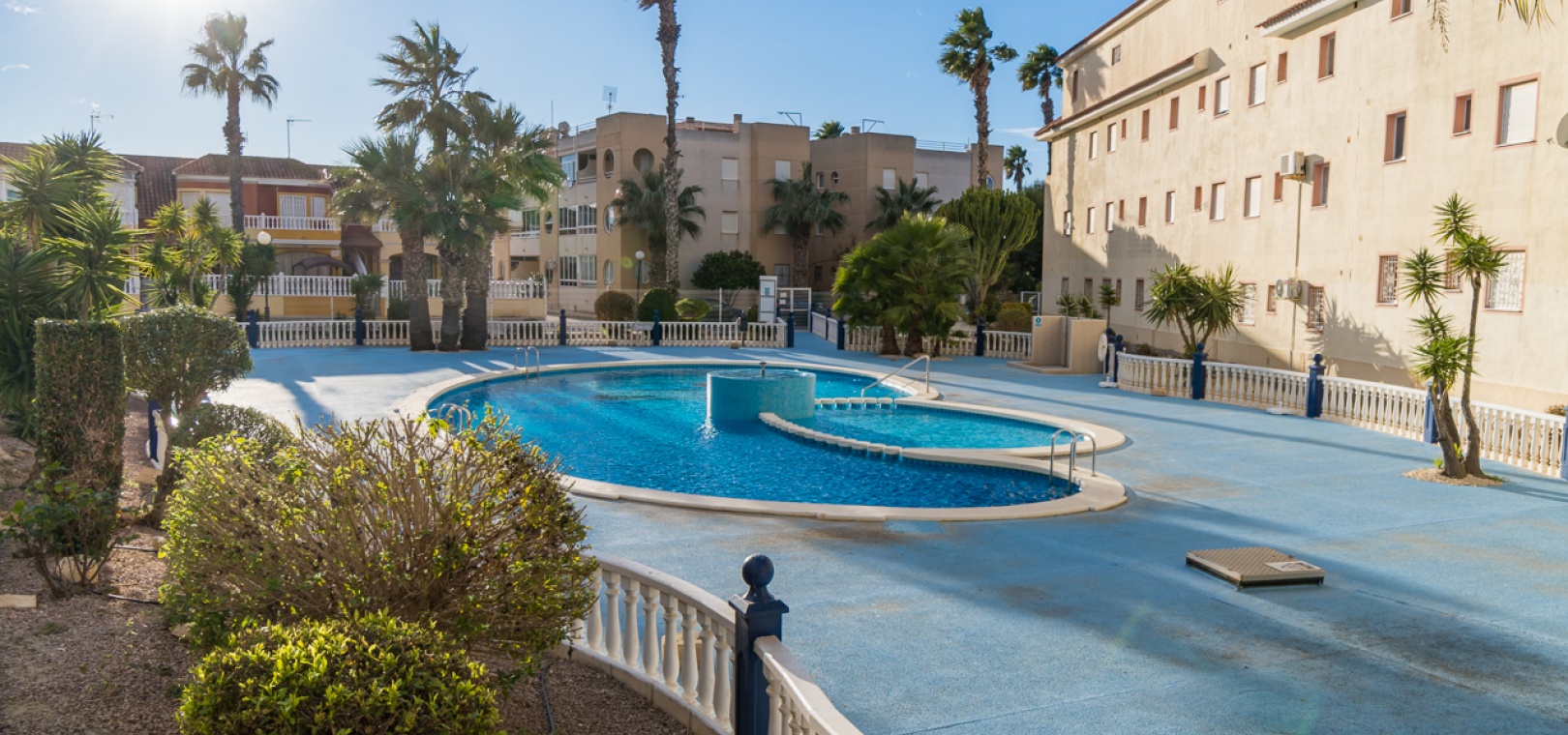 An East facing 2 bed 1 bath 1st floor apartment located in San Luis, Torrevieja, Costa Blanca.