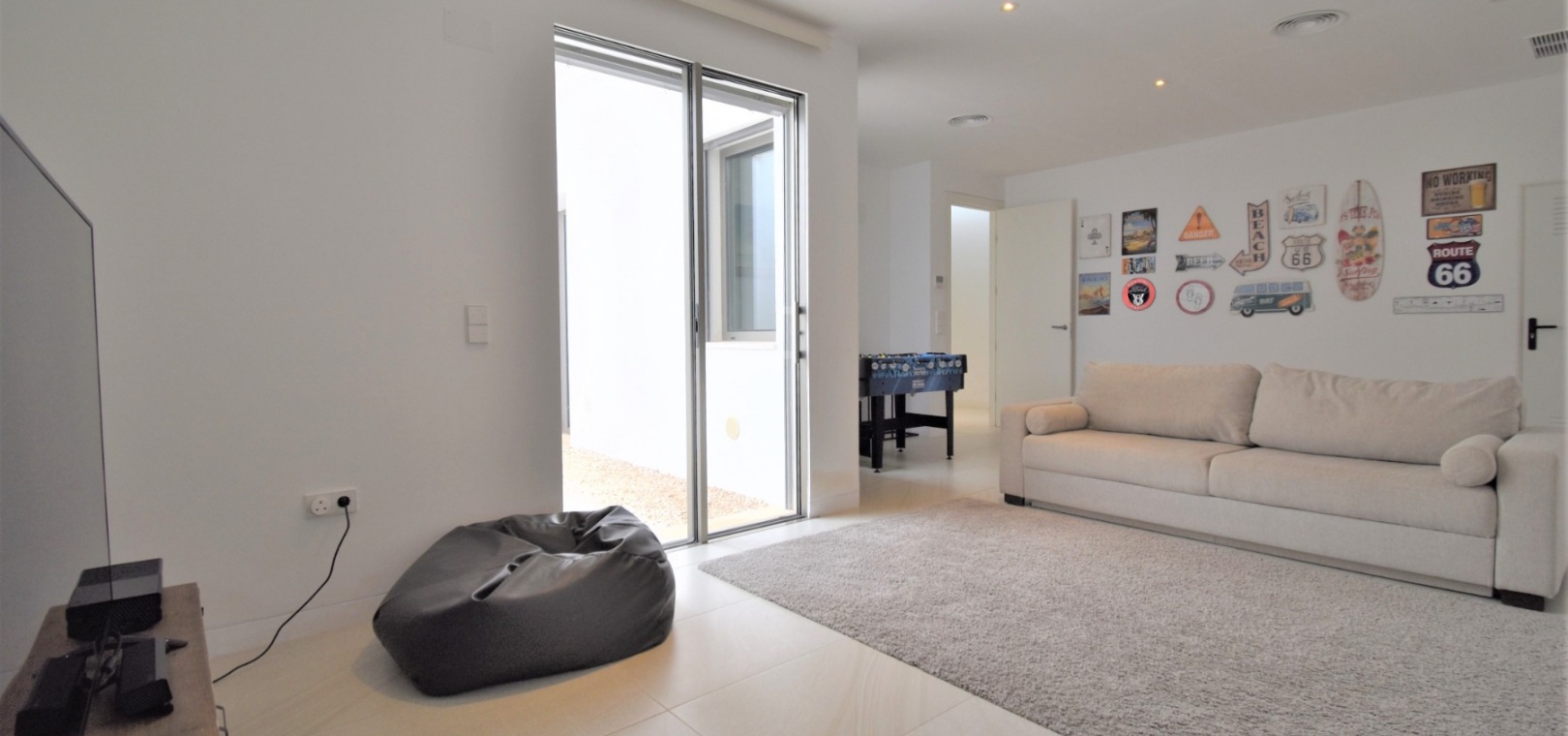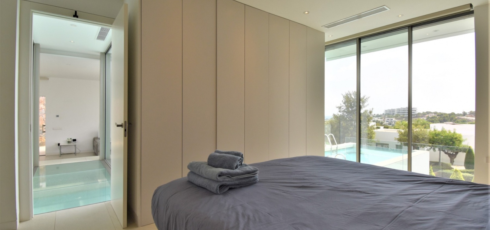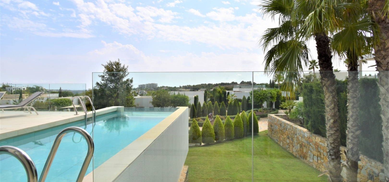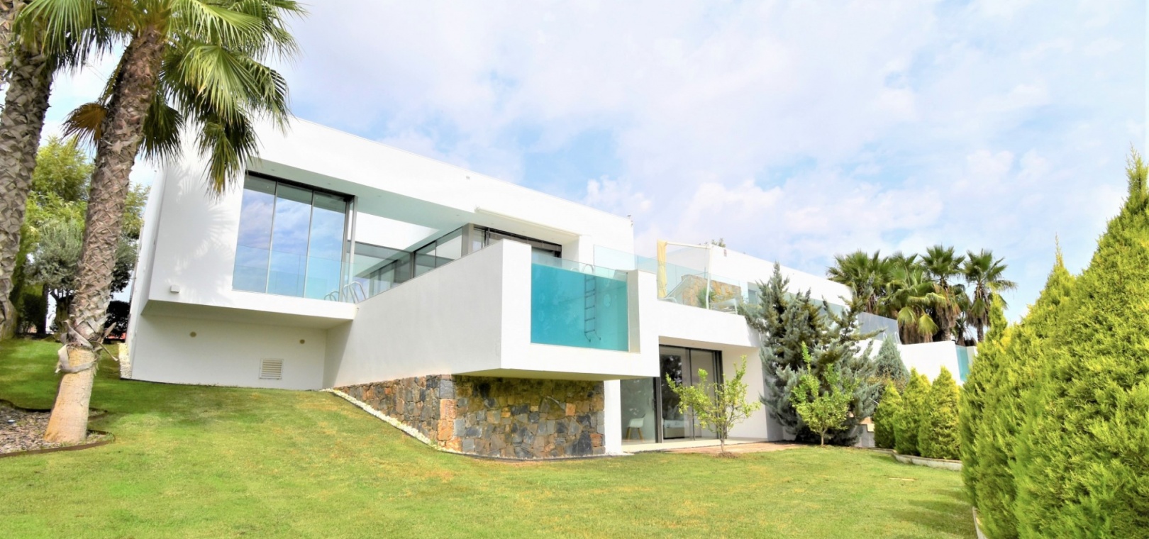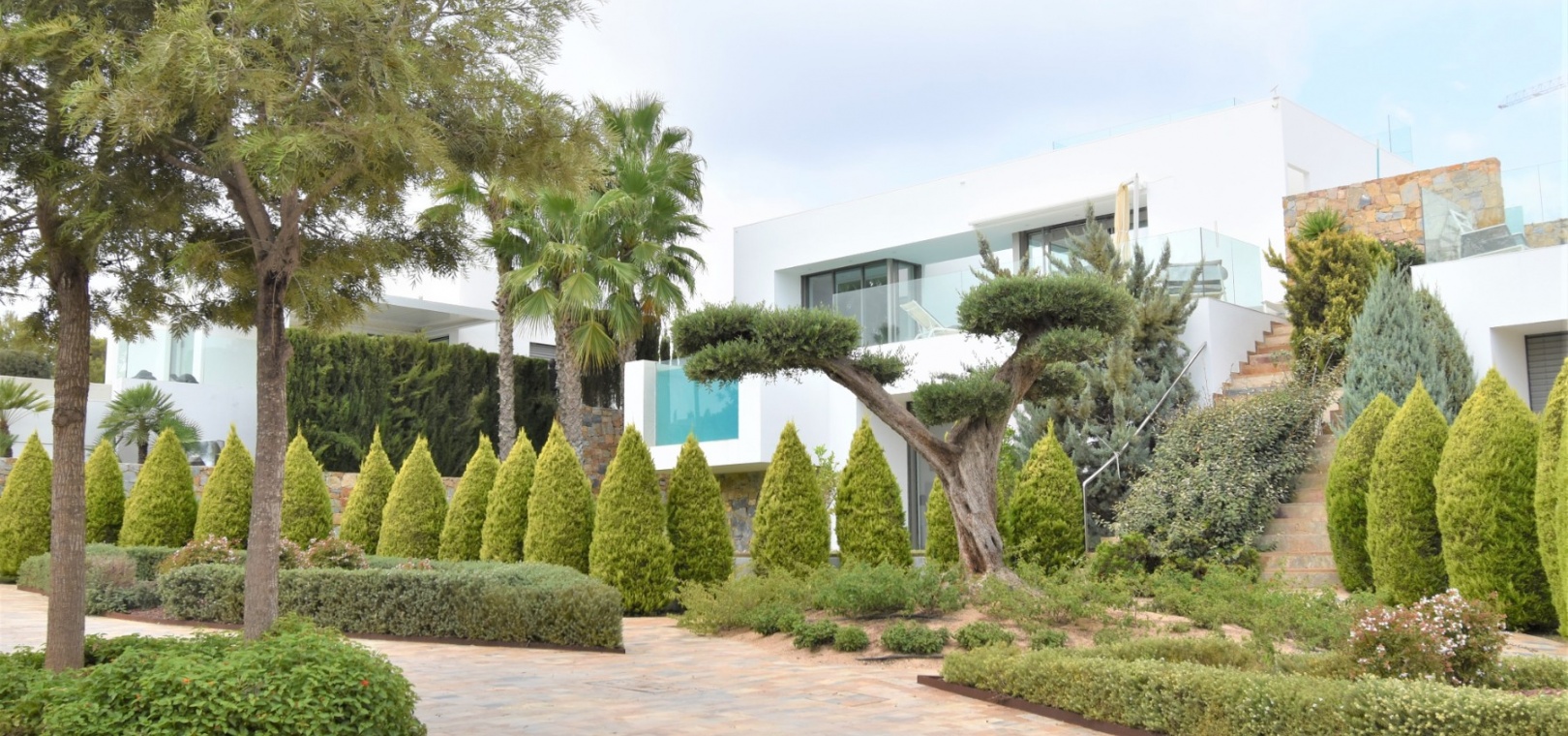This Absolutely Stunning, Three Bedroom Luxury Detached Villa in Las Colinas Golf Resort is located on a beautiful & prestigious 5* Resort, voted number 1 in the whole of Spain. On the golf course itself is the clubhouse, restaurants, bar and supermarket! Situated 5 minutes drive to the shops, plus other bars and restaurants in the nearby town of San Miguel de Salinas, and just 10 minutes drive or so to the beaches of the Orihuela Costa. This Mesmeric Property of some 248m2 Build Size comprises on the ground floor of an open plan fully fitted kitchen, with peninsula type island and door to the side garden/terrace; extremely spacious lounge/dining room with lots of glass, benefiting from the desirable view to the swimming pool, which goes directly through the centre of this property, with internal walkway bridge; from the living room is sliding door access out to the terrace, with ample space to dine and relax outdoors, overlooking the infinity swimming pool with feature glass wall and with views across the surrounding community, to the distant sea views; and one double bedroom, the master bedroom, with en suite (shower & Jacuzzi bath) + access out to the main terrace. Internal stairs then lead down to the under build, comprising of a large hallway; second living area or an ideal space for a games room; a further two double bedrooms, with direct access out to the beautiful, grassed, private gardens on this level; a family shower room; and a cloakroom. The front of the property has a truly desirable entrance way with desirable access and ample off road parking. Extras are to include fitted wardrobes, air conditioning throughout, irrigation system, CCTV, electric window shutters, solar panels and more... Simply Amazing!