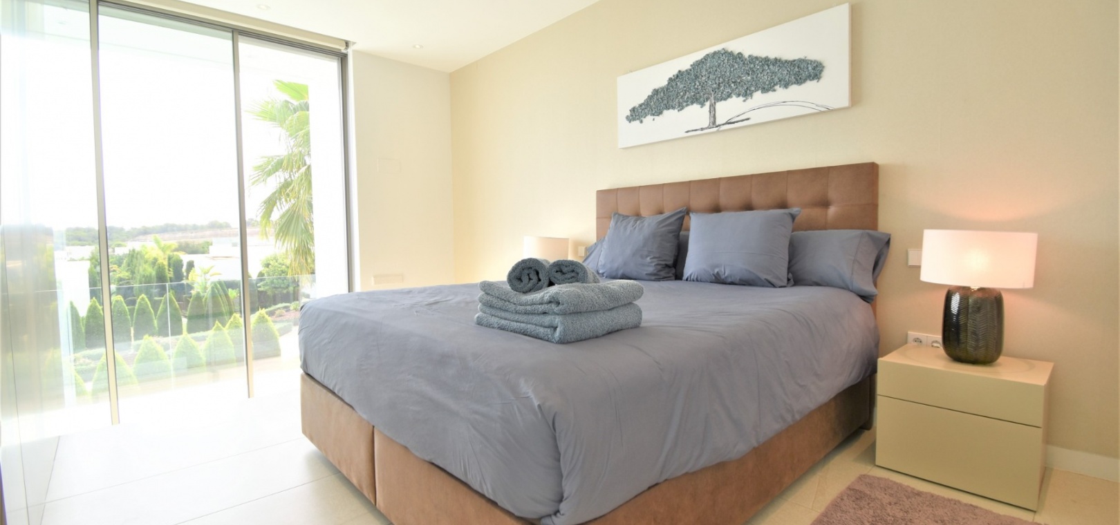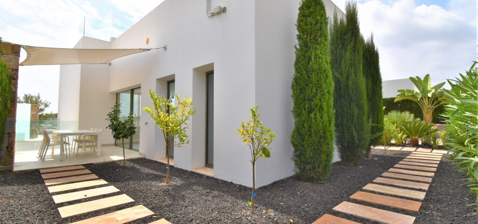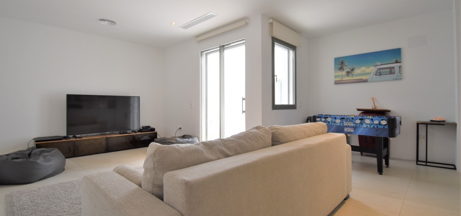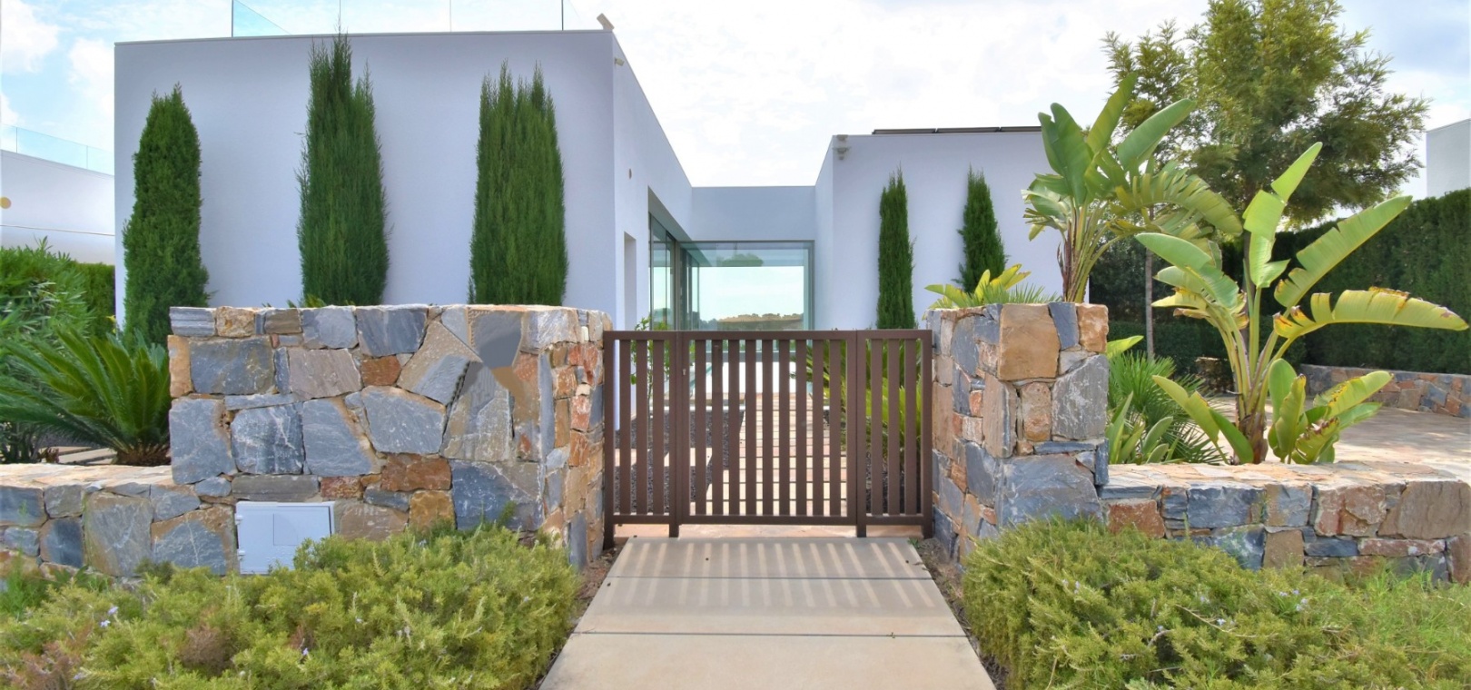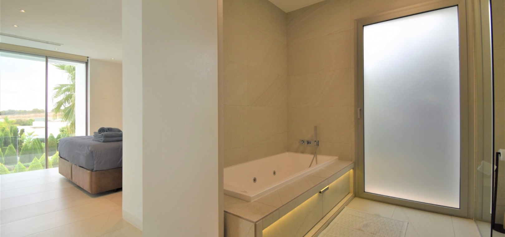 This Absolutely Stunning, Three Bedroom Luxury Detached Villa in Las Colinas Golf Resort is located on a beautiful & prestigious 5* Resort, voted number 1 in the whole of Spain. On the golf course itself is the clubhouse, restaurants, bar and supermarket! Situated 5 minutes drive to the shops, plus other bars and restaurants in the nearby town of San Miguel de Salinas, and just 10 minutes drive or so to the beaches of the Orihuela Costa. This Mesmeric Property of some 248m2 Build Size comprises on the ground floor of an open plan fully fitted kitchen, with peninsula type island and door to the side garden/terrace; extremely spacious lounge/dining room with lots of glass, benefiting from the desirable view to the swimming pool, which goes directly through the centre of this property, with internal walkway bridge; from the living room is sliding door access out to the terrace, with ample space to dine and relax outdoors, overlooking the infinity swimming pool with feature glass wall and with views across the surrounding community, to the distant sea views; and one double bedroom, the master bedroom, with en suite (shower & Jacuzzi bath) + access out to the main terrace. Internal stairs then lead down to the under build, comprising of a large hallway; second living area or an ideal space for a games room; a further two double bedrooms, with direct access out to the beautiful, grassed, private gardens on this level; a family shower room; and a cloakroom. The front of the property has a truly desirable entrance way with desirable access and ample off road parking. Extras are to include fitted wardrobes, air conditioning throughout, irrigation system, CCTV, electric window shutters, solar panels and more... Simply Amazing!