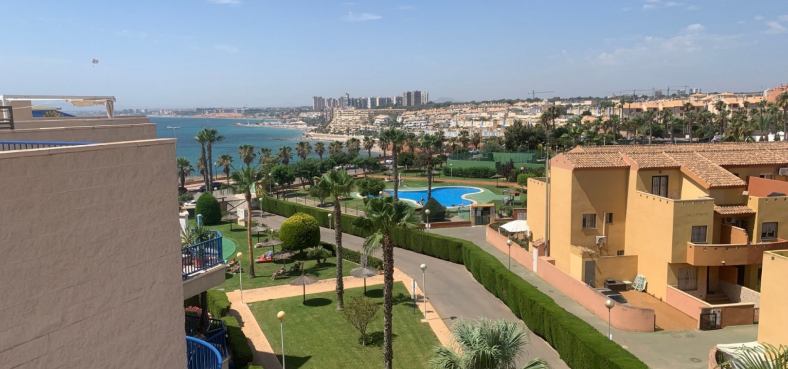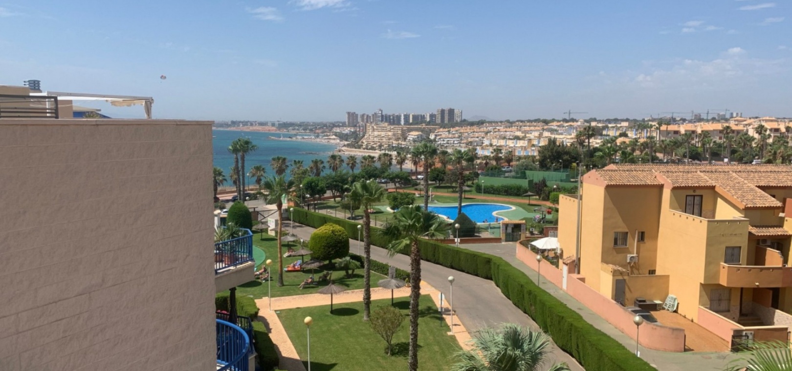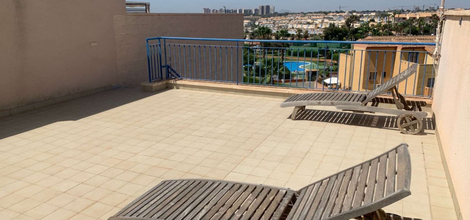 A South facing 2 bed 2 bath top floor penthouse apartment with a private solarium located in Res. Punta Glea, Cabo Roig, Costa Blanca South.
