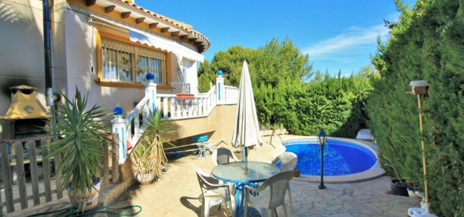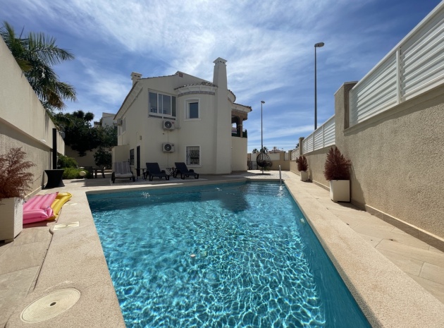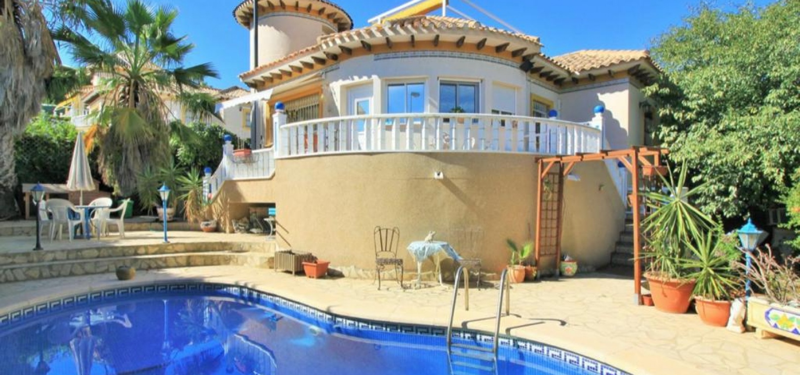 A 4 bed 3 bath detached villa with a private swimming pool on a large 480m2 plot located in Pinada Golf I, Villamartin, Costa Blanca.