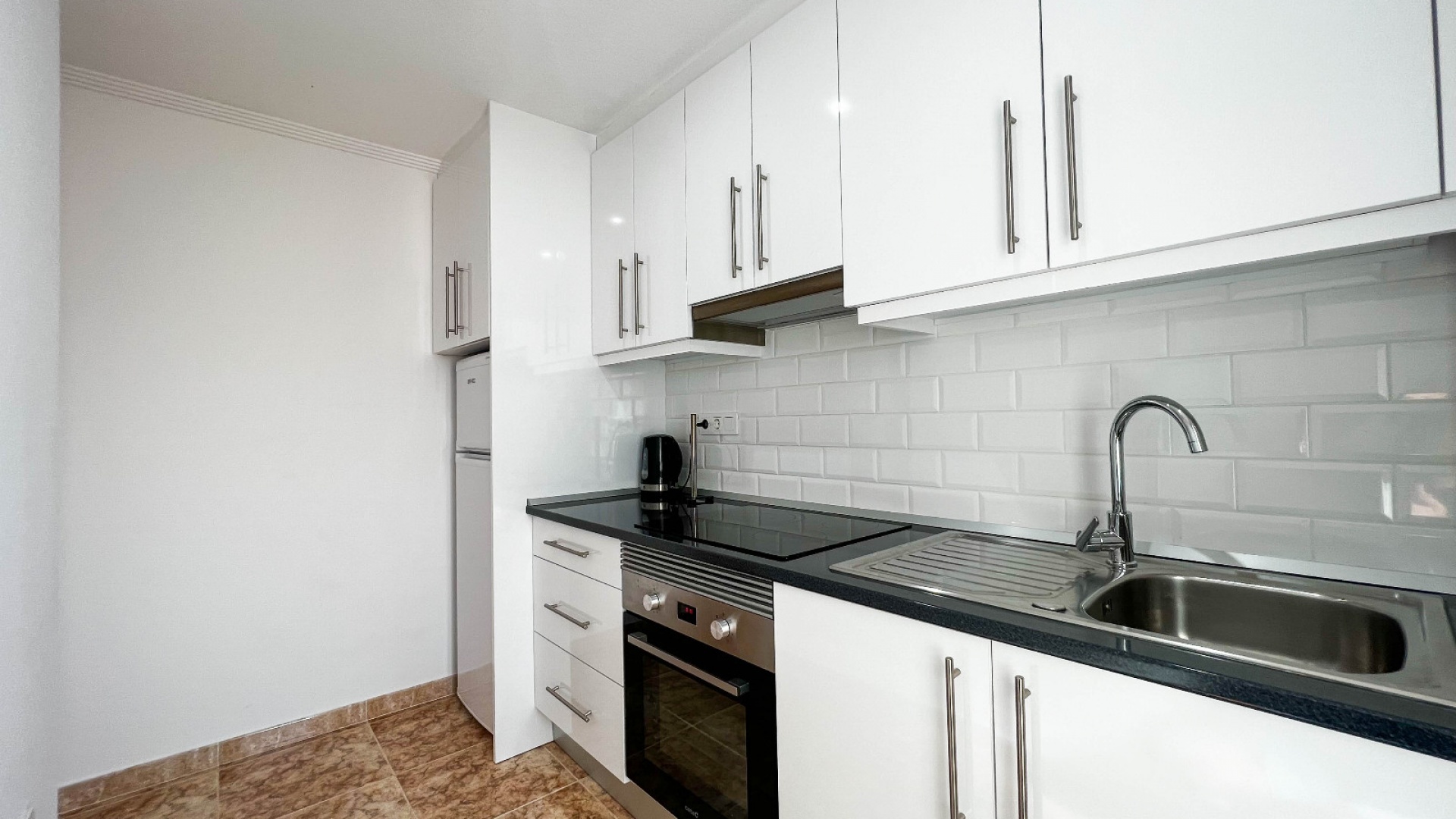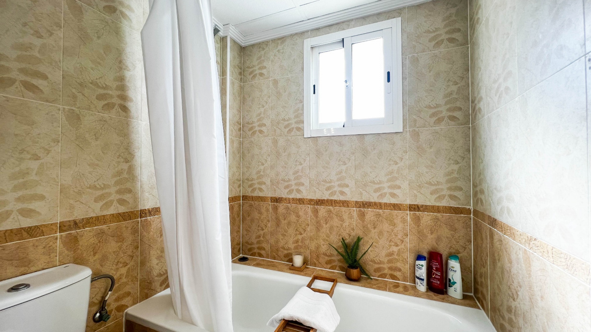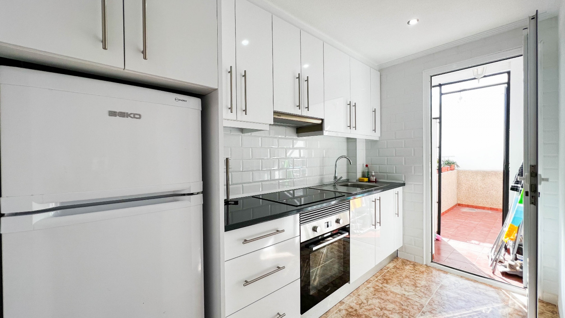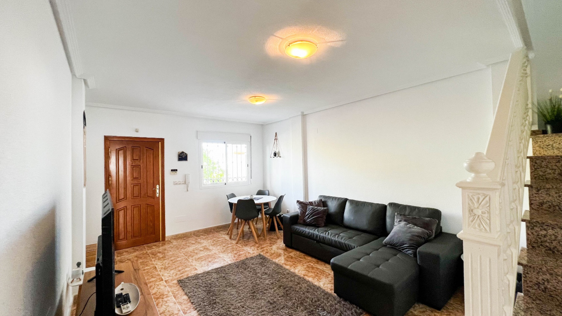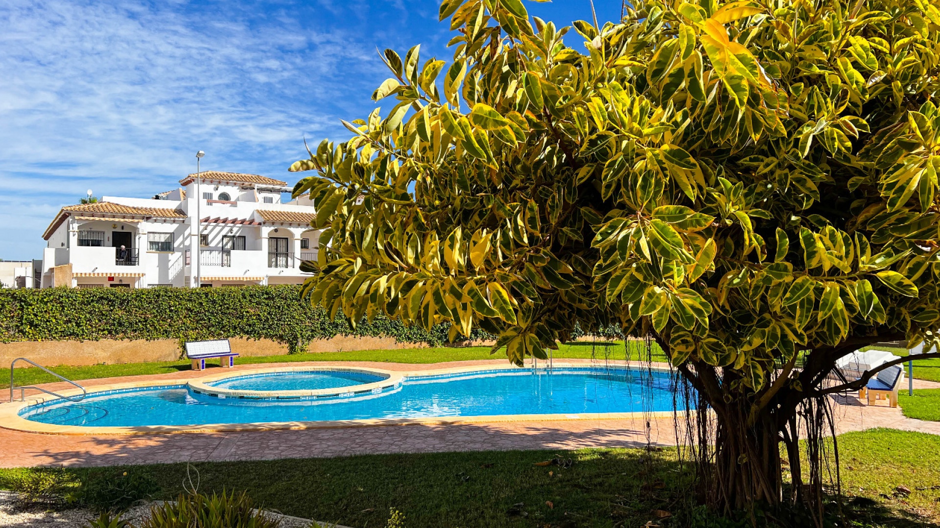 A 3 bed 1.5 bath townhouse with a private rooftop solarium & views to the communal swimming pool located in La Cinuelica, Punta Prima, Costa Blanca.