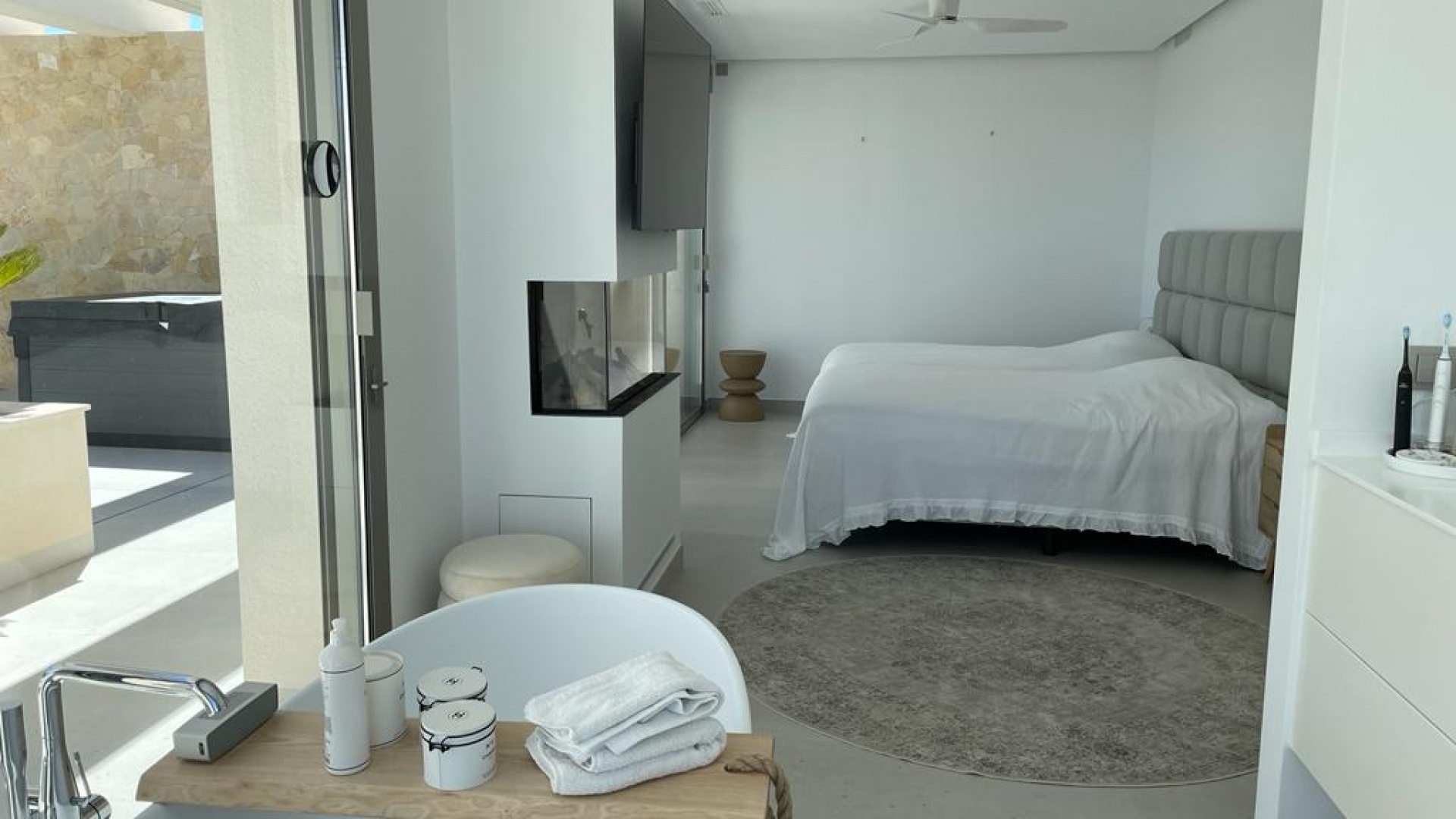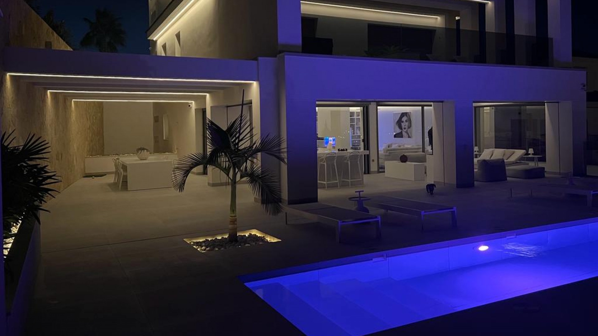 "We present this beautiful modern style luxury villa fully finished and furnished. It is equipped with the latest technology and all materials have been carefully chosen. On the ground floor there is the kitchen, the living room and dining room, the laundry room and also the covered terrace. On the first floor we have 3 bedrooms and 3 bathrooms. The garage level is of course the garage with space for 8 cars, an entertainment area and the fourth bedroom and a bathroom. All levels of the house have underfloor heating and the house also has air conditioning. The elevator takes you from the garage to the upper level of the house. This magnificent villa is also equipped with solar panels.The spacious and bright rooms are designed with exquisite taste and attention to detail. Its intelligent distribution offers comfort and functionality in every corner.The main living room is a cozy and sophisticated space, ideal for entertaining family and friends. The kitchen, fully equipped with state-of-the-art appliances, is perfect for food lovers, and has a central island that adds a touch of elegance and practicality to the environment.The house has an impressive terrace, ideal for enjoying relaxing moments outdoors, and a beautiful garden that adds a touch of freshness and serenity to the surroundings. In addition, it has a private pool, perfect for cooling off on hot summer days.Located in an exclusive area of Ciudad Quesada, this property offers an excellent connection with all the necessary services, such as supermarkets, restaurants and shops. In addition, it has easy access to the main communication routes, which makes it easier to travel to other areas of the city.Ciudad Quesada.Ciudad Quesada is a little gem located near the wonderful cities such as Alicante, Murcia, Cartagena and more. It is only 30 minutes to Alicante (ALC) and Murcia (RMU) airports which have direct routes to Norway.There is a highway just outside the city that makes it easy to get around and explore Spain. Torrevieja is just a 10-minute drive to restaurants, nightlife, bars and Habaneras and a large shopping mall with several trendy shops. You have several shops around in the area, for example, La Zenia Boulevard has an even greater choice of shops just 20 minutes from Quesada.In Quesada, you also have restaurants, shops, hiking areas, parks, waterpark, golf course, mini-golf, bowling, Norwegian school and much more. You don't have to go far to experience all this wonderful city has to offer.The Norwegian School in Rojales is well known and has a fantastic reputation. Her it is over 100 students. The school is located in the center of Quesada with satisfied students.Golf courses in Quesada are called La Marquesa Golf. This is a fantastic golf course for beginners and experts.There are training courses if you want to learn. Around golf courses, there are several restaurants and bars where you can enjoy the surroundings.Ciudad Quesada is a quiet and pleasant area of the Costa Blanca with lots to discover. It is only 7-10 minutes drive to some of the best beaches in Europe. They have been awarded a blue flag which means that it is some of the cleanest, safe, quality beaches in Spain. Guardamar del Segura is one of the most popular beaches in the area and is 9 kilometers long. There is also a bike path down to the beach.There are several markets in the area as it is 5 minutes by car. Here you can buy fresh groceries, souvenirs and much more. There is a marked for every day of the week less than 15 minutes from Quesada.This is the perfect place whether you are looking for a permanent home, or just a vacation home for you and you're loved once.There are over 300 sunny days a year, and the average temperature is 20 degrees. The two big salt lakes give a cleansing effect on the air. In 2019, Spain was named the world's healthiest country to live in, this is noticed when you come down. The climate has a positive effect on the body and mind!Welcome home.