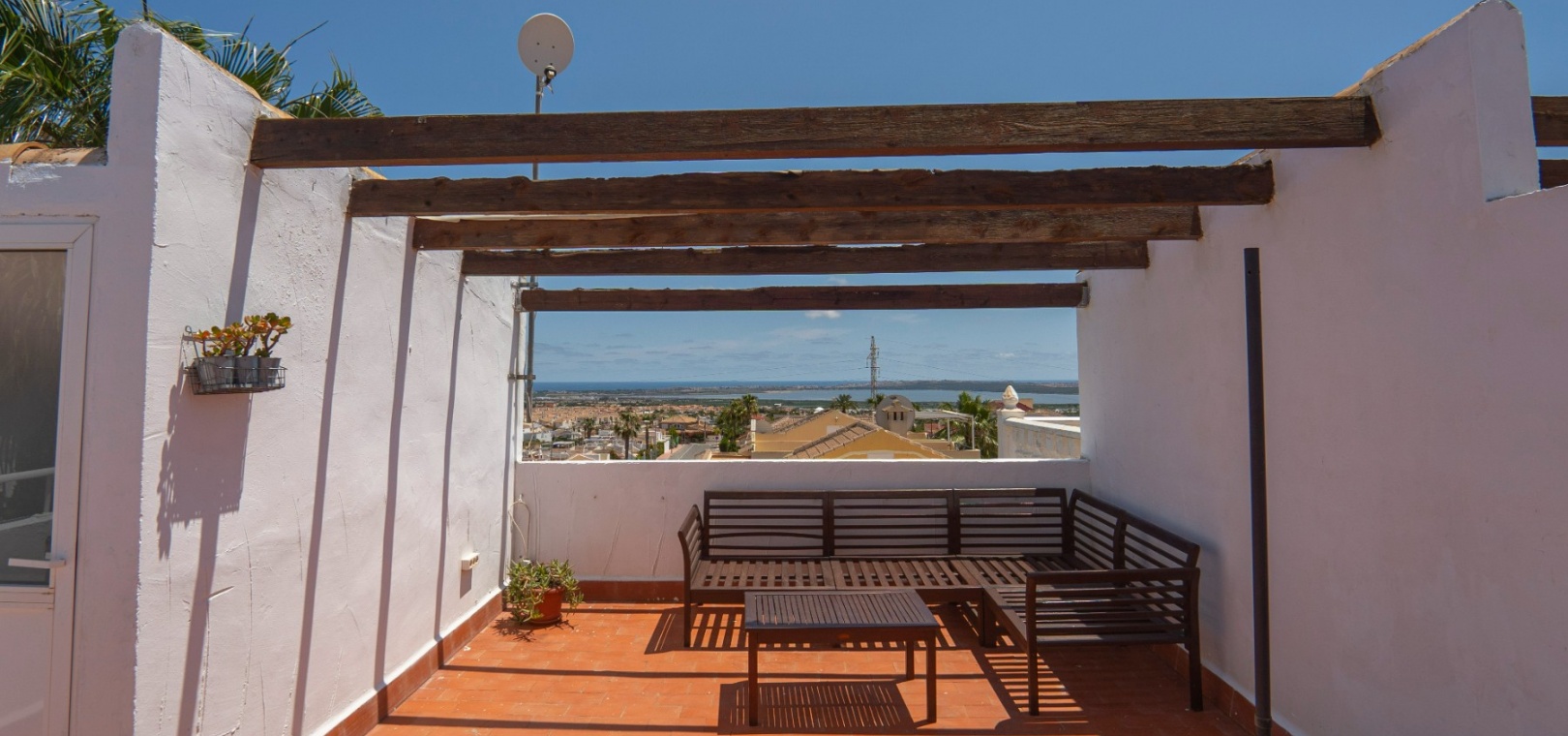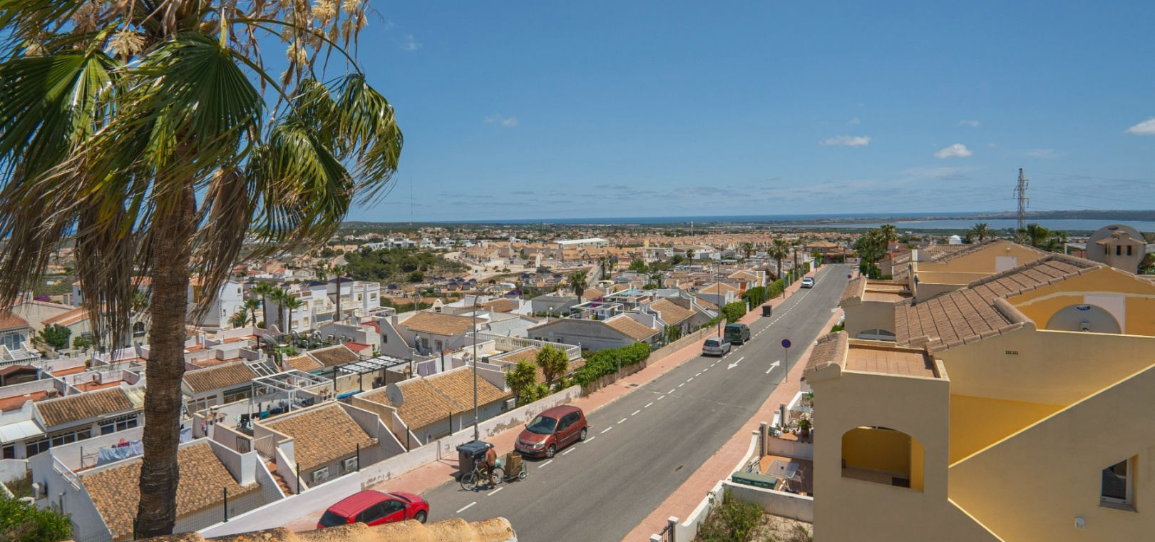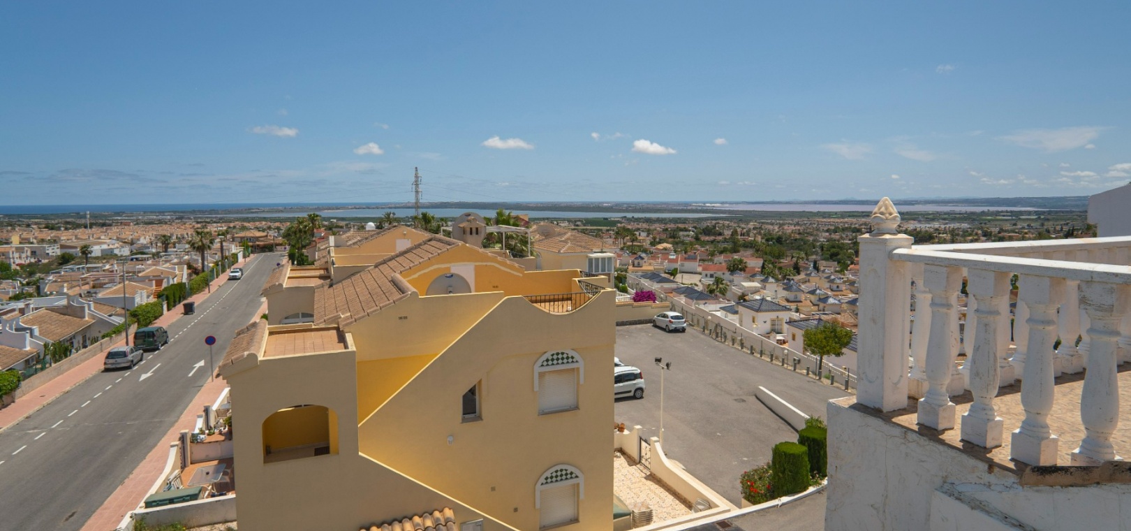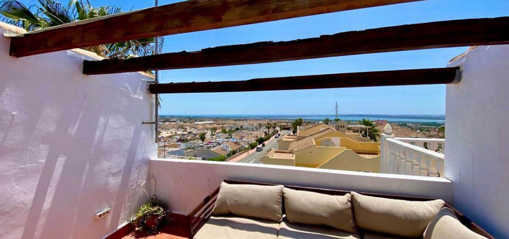 This fantastic townhouse has 2 bedrooms and 11/5- bathrooms. The whole townhouse is really nice and bright and has a majestic view that you see straight away when you walk in the front door. The living and kitchen room is nice and open. The bedrooms upstairs are bright and big with one of them leading out to a private terrace and up to the roof terrace.The kitchen is located downstairs – which leads out on to the private garden area of the property, where you will be able to enjoy the sunshine and views.At almost the highest point in Quesada, we find this townhouse with magnificent views. The urbanization has a beautiful pool area with three sections and a long narrow fountain in the middle of the area surrounded by beautiful plants, palm trees and more. Restaurants and other amenities are within walking distance. The Guardamar Beach is a 10-minute drive away.This fantastic south facing 2 bedroom 1 1/5-bathroom townhouse with lake and Mediterranean views located close to amenities in Ciudad Quesada.Ciudad Quesada.Ciudad Quesada is located near the wonderful cities such as Alicante, Murcia, Cartagena and more. It is only 30 minutes to Alicante (ALC) and Murcia (RMU) airports which have several direct routes.There is a highway just outside the city that makes it easy to get around and explore Spain. Torrevieja is just a 10-minute drive to restaurants, nightlife, bars and Habaneras and a large shopping mall with several trendy shops. You have several shops around in the area, for example, La Zenia Boulevard has an even greater choice of shops just 20 minutes from Quesada.In Quesada, you also have restaurants, shops, hiking areas, parks, waterpark, golf course, mini-golf, bowling, Norwegian school and much more. You don't have to go far to experience all this wonderful city has to offer.There is several international schools in the area. Like Norwegian, English, Scandinavian and Spanish.Golf courses in Quesada are called La Marquesa Golf. This is a fantastic golf course for beginners and experts.There are training courses if you want to learn. Around golf courses, there are several restaurants and bars where you can enjoy the surroundings.Ciudad Quesada is a quiet and pleasant area of the Costa Blanca with lots to discover. It is only 7-10 minutes drive to some of the best beaches in Europe. They have been awarded a blue flag which means that it is some of the cleanest, safe, quality beaches in Spain. Guardamar del Segura is one of the most popular beaches in the area and is 9 kilometers long. There is also a bike path down to the beach.There are several markets in the area as it is 5 minutes by car. Here you can buy fresh groceries, souvenirs and much more. There is a marked for every day of the week less than 15 minutes from Quesada.This is the perfect place whether you are looking for a permanent home, or just a vacation home for you and you're loved once.There are over 300 sunny days a year, and the average temperature is 20 degrees. The two big salt lakes give a cleansing effect on the air. In 2019, Spain was named the world's healthiest country to live in, this is noticed when you come down. The climate has a positive effect on the body and mind!Welcome home.