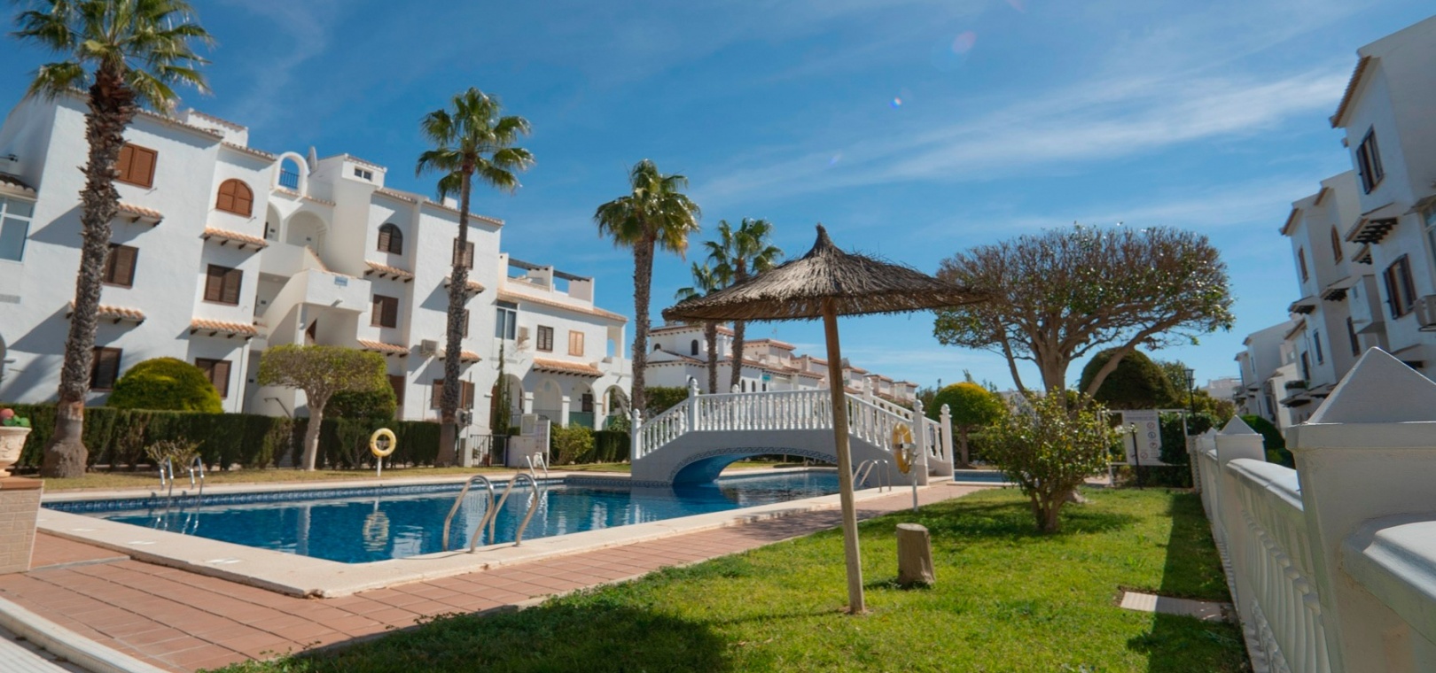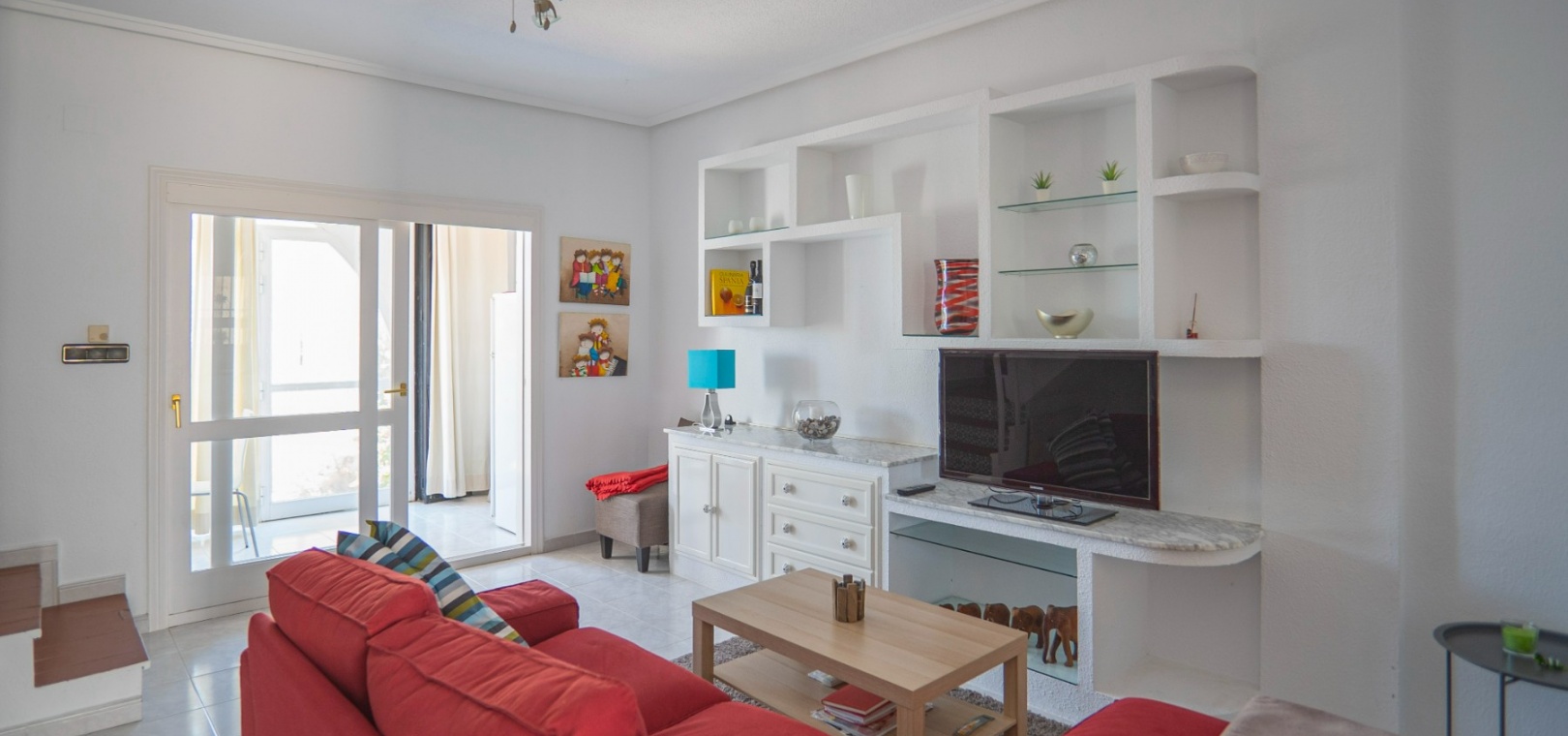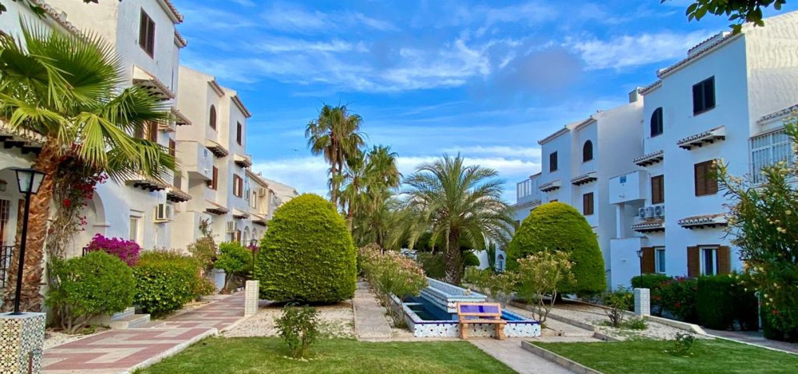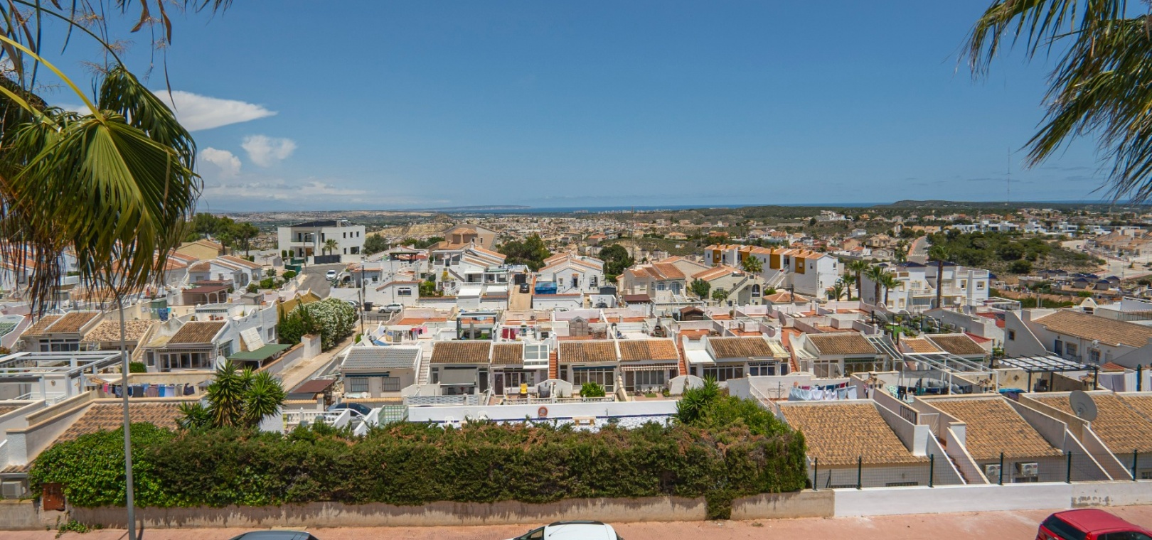 This fantastic townhouse has 2 bedrooms and 11/5- bathrooms. The whole townhouse is really nice and bright and has a majestic view that you see straight away when you walk in the front door. The living and kitchen room is nice and open. The bedrooms upstairs are bright and big with one of them leading out to a private terrace and up to the roof terrace.The kitchen is located downstairs – which leads out on to the private garden area of the property, where you will be able to enjoy the sunshine and views.At almost the highest point in Quesada, we find this townhouse with magnificent views. The urbanization has a beautiful pool area with three sections and a long narrow fountain in the middle of the area surrounded by beautiful plants, palm trees and more. Restaurants and other amenities are within walking distance. The Guardamar Beach is a 10-minute drive away.This fantastic south facing 2 bedroom 1 1/5-bathroom townhouse with lake and Mediterranean views located close to amenities in Ciudad Quesada.Ciudad Quesada.Ciudad Quesada is located near the wonderful cities such as Alicante, Murcia, Cartagena and more. It is only 30 minutes to Alicante (ALC) and Murcia (RMU) airports which have several direct routes.There is a highway just outside the city that makes it easy to get around and explore Spain. Torrevieja is just a 10-minute drive to restaurants, nightlife, bars and Habaneras and a large shopping mall with several trendy shops. You have several shops around in the area, for example, La Zenia Boulevard has an even greater choice of shops just 20 minutes from Quesada.In Quesada, you also have restaurants, shops, hiking areas, parks, waterpark, golf course, mini-golf, bowling, Norwegian school and much more. You don't have to go far to experience all this wonderful city has to offer.There is several international schools in the area. Like Norwegian, English, Scandinavian and Spanish.Golf courses in Quesada are called La Marquesa Golf. This is a fantastic golf course for beginners and experts.There are training courses if you want to learn. Around golf courses, there are several restaurants and bars where you can enjoy the surroundings.Ciudad Quesada is a quiet and pleasant area of the Costa Blanca with lots to discover. It is only 7-10 minutes drive to some of the best beaches in Europe. They have been awarded a blue flag which means that it is some of the cleanest, safe, quality beaches in Spain. Guardamar del Segura is one of the most popular beaches in the area and is 9 kilometers long. There is also a bike path down to the beach.There are several markets in the area as it is 5 minutes by car. Here you can buy fresh groceries, souvenirs and much more. There is a marked for every day of the week less than 15 minutes from Quesada.This is the perfect place whether you are looking for a permanent home, or just a vacation home for you and you're loved once.There are over 300 sunny days a year, and the average temperature is 20 degrees. The two big salt lakes give a cleansing effect on the air. In 2019, Spain was named the world's healthiest country to live in, this is noticed when you come down. The climate has a positive effect on the body and mind!Welcome home.